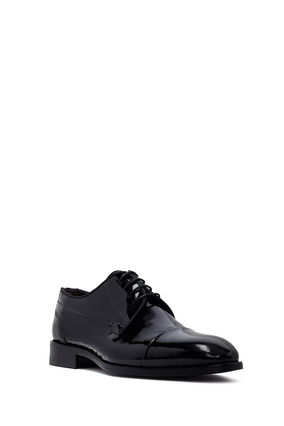 **Türkçe Açıklama:**Erkek Siyah Bağcıklı Rugan Deri Klasik Ayakkabı, modern erkek modasının vazgeçilmez parçalarından biridir. Rugan deri malzemesi ile üretilen ayakkabı, parlak ve şık görünümü sayesinde özel günlerde ve iş hayatında mükemmel bir tercih sunar. Bağcıklı tasarımı ile klasik erkek ayakkabısı estetiğini yansıtan model, 2,5 cm topuk yüksekliği ile günlük kullanımda rahatlık sağlar. Gerçek deri iç astarı sayesinde ayak sağlığını korurken, nefes alabilir yapısı ile uzun süreli kullanımda bile konfor sunar. Kış koleksiyonuna dahil olan ayakkabı, soğuk hava koşullarında da rahatlıkla tercih edilebilir. Rugan derinin parlak yüzeyi, ayakkabıya zarif ve prestijli bir görünüm kazandırırken, bakımının kolay olması da önemli bir avantaj sağlar. Klasik rugan kategorisindeki model, takım elbiselerin yanı sıra şık pantolon ve gömlek kombinleri ile de mükemmel uyum gösterir. İş toplantılarından özel davetlere, resmi etkinliklerden günlük şıklığa kadar geniş kullanım alanına sahip olan ayakkabı, her erkeğin gardırobunda bulunması gereken temel parçalardan biridir. Kaliteli işçiliği ve dayanıklı yapısı ile uzun yıllar kullanılabilecek olan model, zamansız tasarımı sayesinde moda trendlerinden bağımsız olarak her dönemde tercih edilebilir. Ürün kodu: 25WFD705216