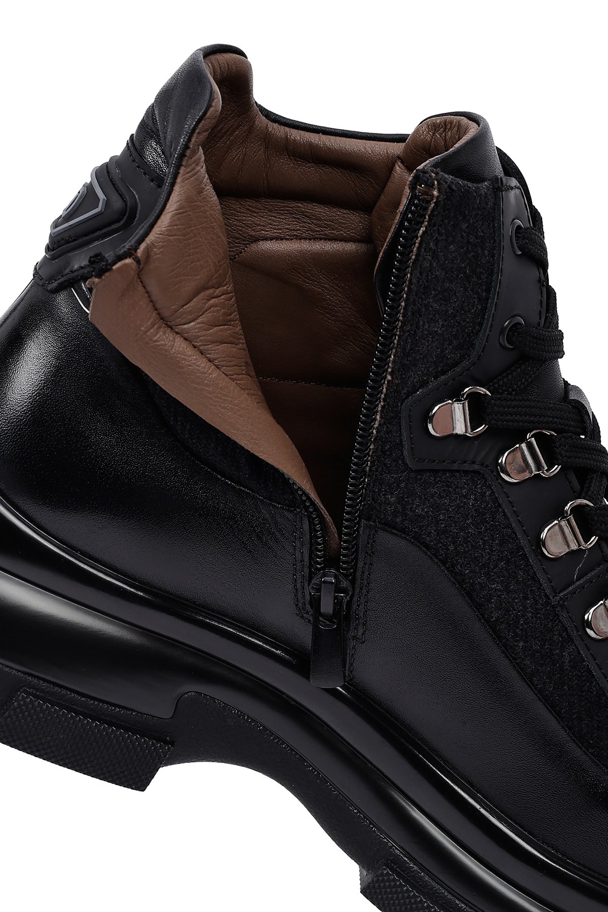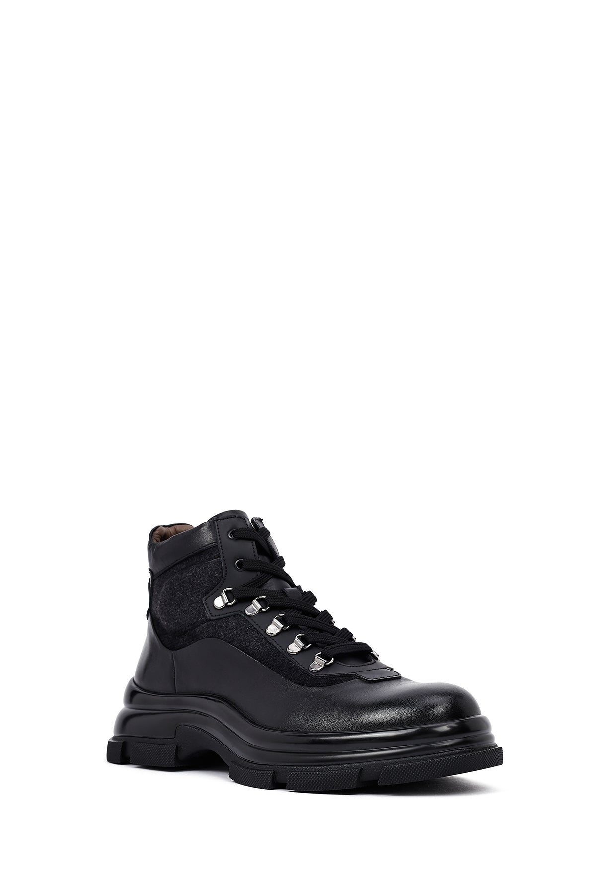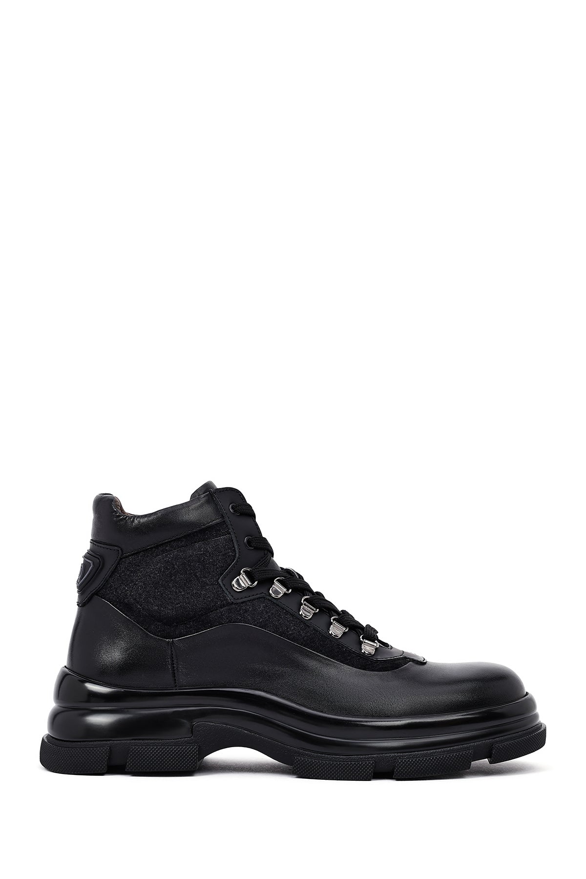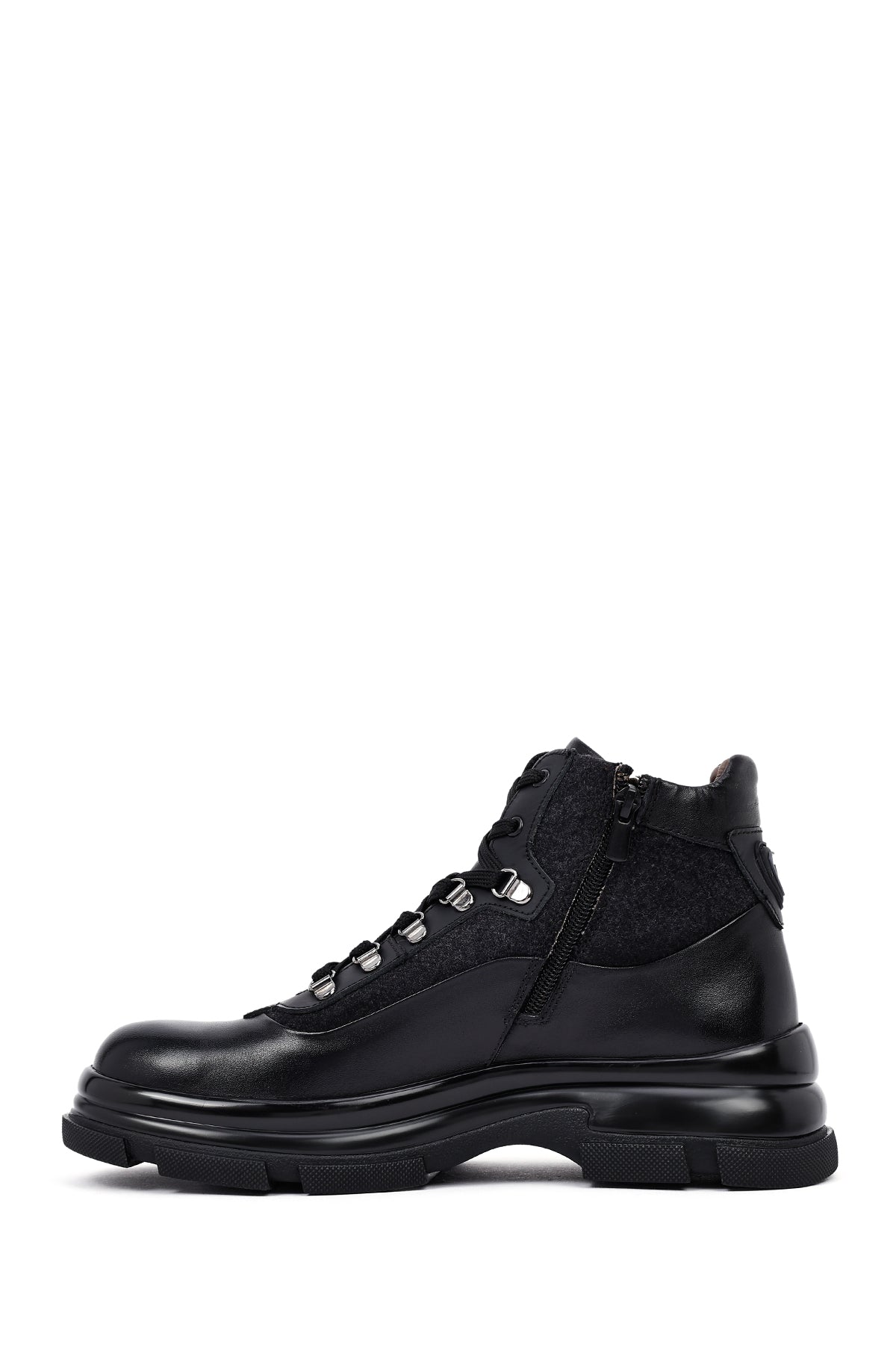 Klasik erkek ayakkabıcılığının çağdaş yorumunu sunan erkek siyah deri bot modeli, geleneksel bot estetiğini modern detaylarla harmanlıyor. Siyah deri malzemeden üretilen bot, karışık deri özelliği sayesinde farklı doku ve parlaklık tonlarında yüzey zenginliği sunuyor. Bilek yüksekliğinde tasarlanan modelin en dikkat çekici özelliği yan tarafında yer alan fermuar detayı olup, bu yapı hem estetik bir unsur hem de pratik giyim kolaylığı sağlıyor. Bağcıklı tasarımı sayesinde ayağı destekleyen yapı oluşturuluyor ve kişisel ayak yapısına uygun oturum imkanı sunuluyor. Metal gözlü bağcık sistemi dayanıklılık katarken görsel olarak da ürüne karakter kazandırıyor. 1,5 cm topuk yüksekliği günlük kullanımda dengeli duruş sağlarken, deri iç astar nefes alan yapısı ile ayak sağlığını destekliyor. Kalın taban profili zemin tutuşunu artırırken, oluklu taban deseni farklı yüzeylerde güvenli yürüyüş imkanı veriyor. Siyah renk tonunun zamansız estetiği, farklı giyim tarzlarıyla uyum sağlayabilen çok yönlü bir yapı ortaya koyuyor. Deri malzemenin doğal dokusu ve mat yüzey görünümü, botun genel karakterini güçlendiren unsurlar arasında yer alıyor. Erkek bot kategorisinde öne çıkan model, ofis kullanımından günlük aktivitelere kadar geniş bir yelpazede tercih edilebiliyor. Ürün kodu: 25WFD605214
