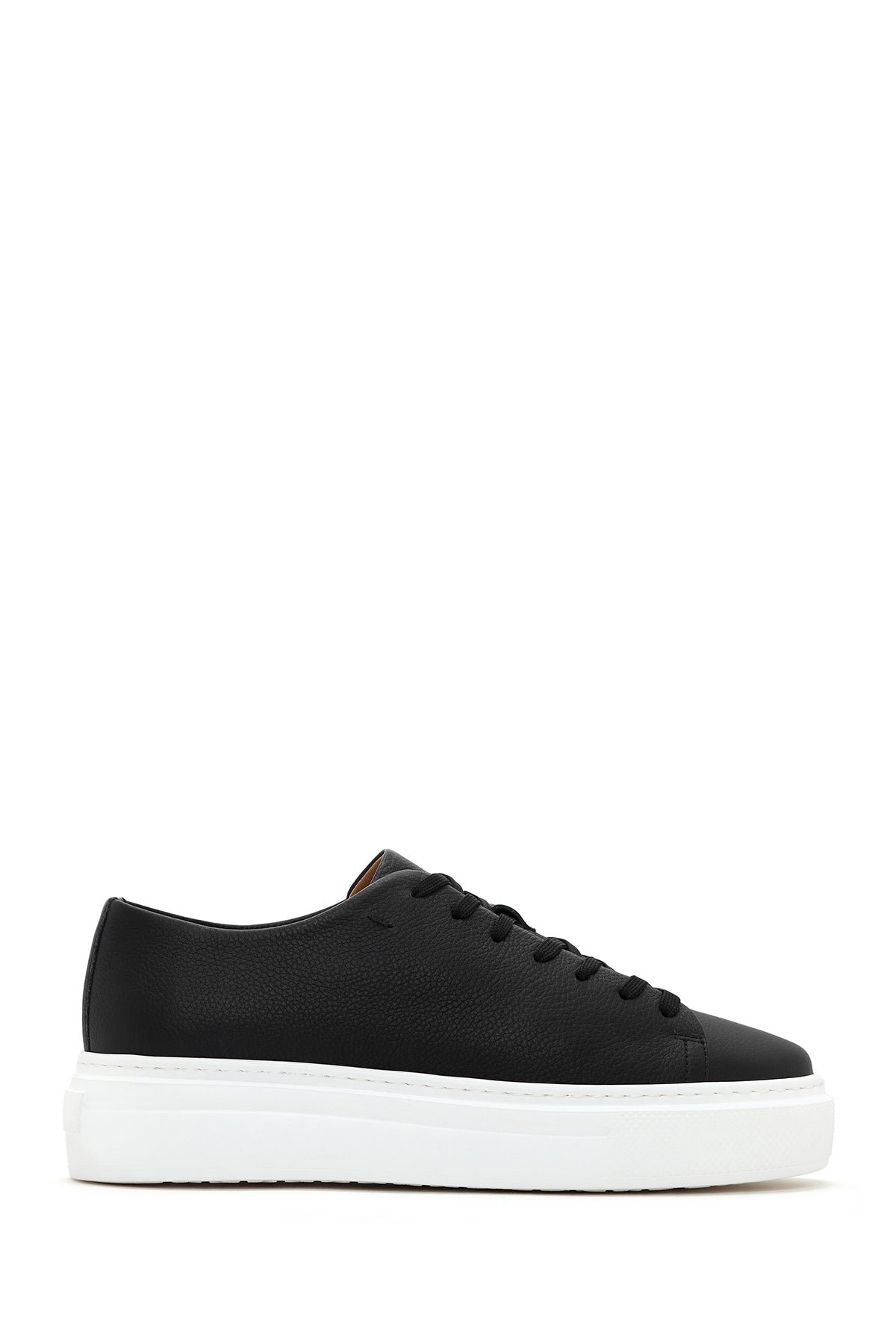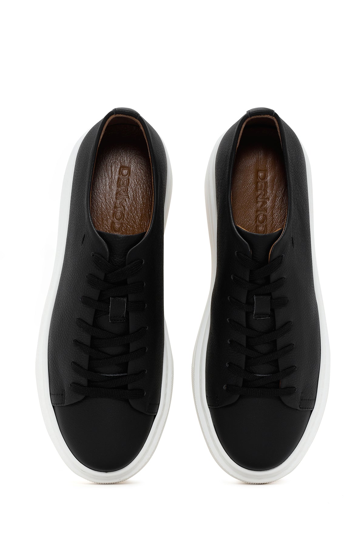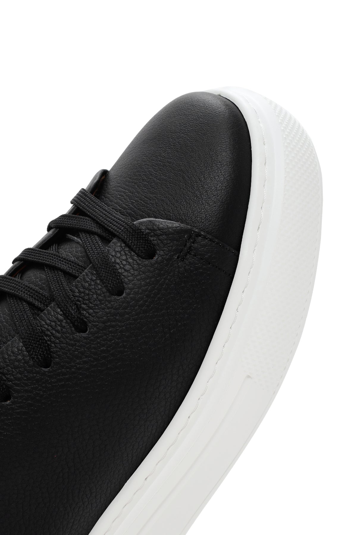 Erkek Siyah Kalın Tabanlı Bağcıklı Deri Sneaker