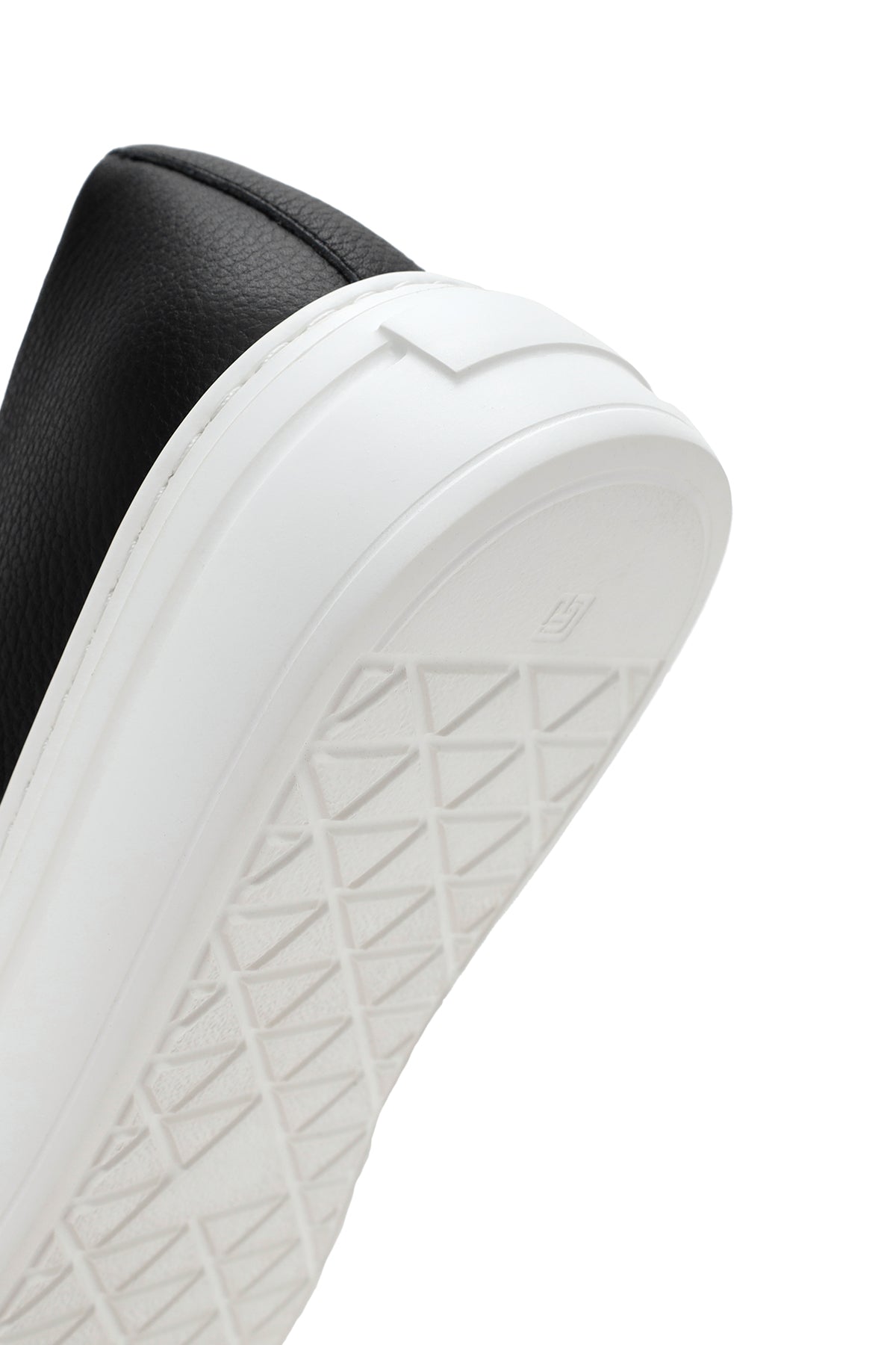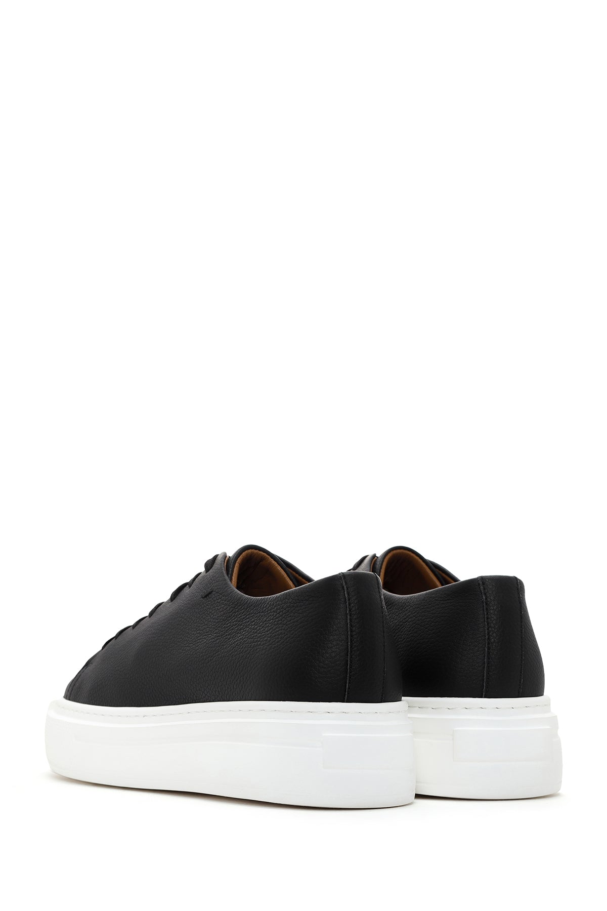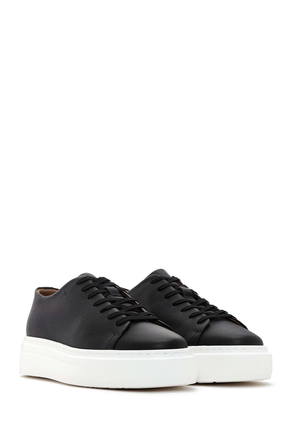 Erkek Siyah Kalın Tabanlı Bağcıklı Deri Sneaker