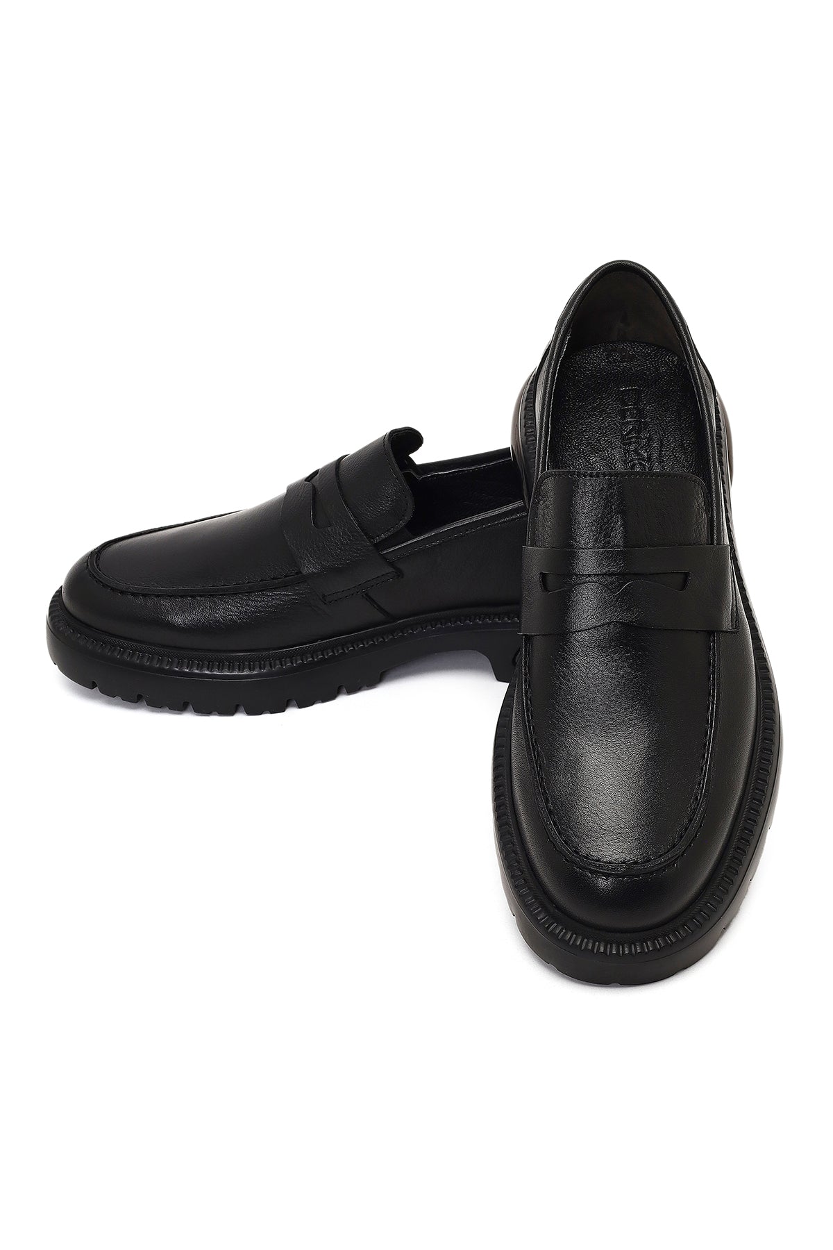Derimod'un erkek ayakkabı koleksiyonunun öne çıkan parçalarından olan bu siyah deri loafer, modern erkek stilinin vazgeçilmez unsurlarından biridir. Kalın tabanlı tasarımıyla günümüz moda trendlerini yakalayan model, premium Vidala deri malzemesiyle üretilmiş olup üstün kalite ve dayanıklılık sunar. Slip-on tarzındaki bu loafer, ayağa kolay giyim imkanı sağlarken, metal toka detayıyla klasik loafer estetiğini modern bir yorumla harmanlıyor. Deri iç astar sayesinde nefes alabilirlik özelliği gösteren ayakkabı, uzun süreli kullanımda bile ayak sağlığını korur. 2 cm topuk yüksekliği ile doğal duruş sağlayan model, kalın tabanı sayesinde yürüyüş konforunu artırır. Siyah rengi her türlü kıyafet kombinasyonuyla uyum gösterirken, Casual Loafer kategorisindeki konumu sayesinde hem günlük hem de iş hayatında tercih edilebilir. Mevsim geçişlerinde rahatlıkla kullanılabilen yapısı, gardırobun çok amaçlı parçası olmasını sağlar. Ofis ortamından sosyal buluşmalara, günlük aktivitelerden akşam etkinliklerine kadar geniş kullanım yelpazesi sunan bu loafer, şehir hayatının dinamik temposuna uygun tasarlanmıştır. Vidala deri işçiliği ve özenli üretim detayları, yıllarca sürecek dayanıklılık garantisi verirken, zamansız tasarımı sayesinde moda akımlarından etkilenmeden kullanılabilir. Ürün kodu: 25WFD675618