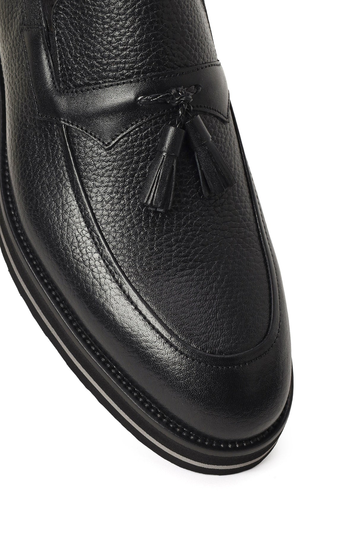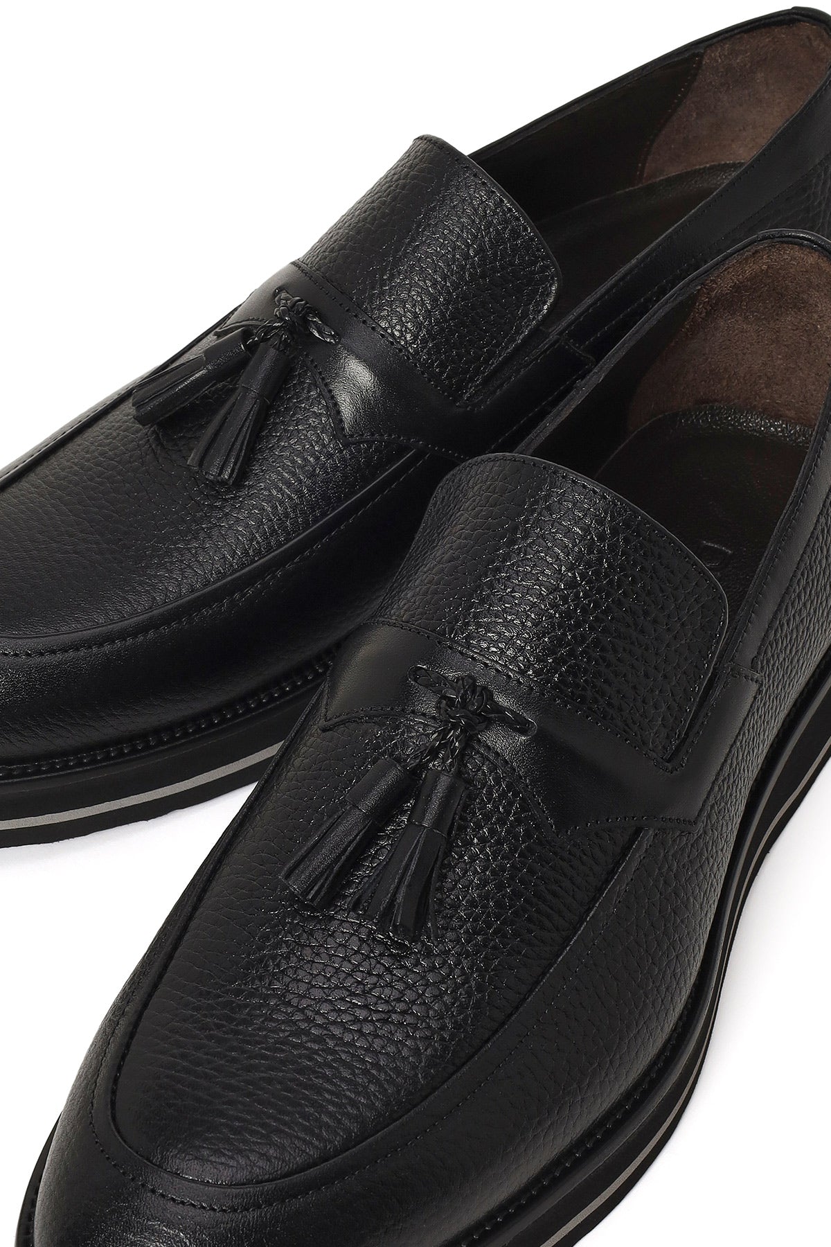 Derimod’un Zarif ve Şıklığı bir arada sunan Erkek Siyah Kalın Tabanlı Püsküllü Deri Loafer ile tarzınızı konuşturun. Ürünün kodu: 26SFD7043FT 11