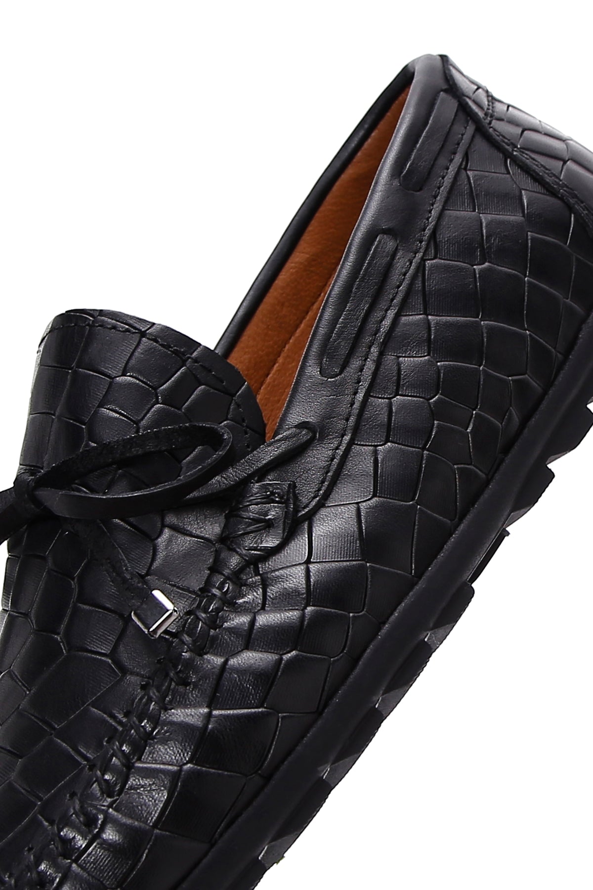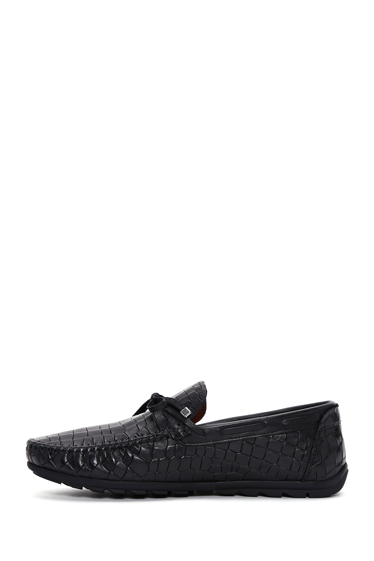 Erkek Siyah Kroko Desenli Deri Casual Loafer