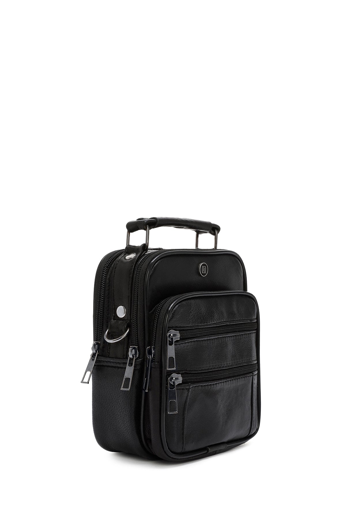 Erkek Siyah Uzun Askılı Deri El Çantası