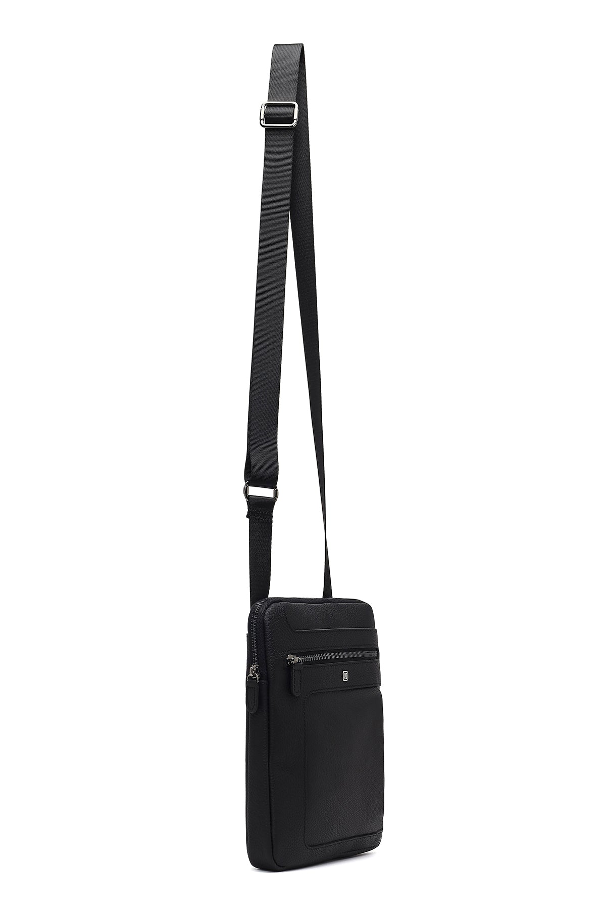 Erkek Siyah Uzun Askılı Deri Omuz Çantası