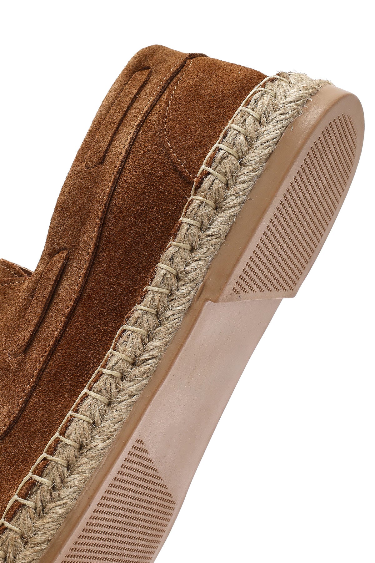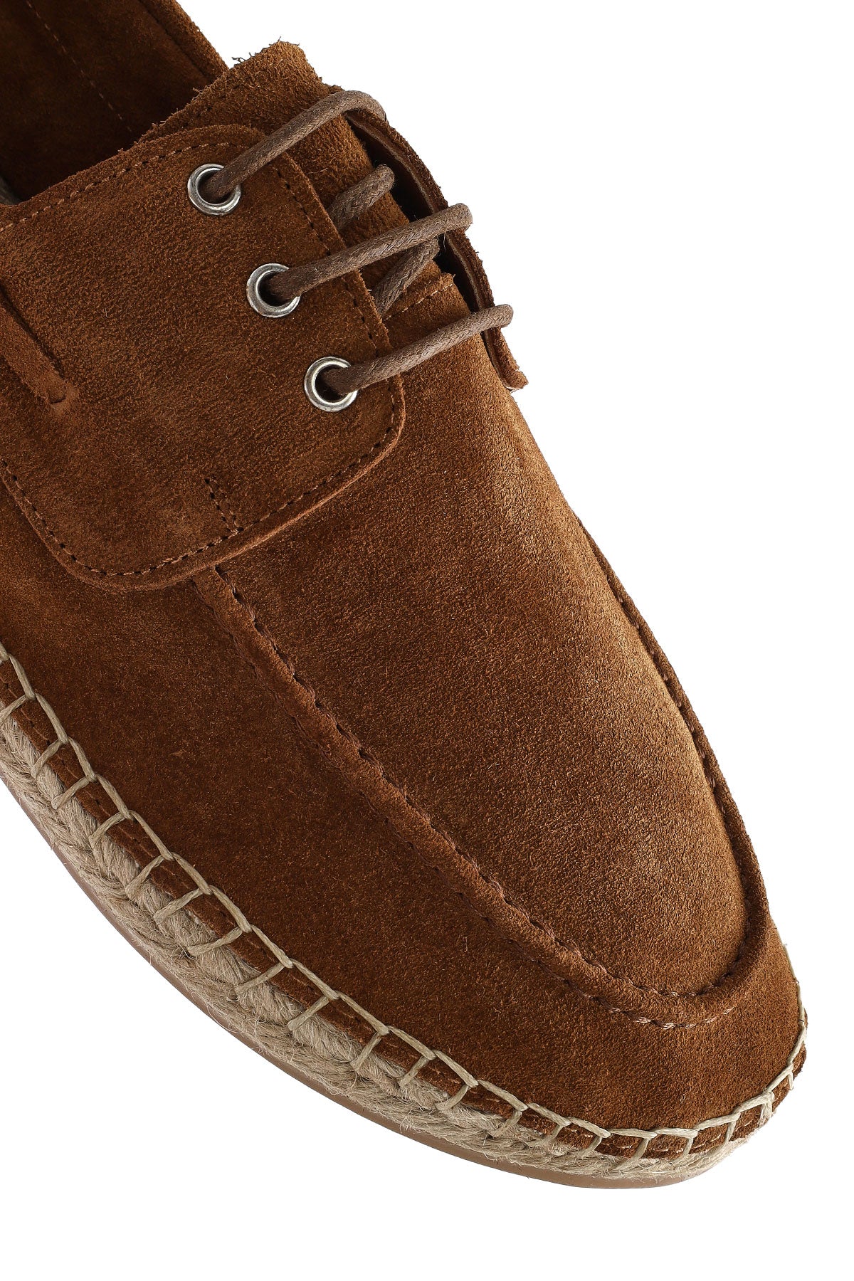 Derimod'un erkek espadril koleksiyonundan öne çıkan bu taba rengi süet deri model, yaz aylarının vazgeçilmez parçalarından biridir. Geleneksel espadril tarzını modern bir yaklaşımla harmanlayan ayakkabı, üst kısmında kullanılan kaliteli süet deri malzemesi ile hem şıklık hem de nefes alabilirlik sunar. Bağcıklı tasarımı sayesinde ayağa mükemmel uyum sağlarken, karakteristik hasır taban detayı ile klasik espadril estetiğini yansıtır. 1,5 cm topuk yüksekliği günlük kullanımda ideal denge yaratır ve uzun süreli yürüyüşlerde yorgunluk hissetmez. Deri iç astar sayesinde ayak sağlığını korurken, terlemeyi önleyici özelliği ile yaz sıcaklarında bile ferahlık hissi verir. Taba rengi neredeyse her kıyafet kombinasyonu ile uyumlu olup, casual pantolonlardan şortlara, polo tişörtlerden keten gömleklere kadar geniş bir yelpazede kullanılabilir. Sahil tatillerinde, şehir gezilerinde, arkadaş buluşmalarında ve günlük aktivitelerde tercih edilebilecek bu espadril, rahat yapısı ile aktif yaşam tarzına sahip erkeklerin gardırobunda mutlaka bulunması gereken bir modeldir. Ürün kodu: 25SFD616210