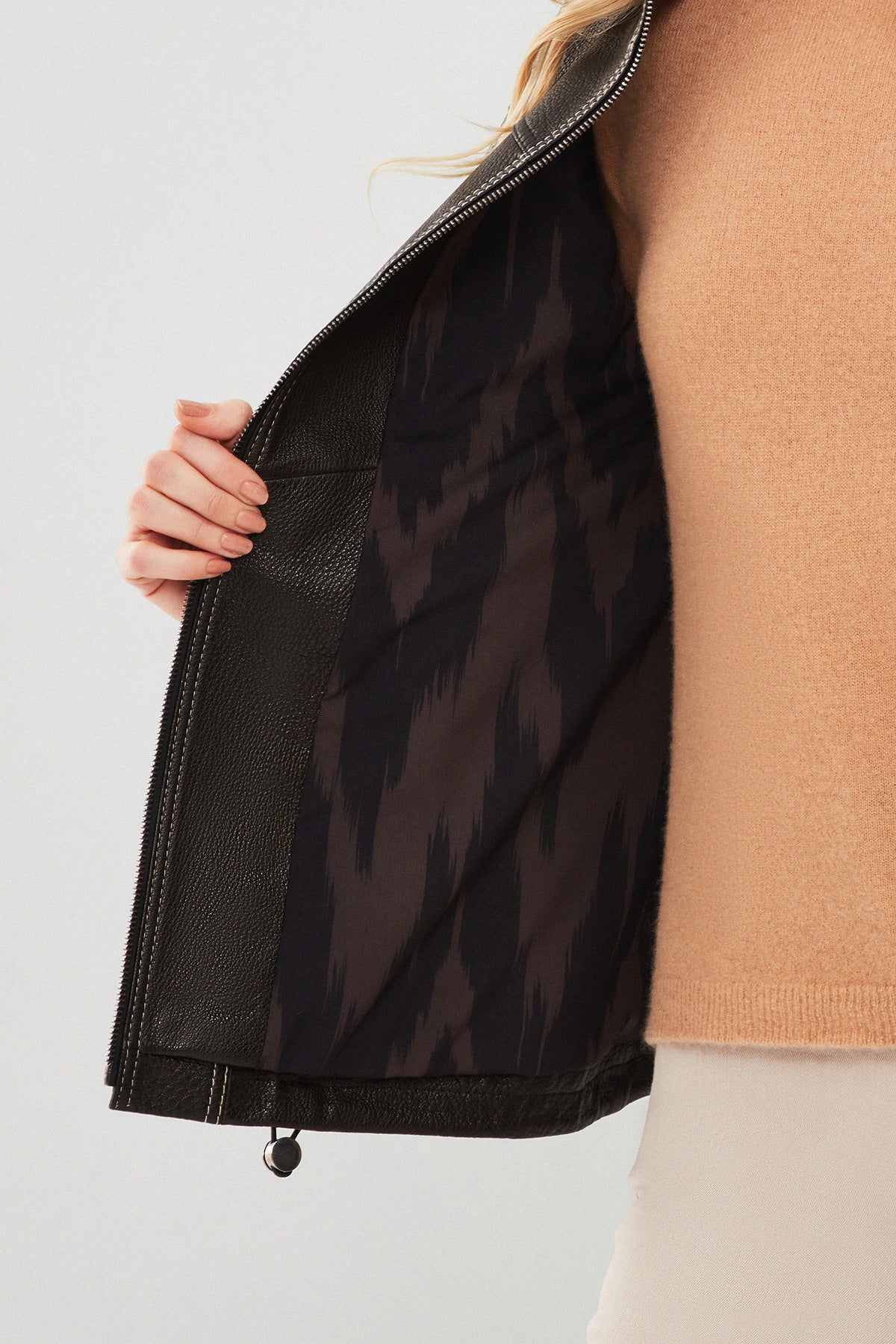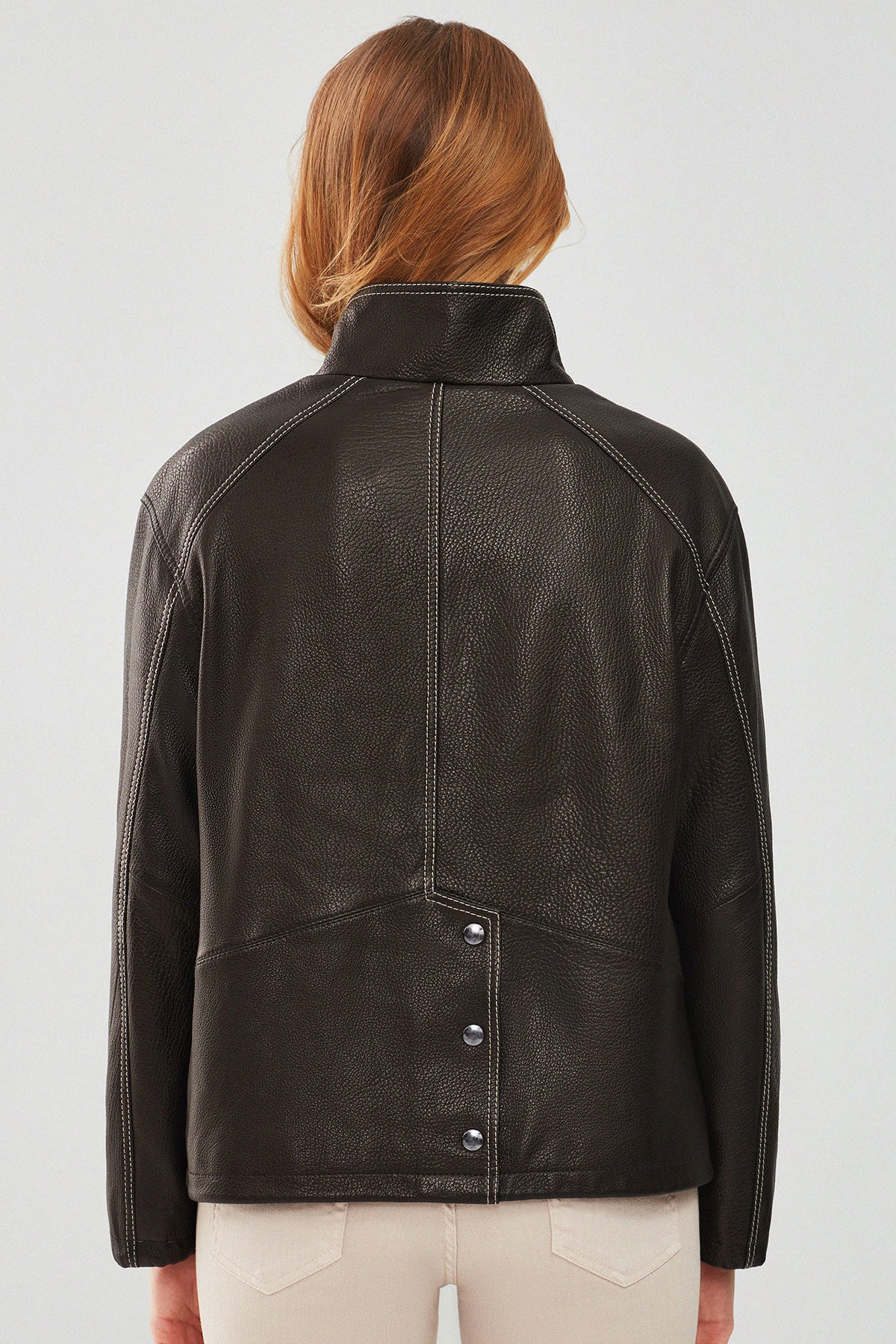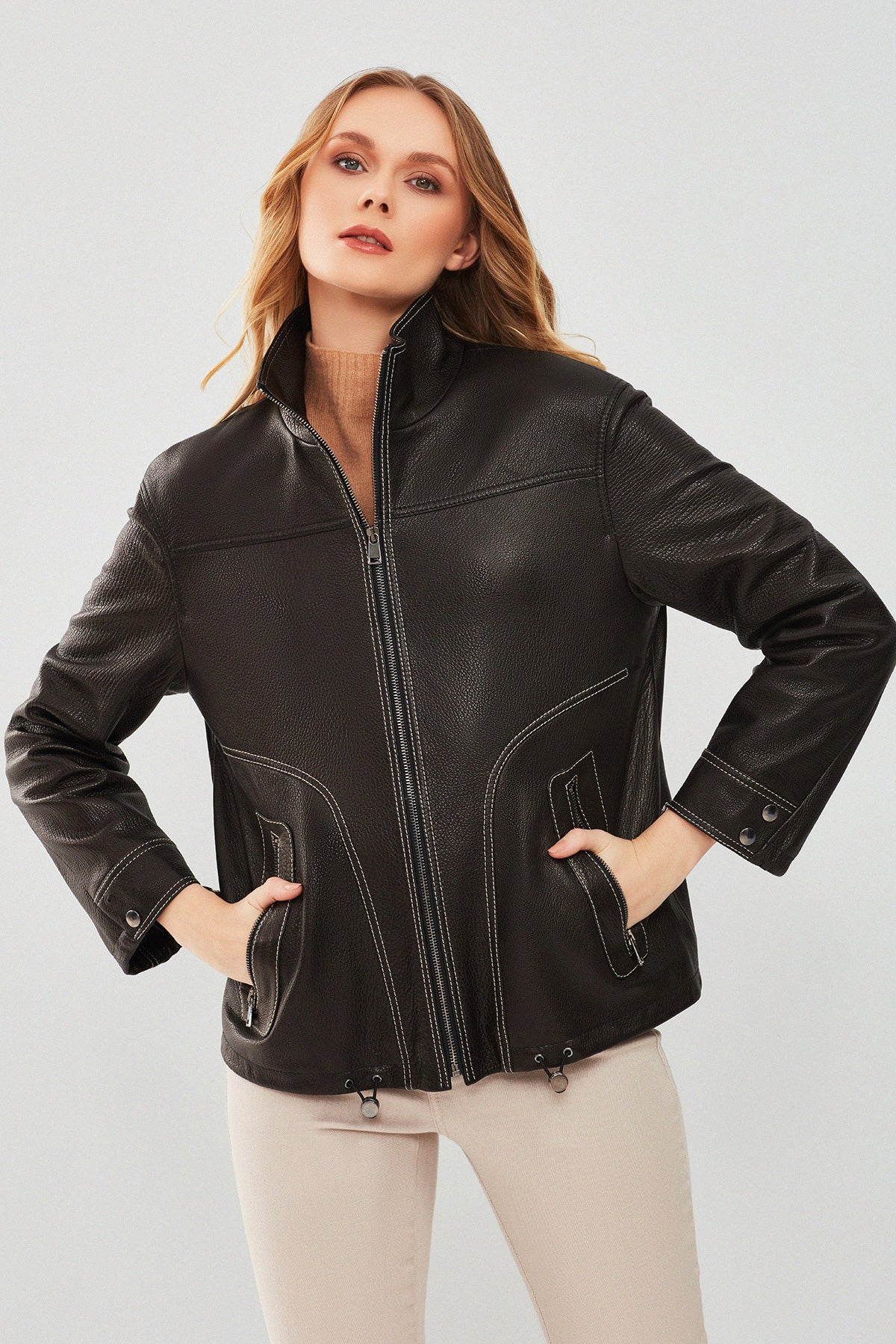 Evita Kadın Siyah Oversize Deri Ceket, geniş ve rahat kalıbı ile dikkat çekerken şıklığı da elden bırakmıyor. Kaliteli deri materyalden üretilmiş bu ceket, uzun ömürlü kullanım sunar. Fermuarlı kapama sistemi, kolay ve hızlı giyip çıkarma imkanı sağlar. Hakim yaka detayı, cekete modern bir dokunuş katarken A-form kalıbı rahat bir giyim deneyimi sunar. Geniş kesimi sayesinde her bedene uyum sağlayan Evita Kadın Siyah Oversize Deri Ceket, günlük kombinlerinizin vazgeçilmez bir parçası olacak. Hem rahat hem de şık görünmek isteyenler için ideal bir seçim. Ürünün kodu: 23WGD5152JB 11