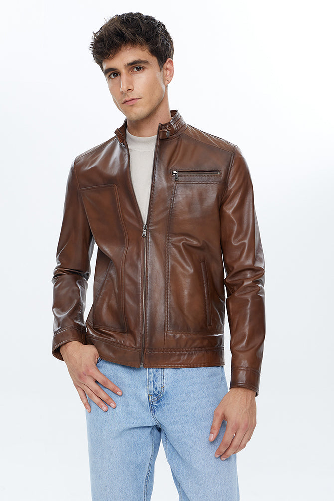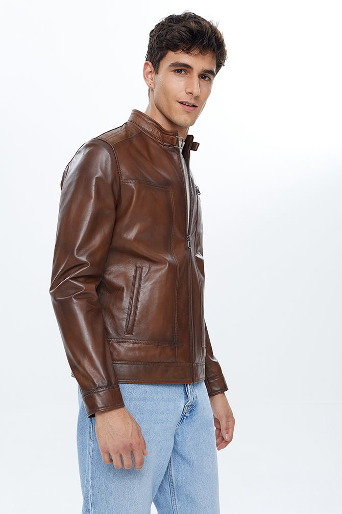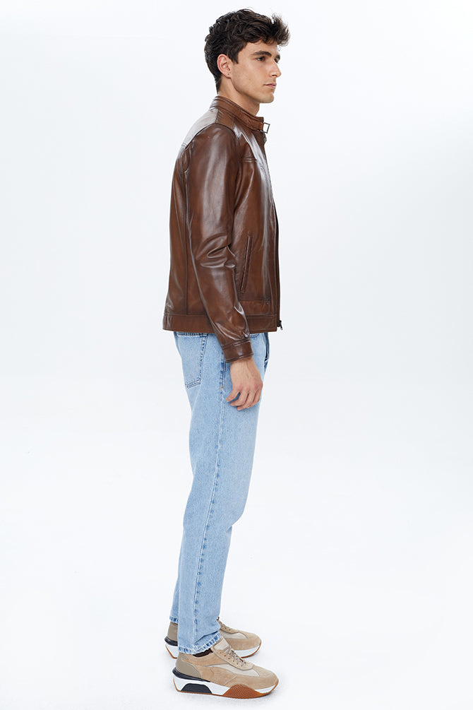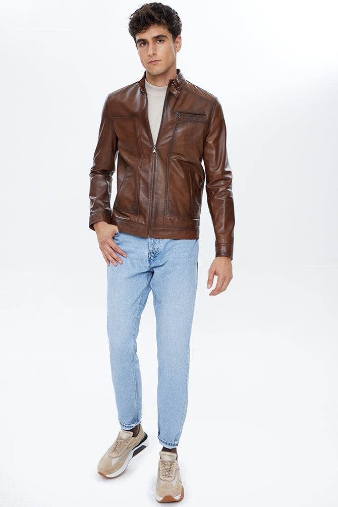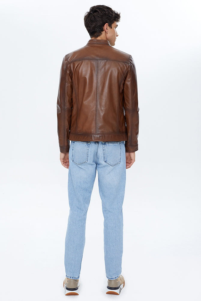 Felibe Erkek Konyak Deri Ceket