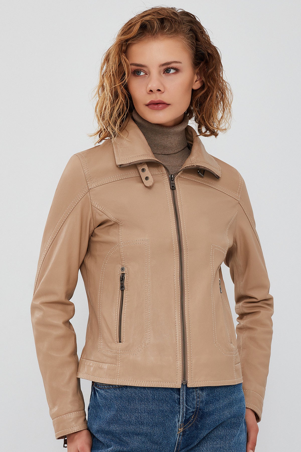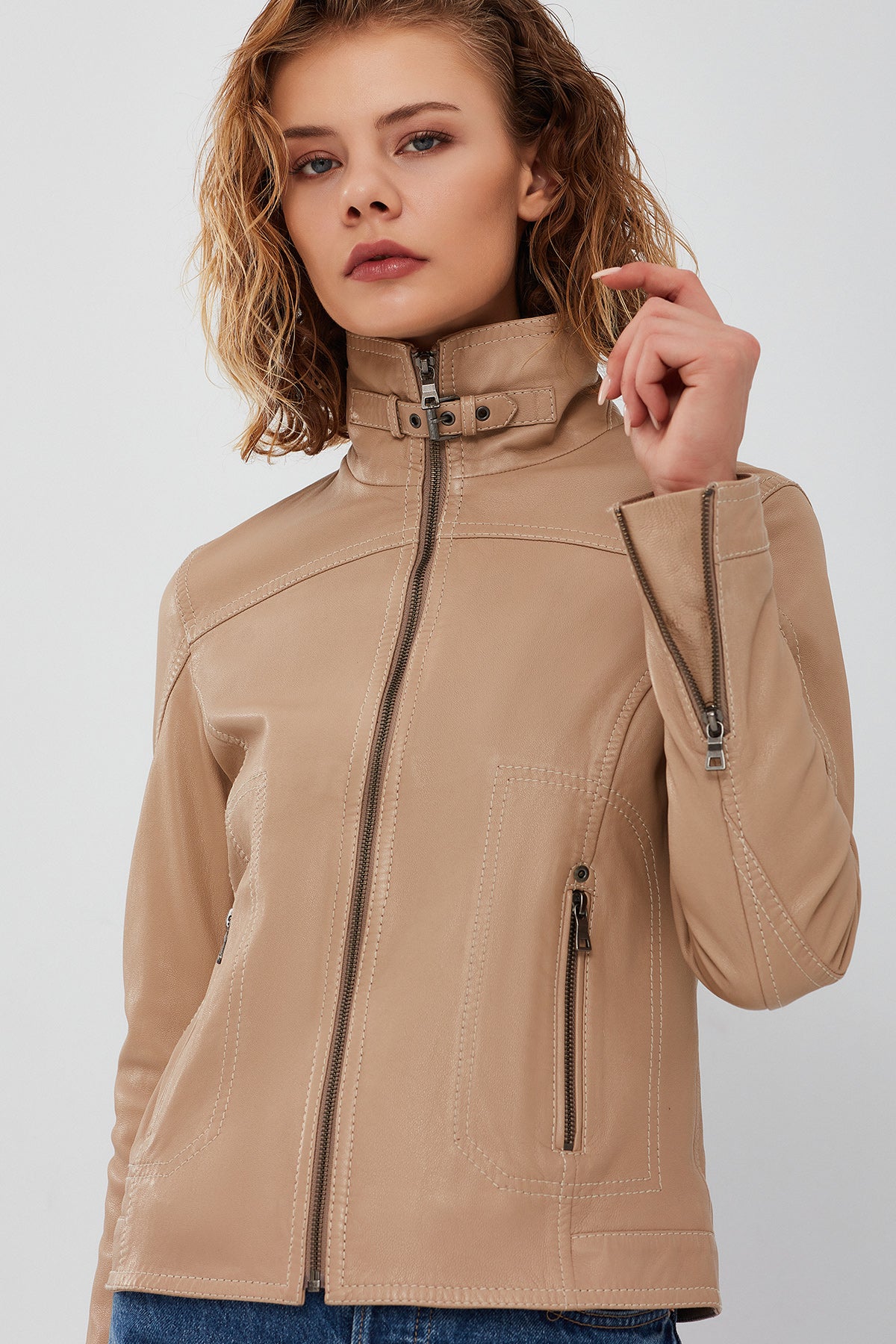 Derimod’un Zarif ve Şıklığı bir arada sunan Fiesta Kadın Bej Deri Ceket ile tarzınızı konuşturun. Ürünün kodu: 23WGM514151 04