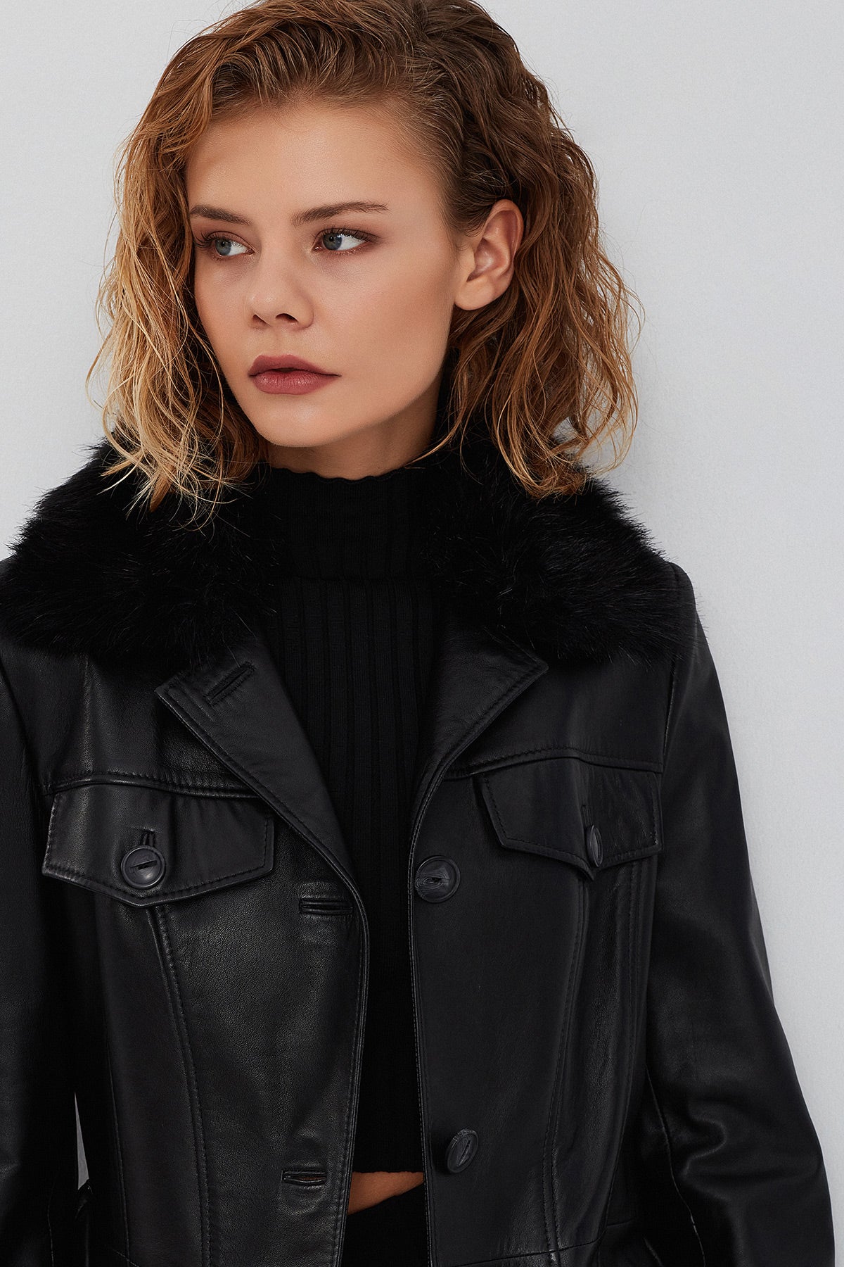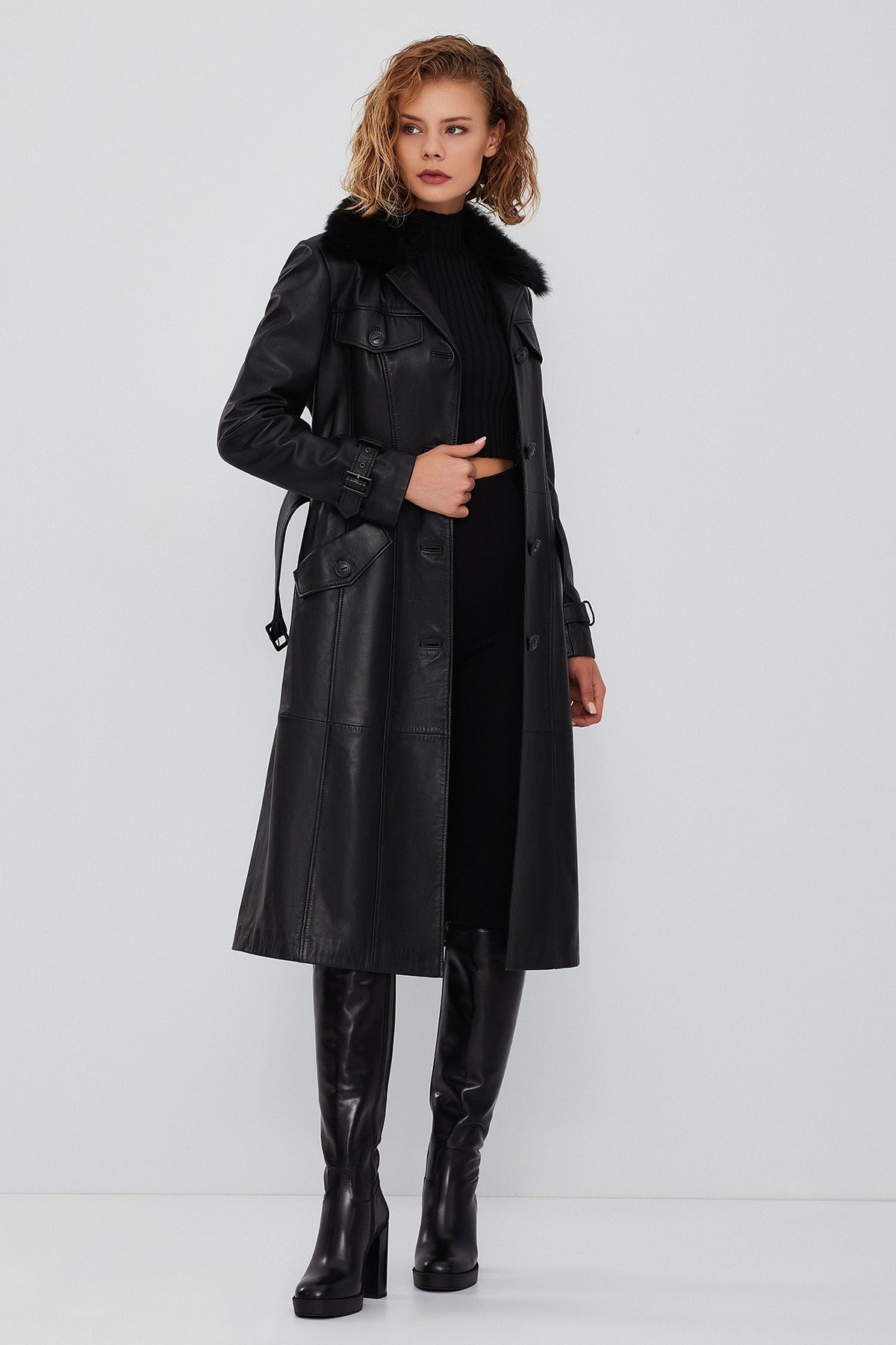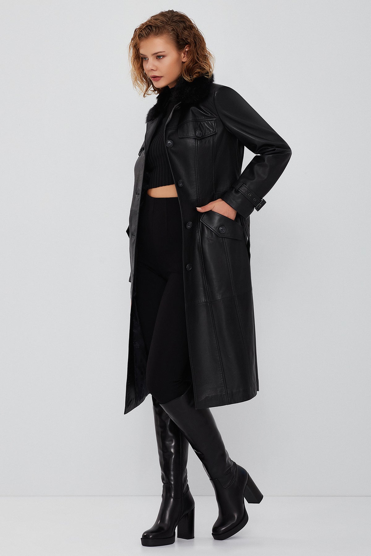 Fonda Kadın Siyah Kürklü Deri Pardesü, zarif ve şık tasarımı ile öne çıkıyor. Kaliteli deri materyalden üretilen bu pardesü, uzun boyu ve yumuşak kürk detayları ile soğuk havalarda şıklığı ve sıcaklığı bir arada sunar. Düğmeli kapama sistemi, klasik bir görünüm sağlarken, ceket yaka detayı pardesünün elegan tarzını tamamlar. Dört dış cebi ile işlevselliği artıran bu pardesü, regular kalıbı sayesinde her bedene uygun ve rahat bir giyim deneyimi sunar. Bel kemeri, vücut hatlarını belirginleştirirken ekstra stil kazandırır. Fonda Kadın Siyah Kürklü Deri Pardesü, günlük kullanımda ve özel etkinliklerde tarzınızı yansıtacak ideal bir seçenektir. Bu şık pardesü ile her zaman zarif ve dikkat çekici görüneceksiniz. Ürünün kodu: 23WGE51121M 11