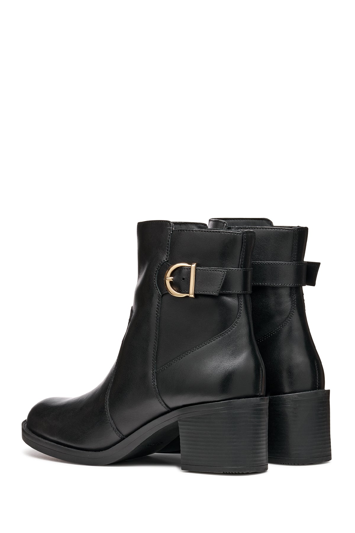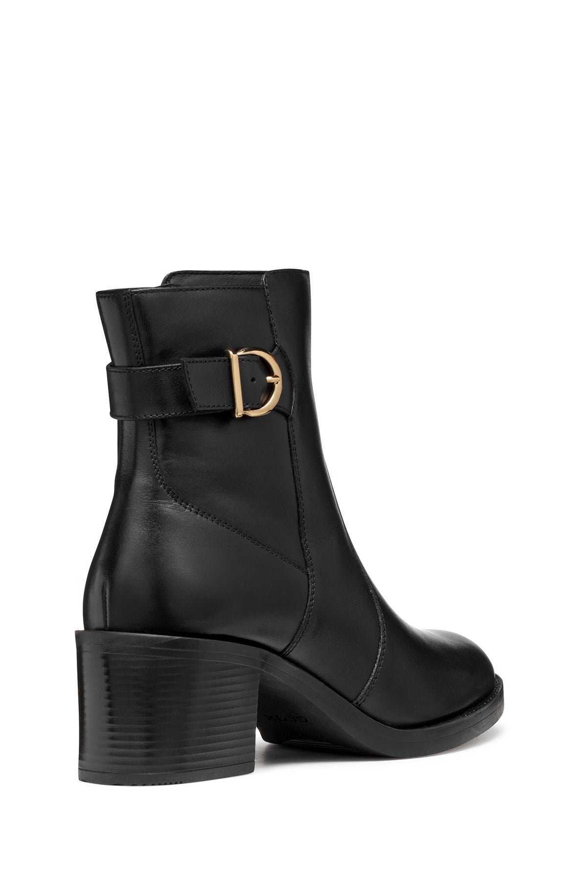 Geox Kadın Siyah D Serılda 60 A - Smo.Lea Tokalı Fermuarlı Topuklu Deri Bot