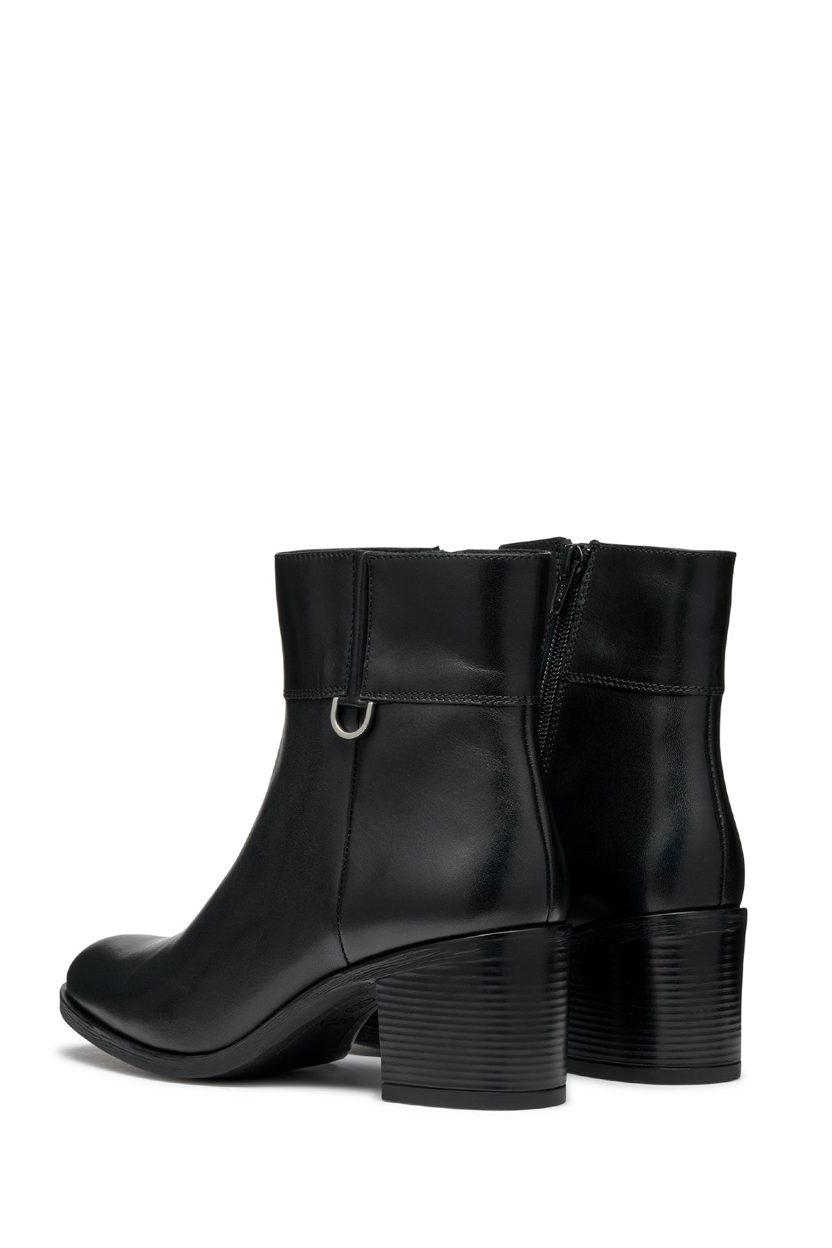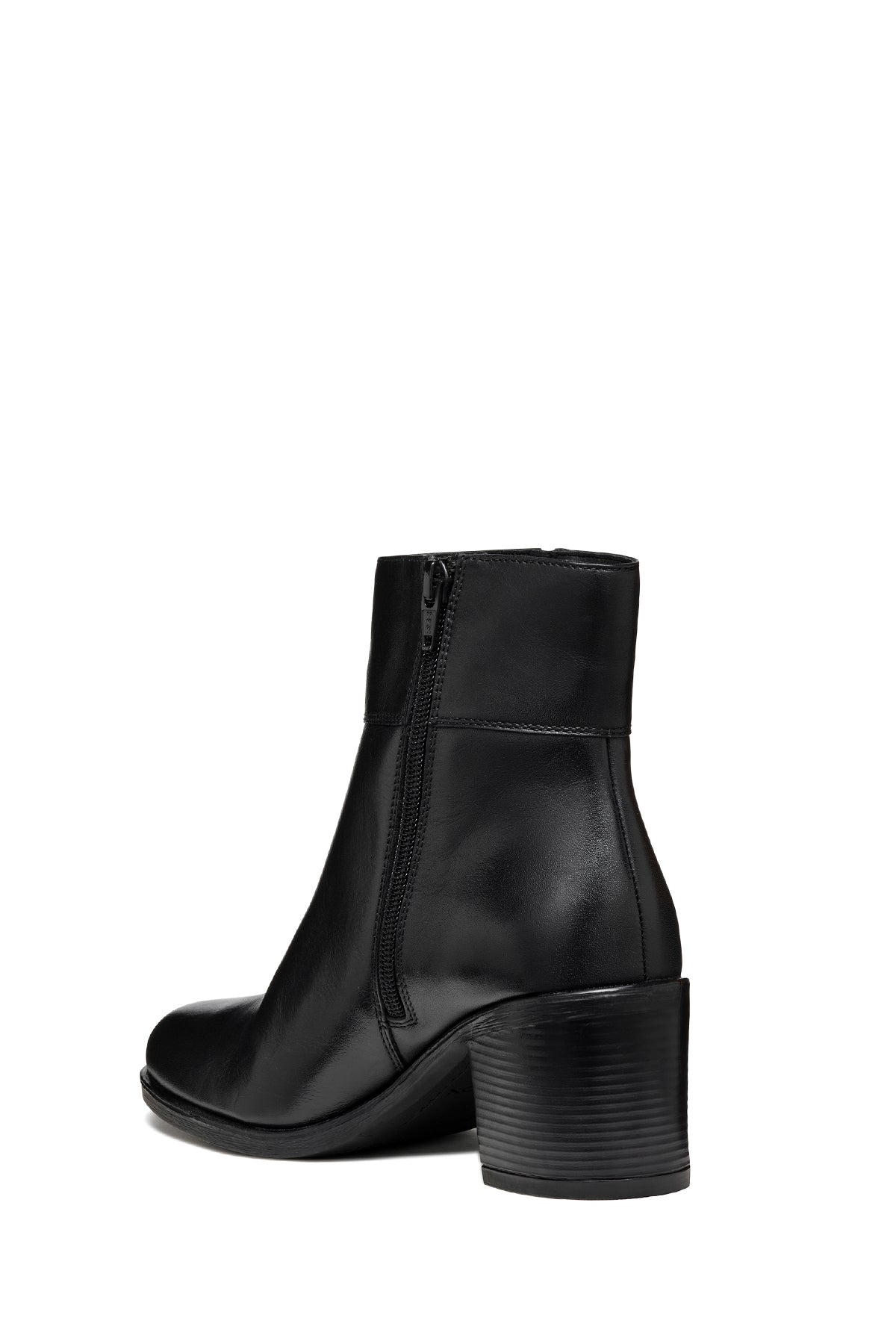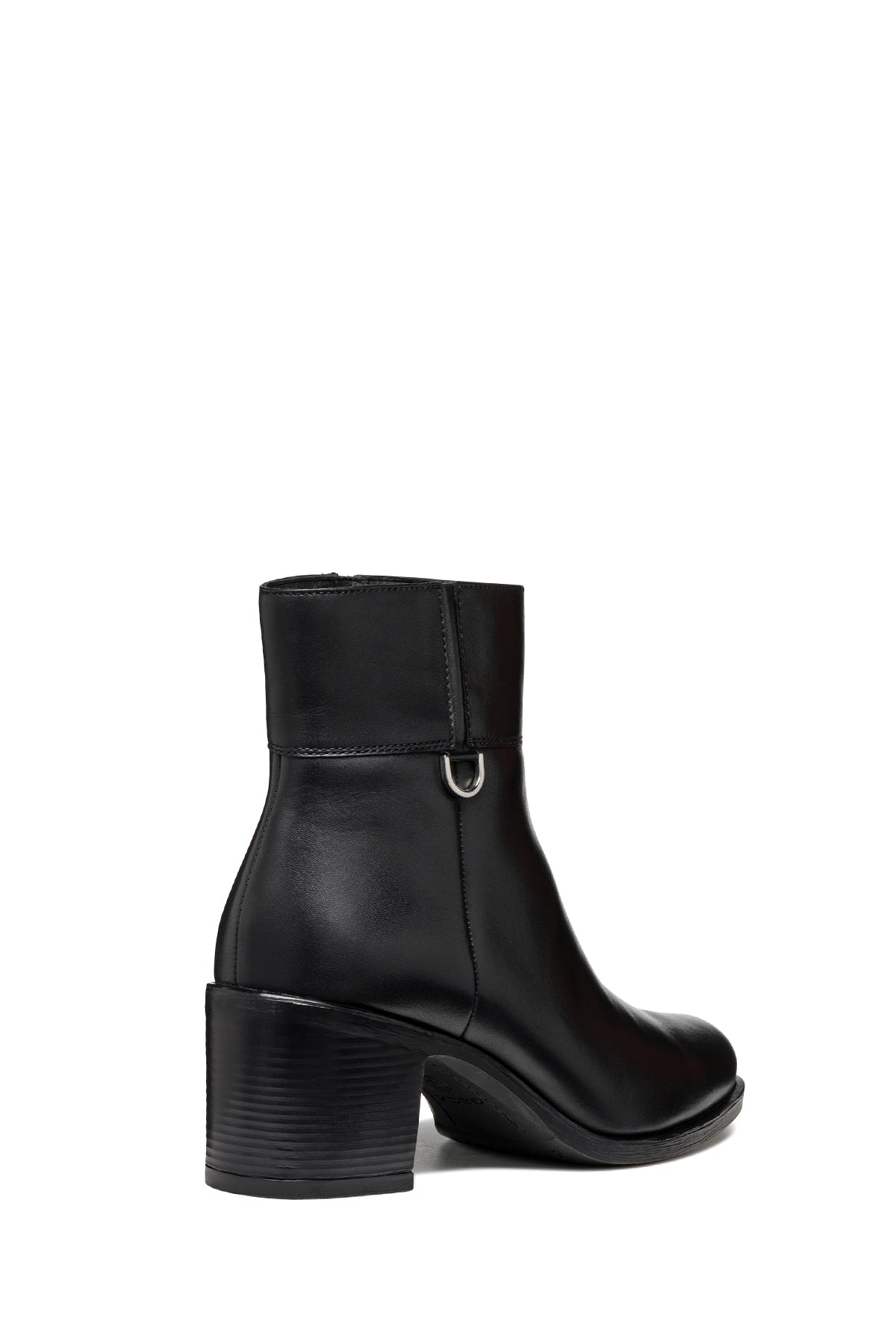 Geox Kadın Siyah New Asheel Fermuarlı Kalın Topuklu Deri Bot