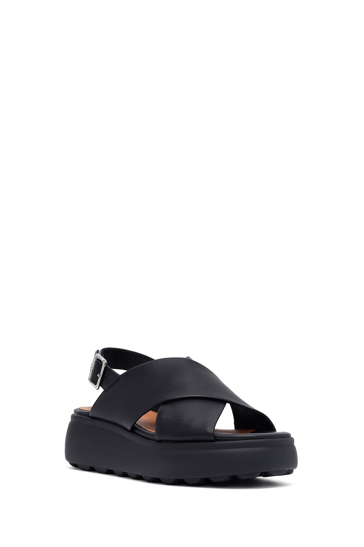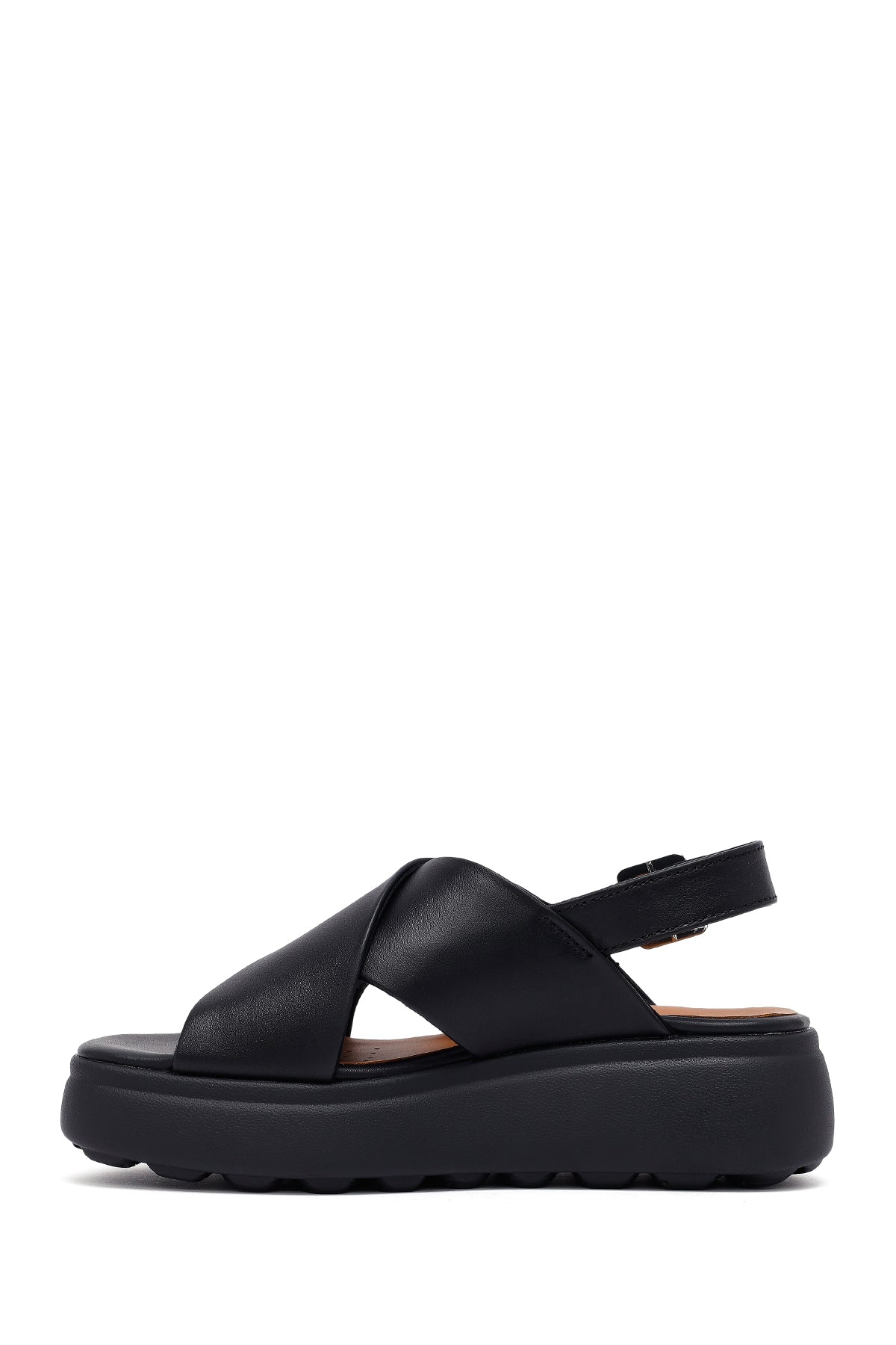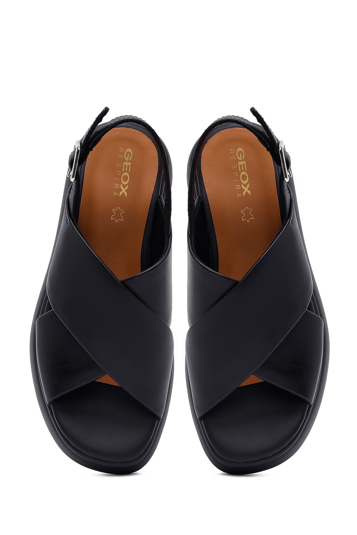 Geox Kadın Siyah Spherica Ec4 Bilekten Bantlı Kalın Tabanlı Deri Sandalet