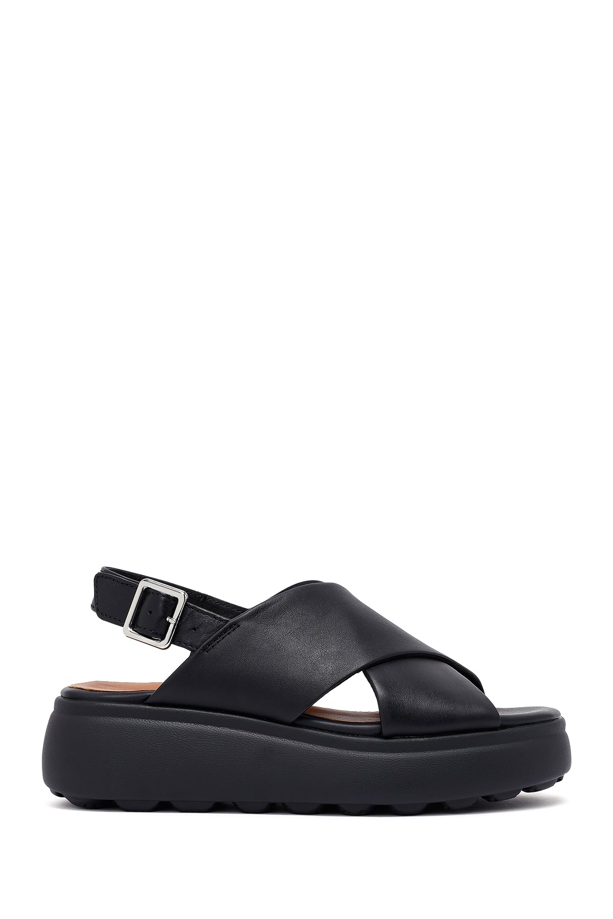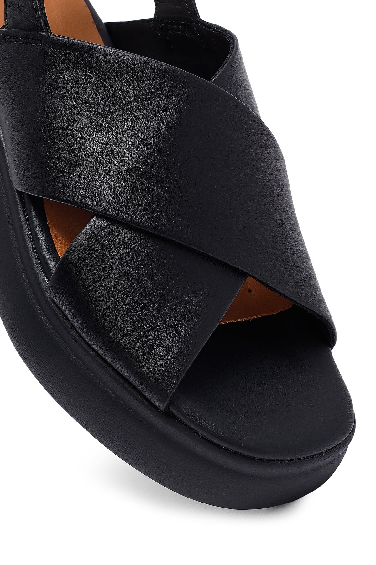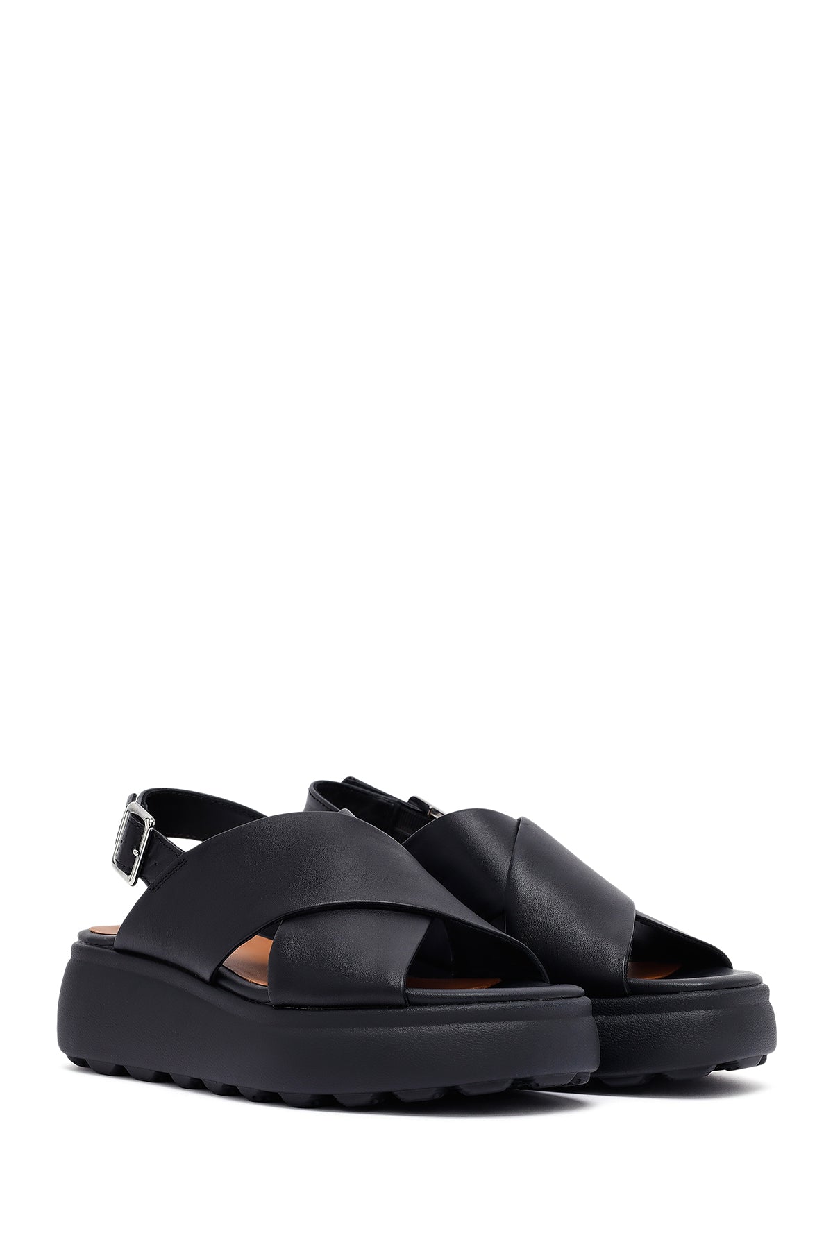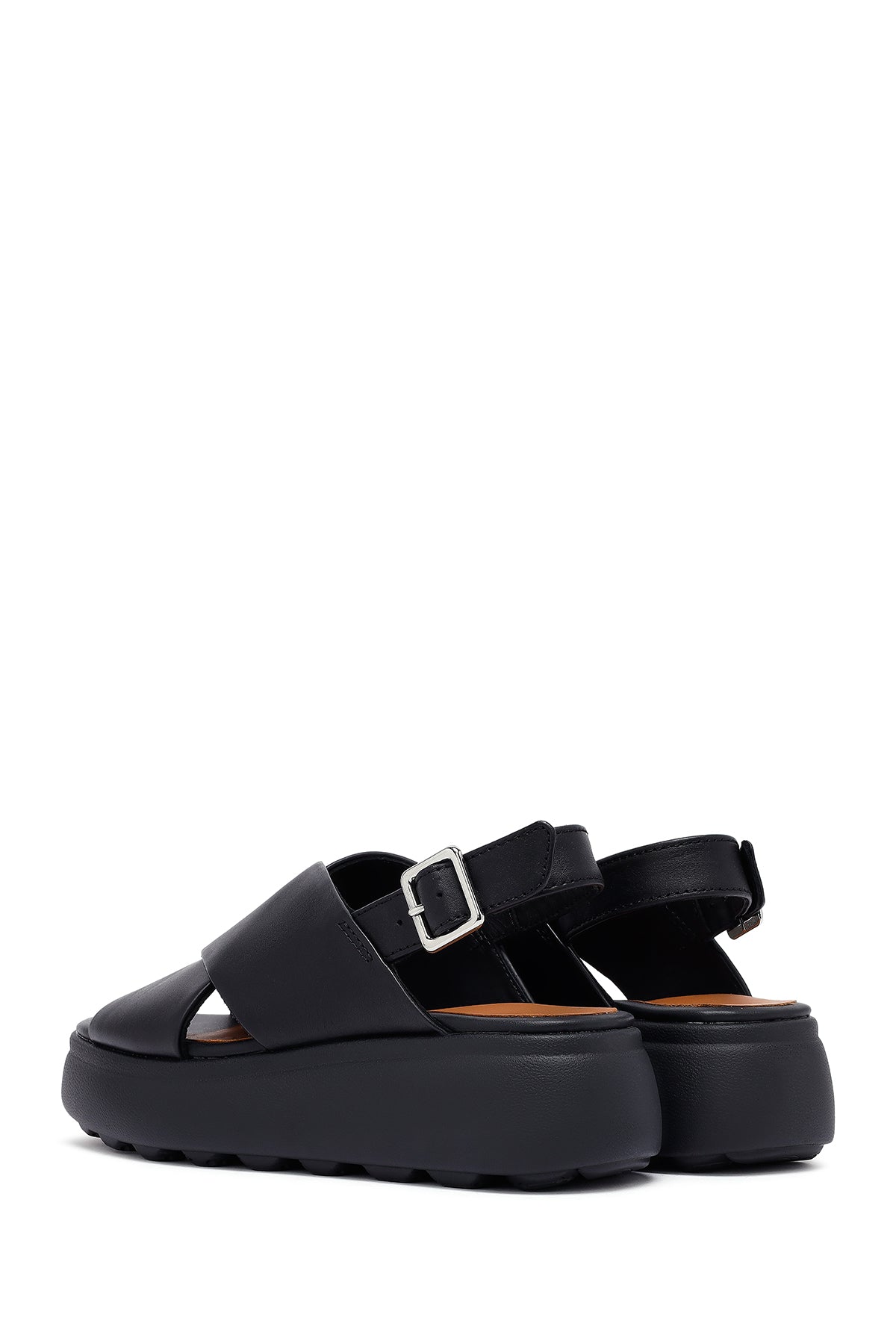 Geox Kadın Siyah Spherica Ec4 Bilekten Bantlı Kalın Tabanlı Deri Sandalet