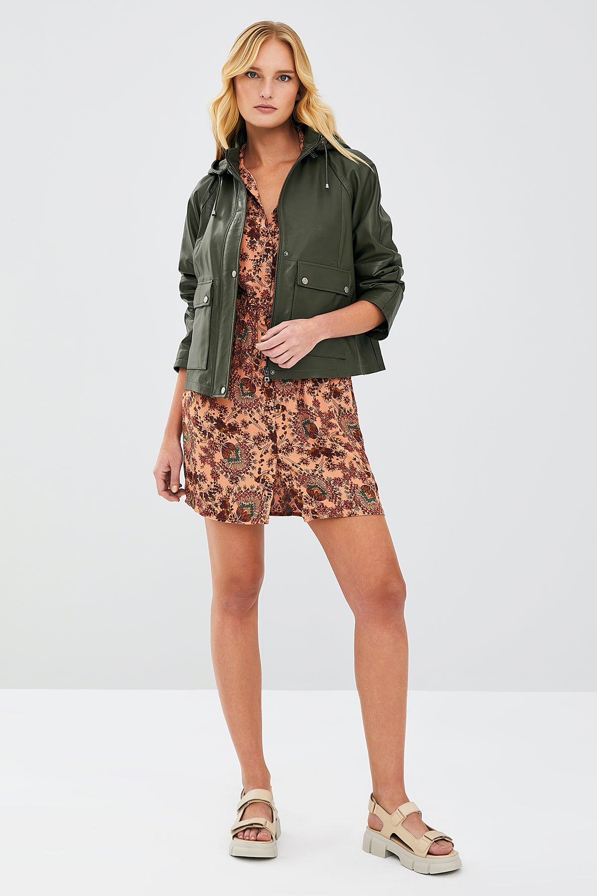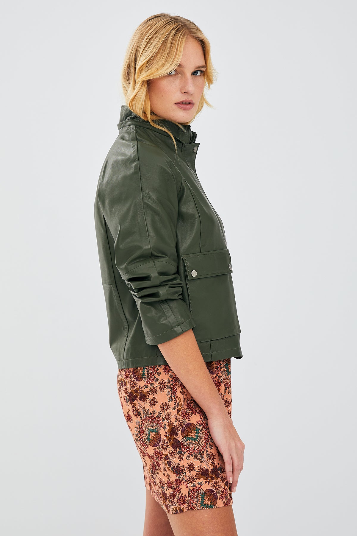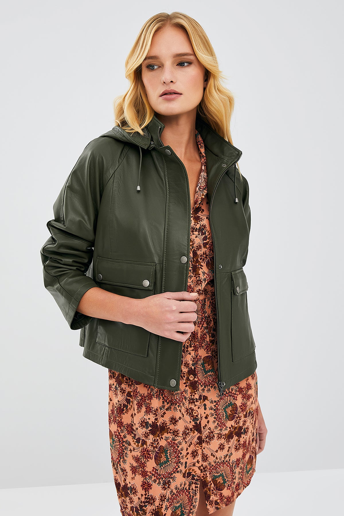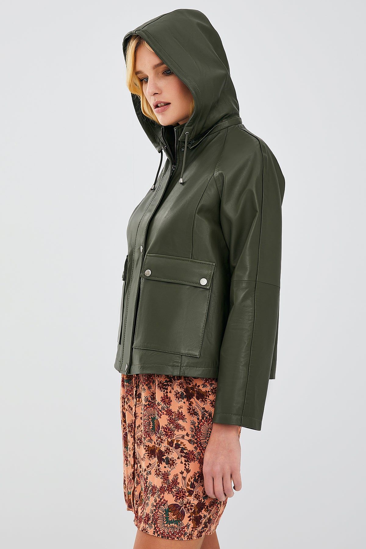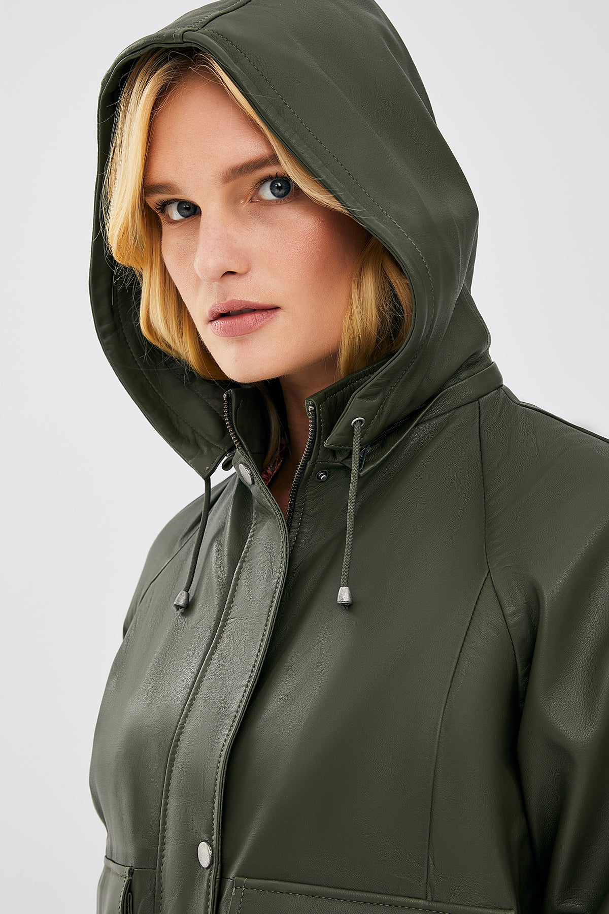 Gloria Kadın Haki Oversize Deri Ceket