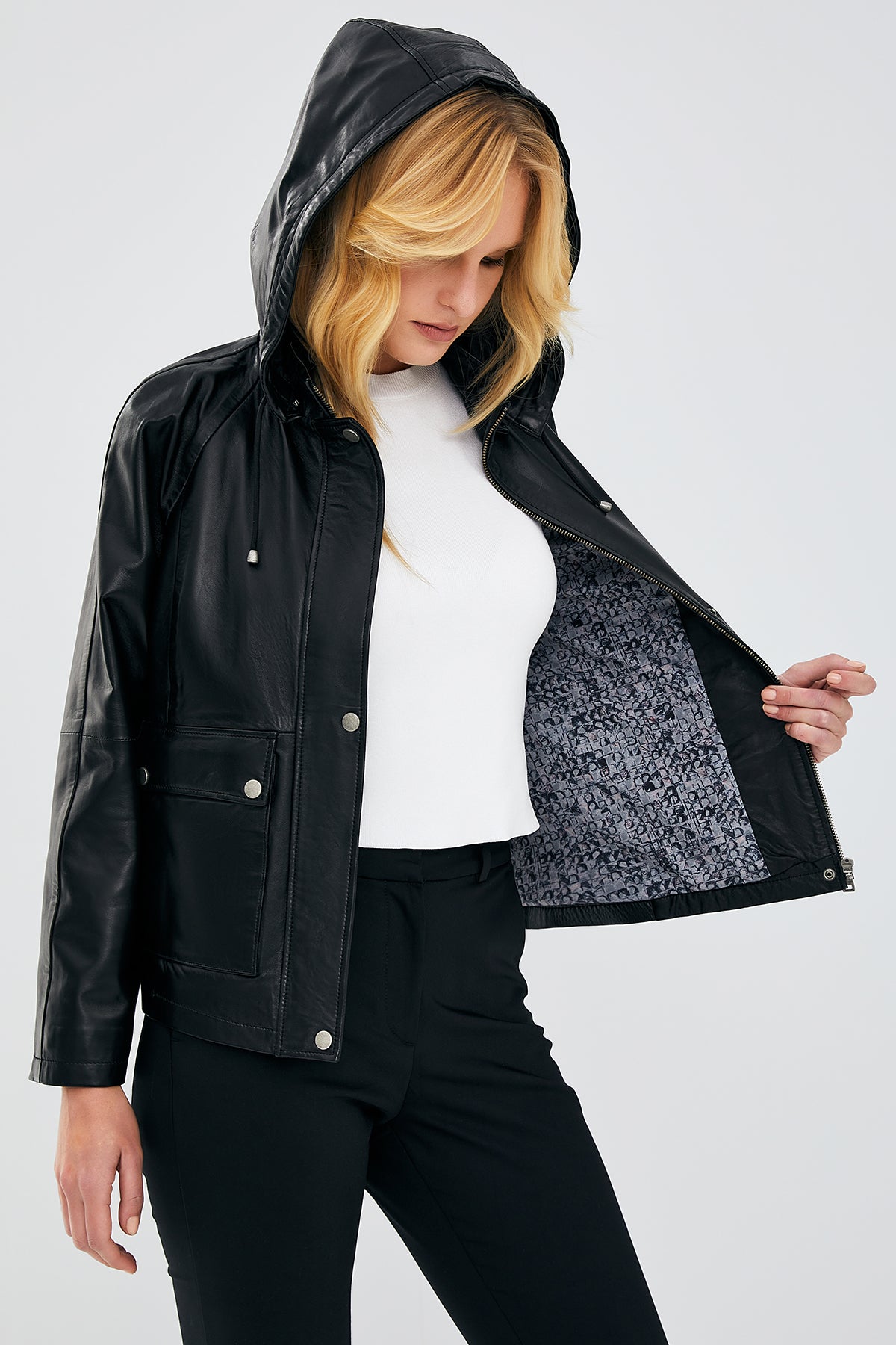 Gloria Kadın Siyah Oversize Deri Ceket