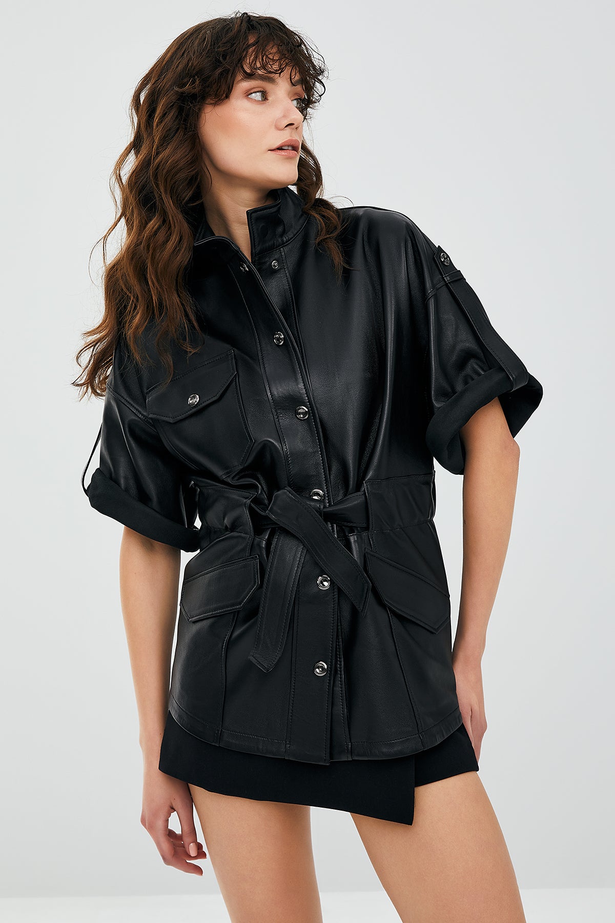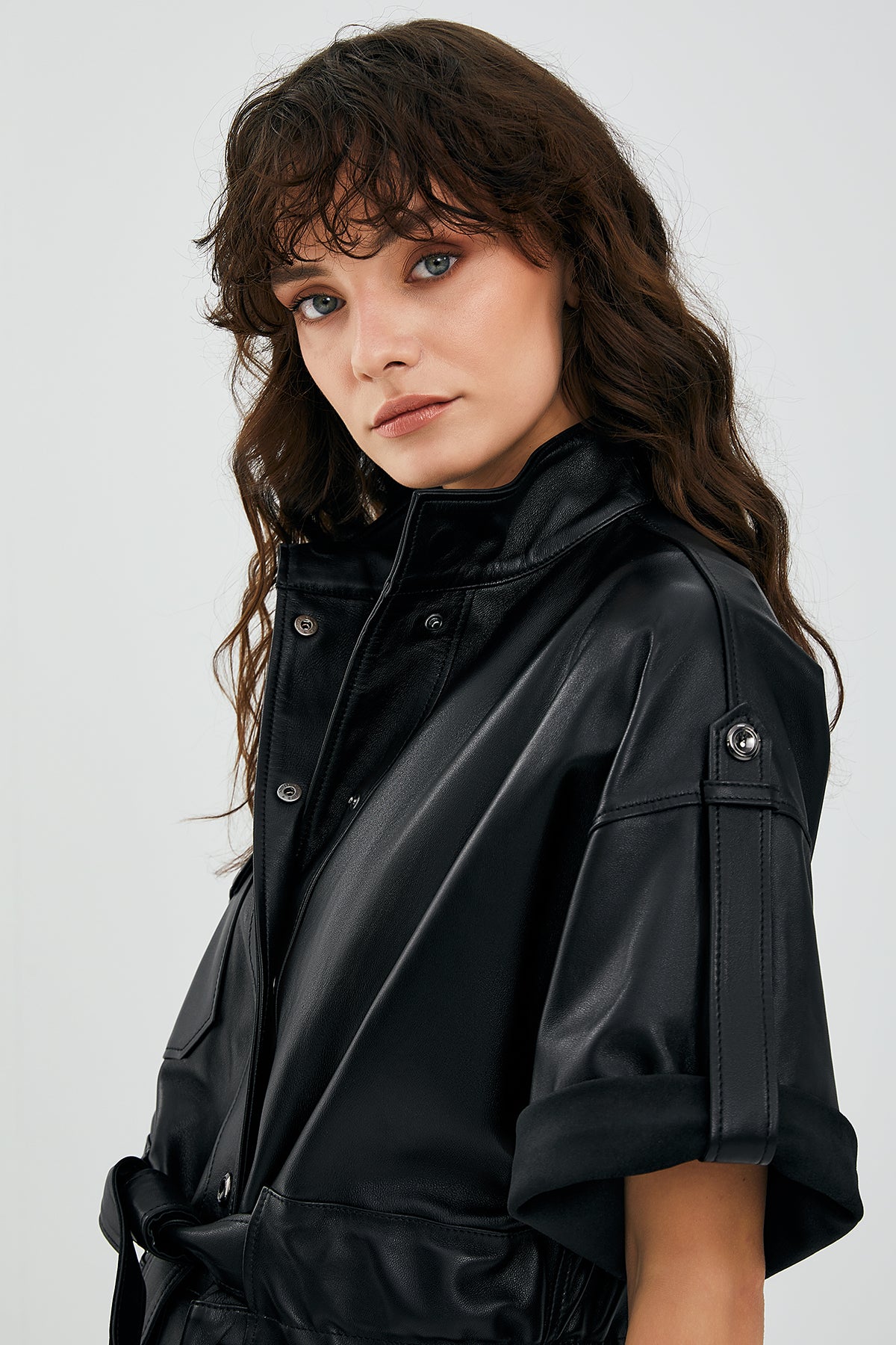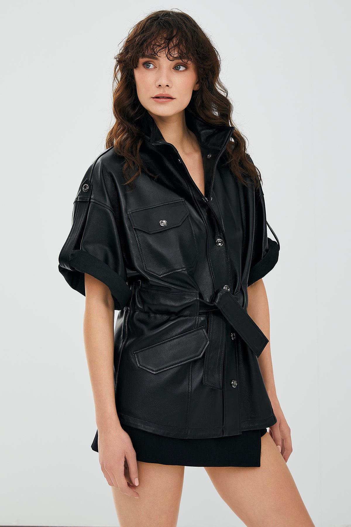 Goldy Siyah Kadın Deri Kısa Kollu Deri Ceket, cesur ve modern tasarımı ile dikkat çekiyor. Yüksek kaliteli deri materyal kullanılarak üretilmiş bu ceket, hem şıklığı hem de kaliteyi bir araya getiriyor. Kısa kollu tasarımı, sıcak havalarda dahi rahat bir kullanım sunarken, üç dış cep detayı ile pratiklik sağlıyor. Çıtçıt kapama sistemi, ceketin kolayca giyilip çıkarılmasını sağlarken şık bir görünüm katıyor. Belinde kuşak detayı bulunan bu ceket, vücut hatlarınızı vurgulayan zarif bir dokunuş sunar. Siyah rengi ile her türlü kıyafetle uyumlu olan bu kısa kollu deri ceket, hem günlük kullanım hem de özel davetler için ideal bir seçimdir. Goldy Siyah Kadın Deri Kısa Kollu Deri Ceket ile tarzınıza modern ve sofistike bir dokunuş ekleyin. Ürünün kodu: 23SGD5073U4 4A