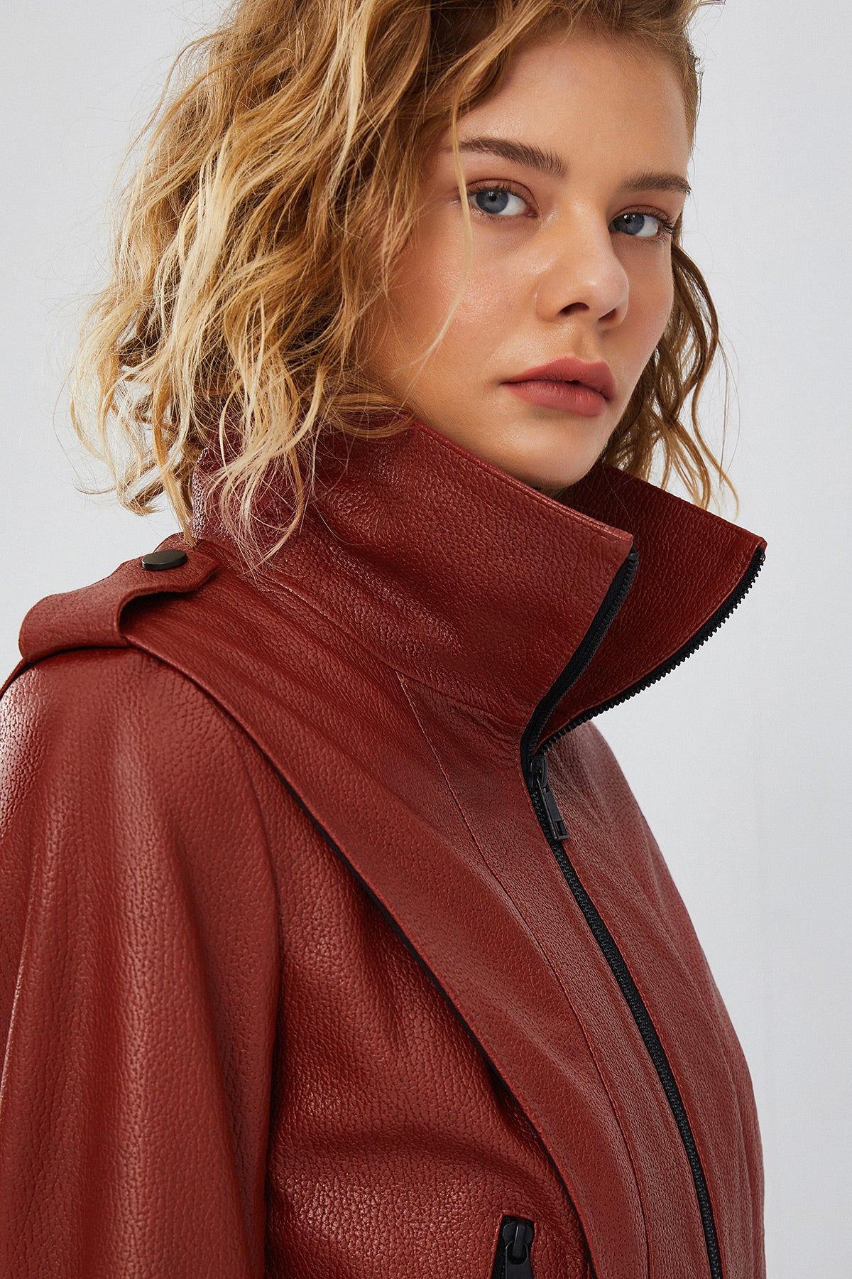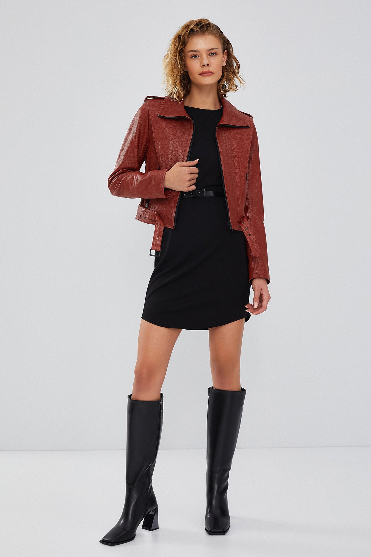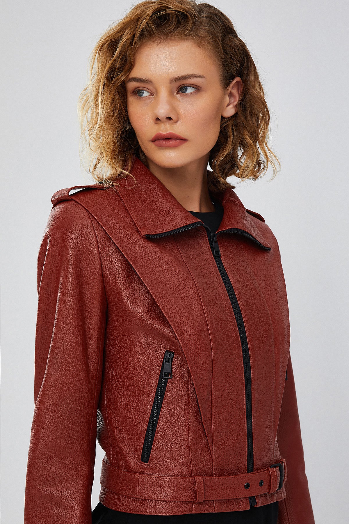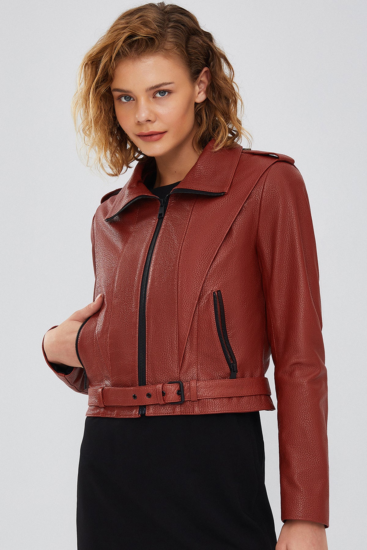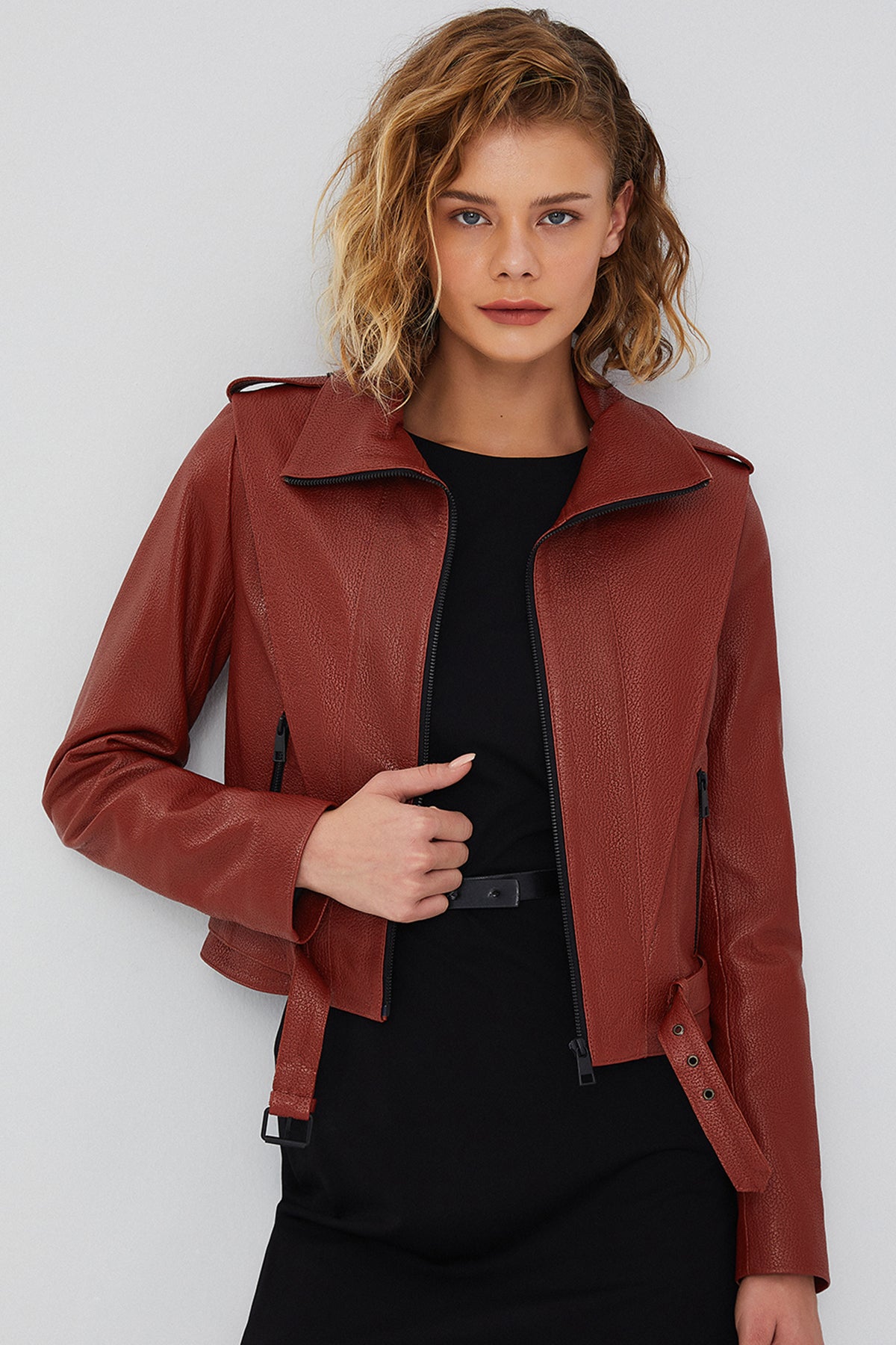 Harper Kadın Kahverengi Kısa Deri Ceket