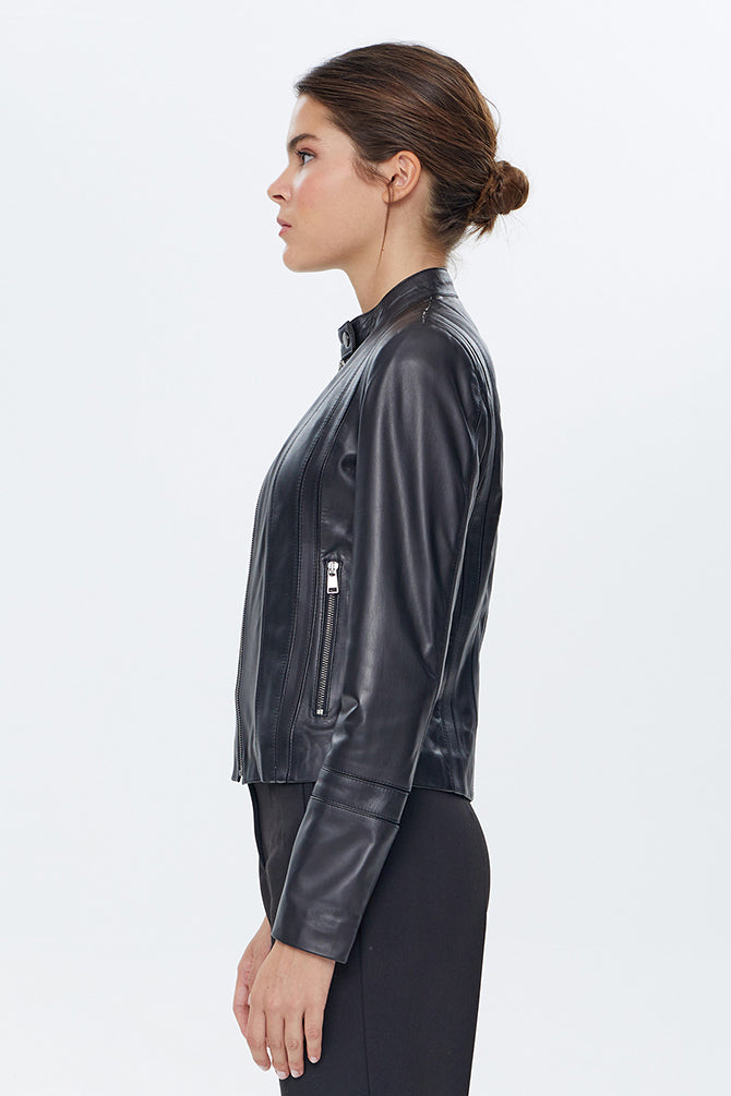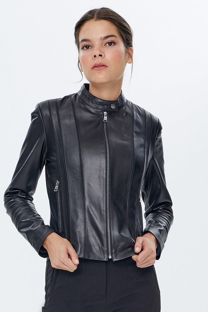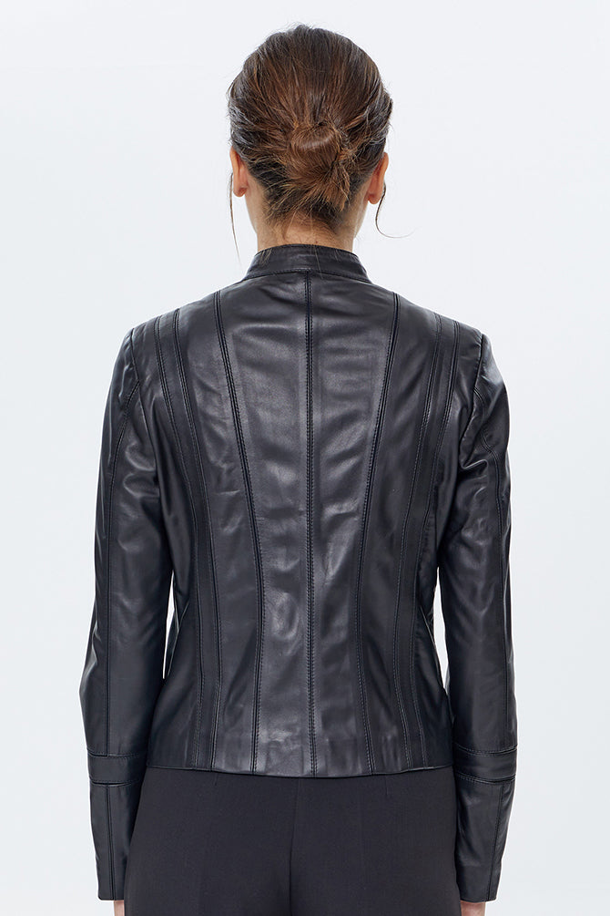 Irma Kadın Siyah Streç-Fit Deri Ceket