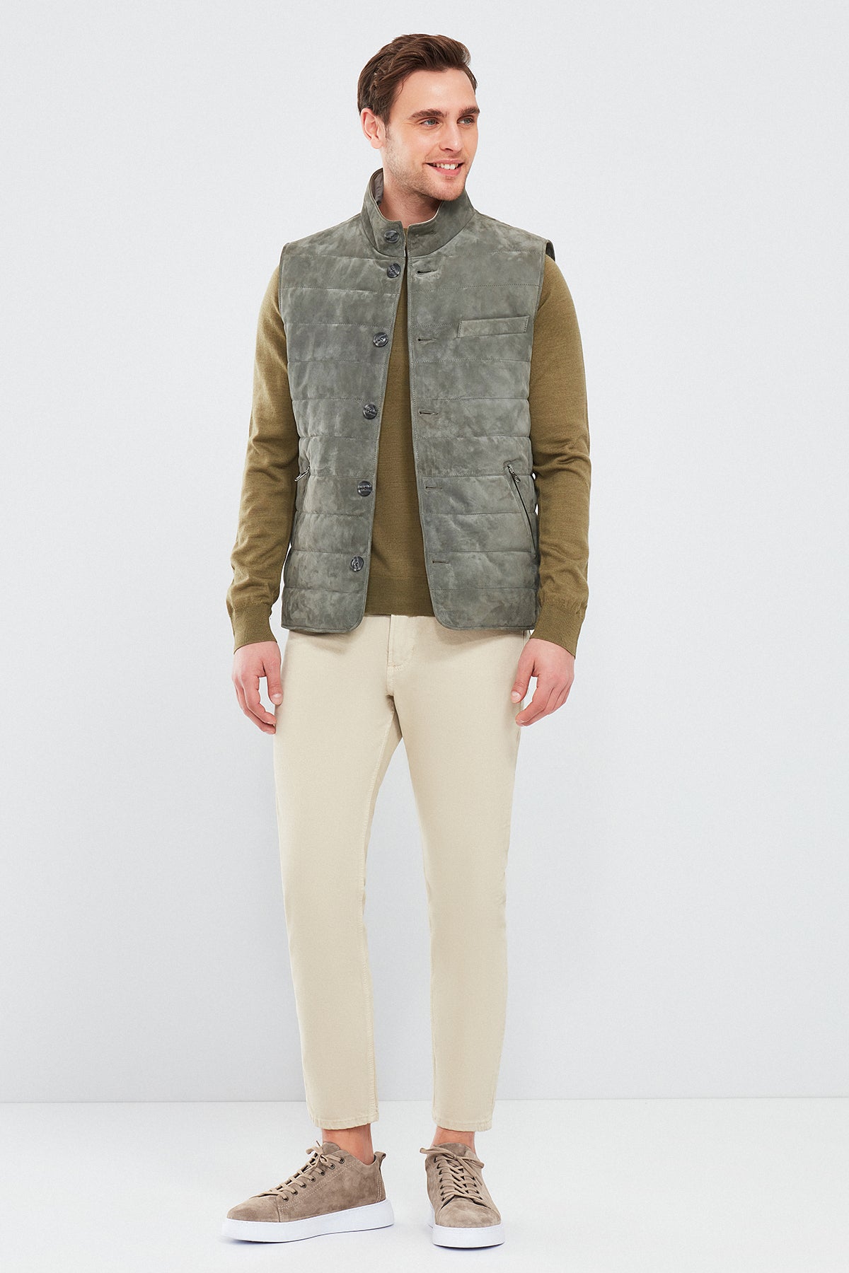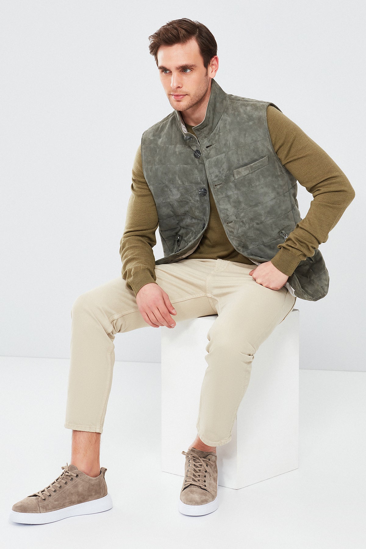 Isko Erkek Gri Süet Deri Yelek, zarif ve rahat bir görünüm sunmak için özel olarak tasarlanmıştır. Kaliteli süet deri materyali ile üretilen bu yelek, yumuşak dokusu ve dayanıklılığı ile dikkat çeker. Hakim yaka ve düğmeli kapama sistemi, klasik ve modern bir tarzı bir araya getirir. Dış cep sayısı 3, iç cep sayısı ise 2 olan bu yelek, fonksiyonelliği ön planda tutar. Regular kesimi, standart bir kalıp sunarak konforlu bir giyim deneyimi sağlar. Şık ve kullanışlı detaylarıyla günlük kullanım için ideal bir tercih olacaktır. Ürünün kodu: 24SGD652010 1Y