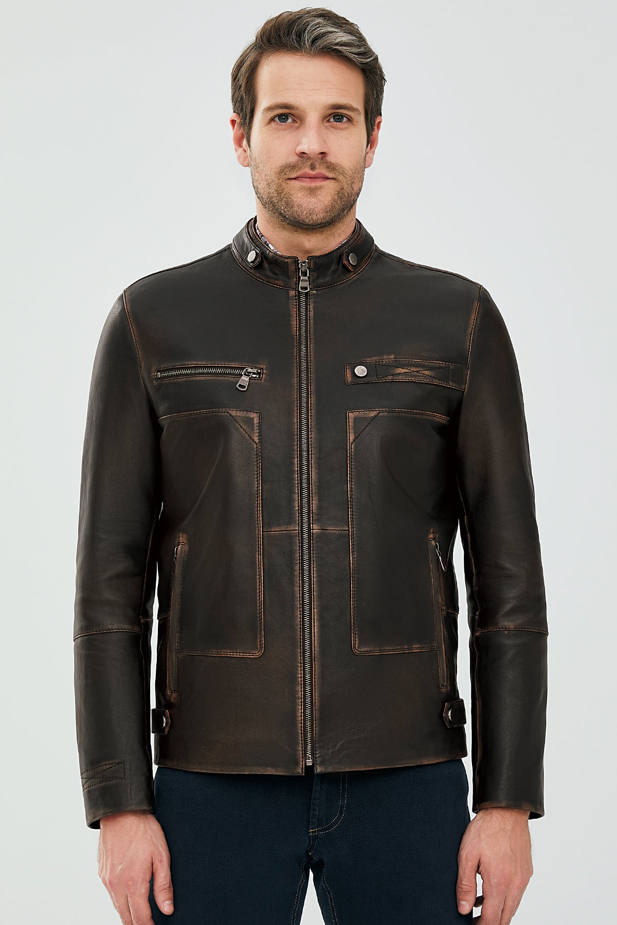 Derimod’un Zarif ve Şıklığı bir arada sunan Jokic Kahverengi Erkek Slim-Fit Deri Ceket ile tarzınızı konuşturun. Ürünün kodu: 23SGD6477VD 3E