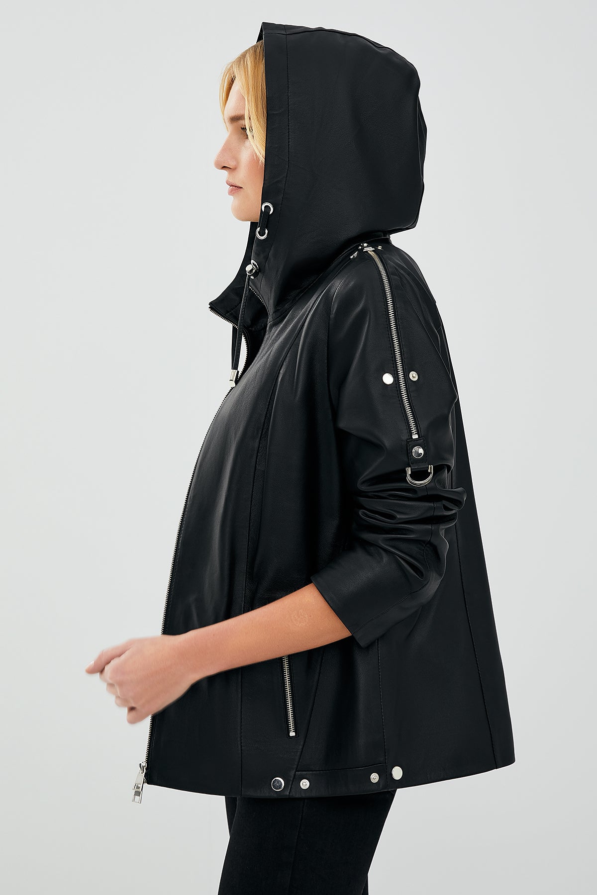 Derimod’un Zarif ve Şıklığı bir arada sunan Judith Kadın Siyah Kapüşonlu Deri Mont ile tarzınızı konuşturun. Ürünün kodu: 23SGD5045U4 11