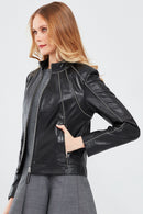 Julia Kadın Siyah Kısa Deri Ceket, modern ve şık tasarımıyla dikkat çekiyor. Kaliteli deri materyalden üretilmiş olan bu ceket, dayanıklılığı ve zarif görünümü ile öne çıkar. Fermuarlı kapama sistemi, pratik bir kullanım sunarken hakim yaka detayı, cekete sofistike bir hava katar. Kısa tasarımı ile hem günlük hem de özel kombinlerinizde rahatlıkla kullanabileceğiniz bu ceket, her gardıropta bulunması gereken bir parçadır. Siyah rengi, her türlü kıyafetle uyum sağlar ve klasik bir şıklık sunar. Julia Kadın Siyah Kısa Deri Ceket ile tarzınıza modern ve zarif bir dokunuş ekleyin. Ürünün kodu: 24SGE51891M 11