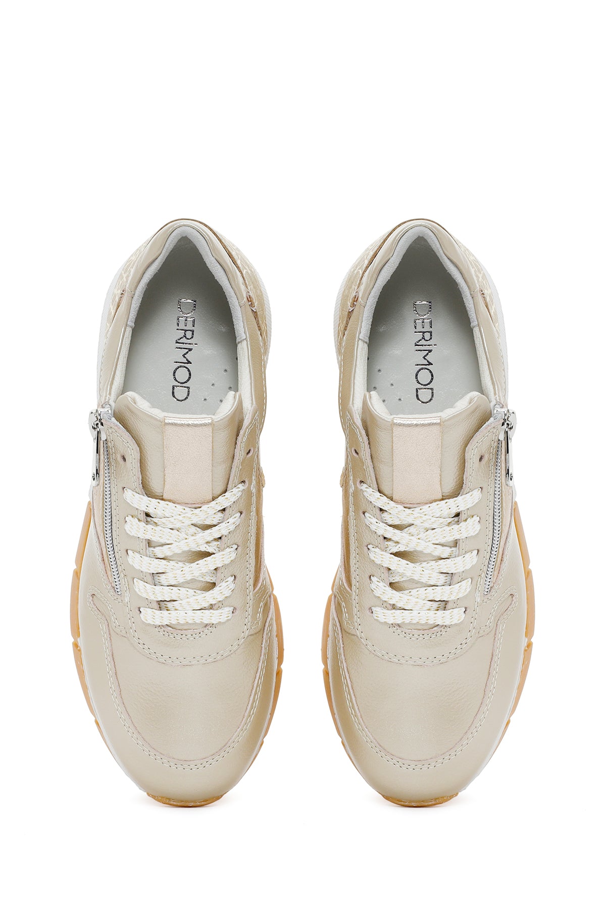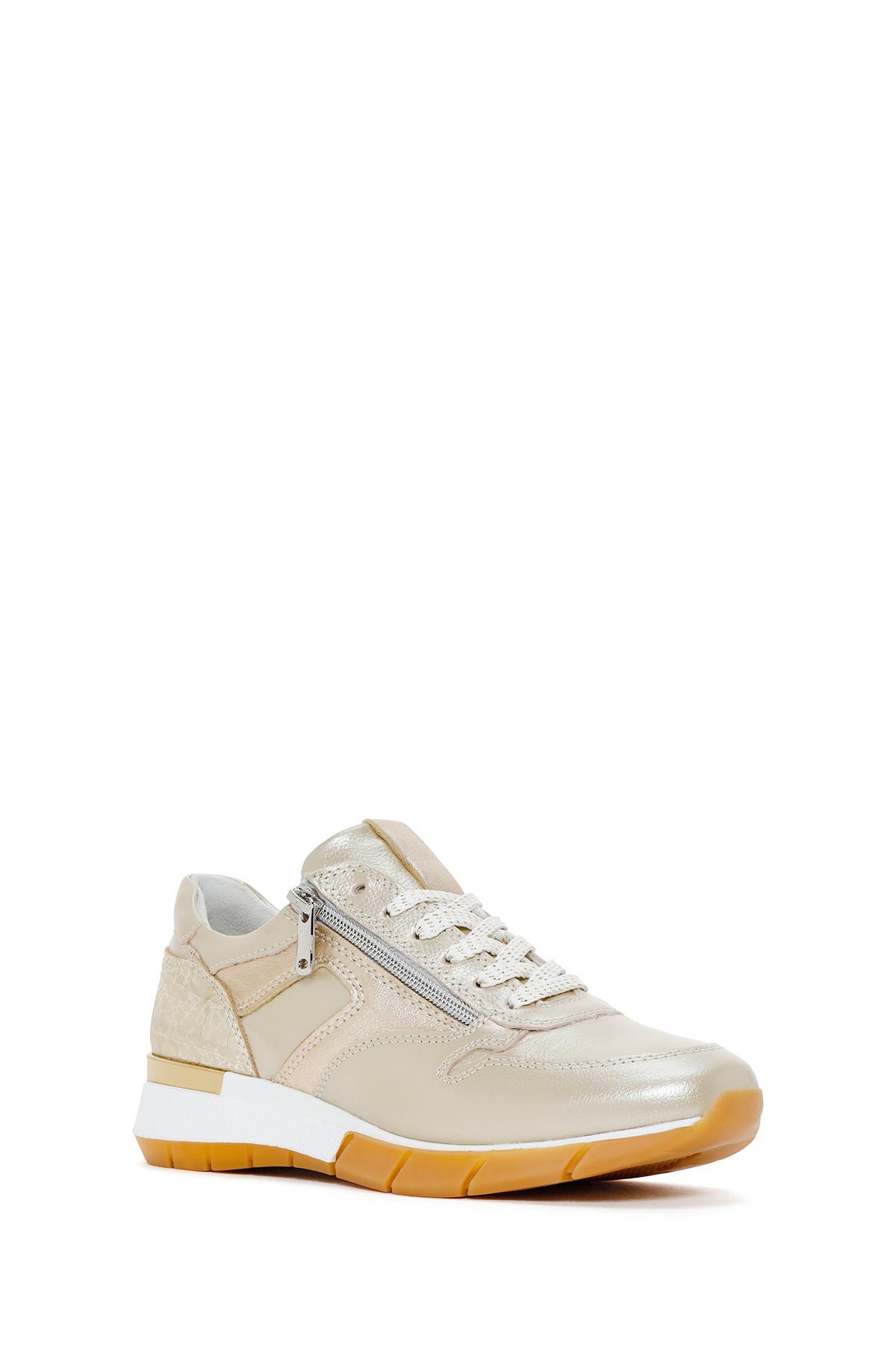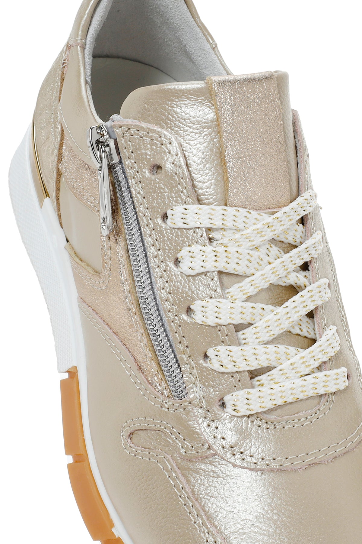 Kadın Altın Bağcıklı Yandan Fermuarlı Deri Sneaker