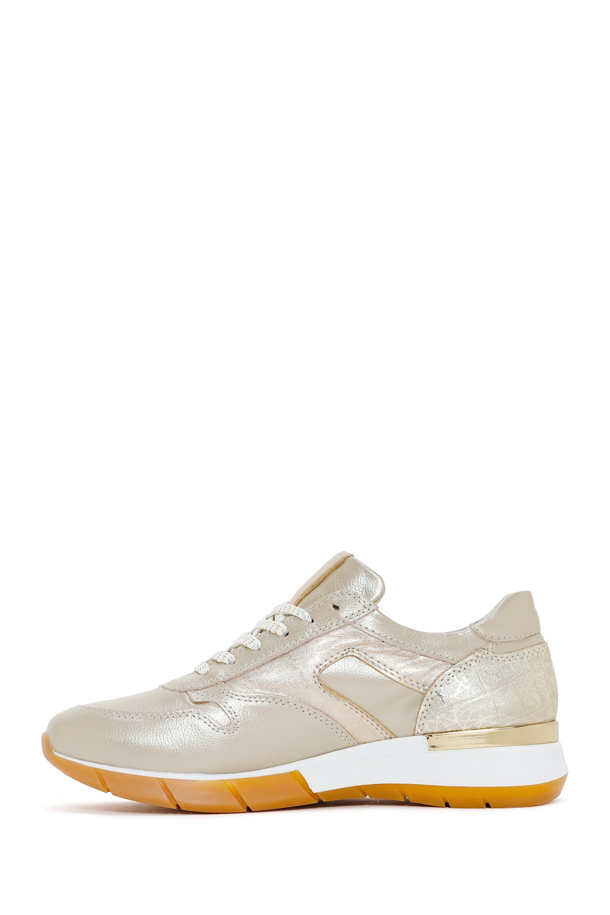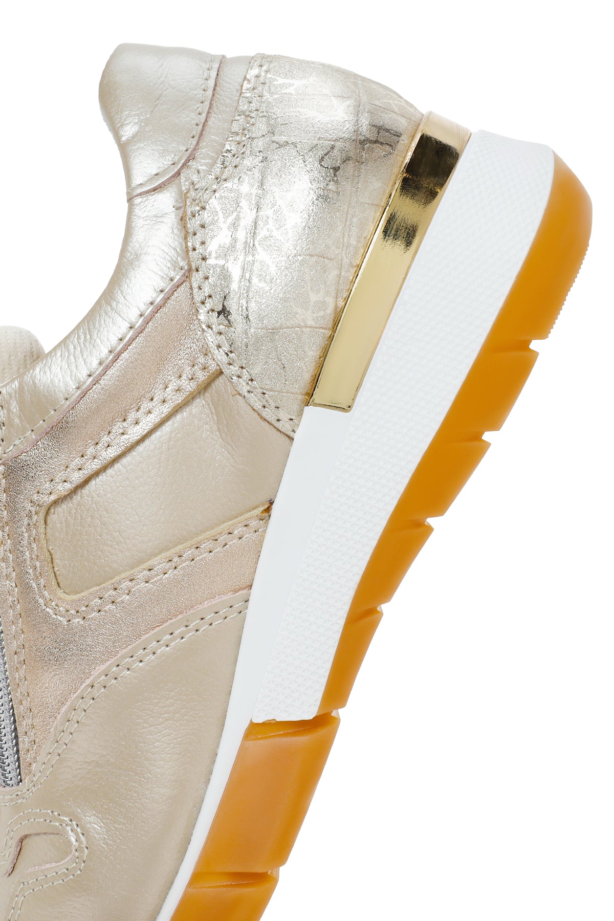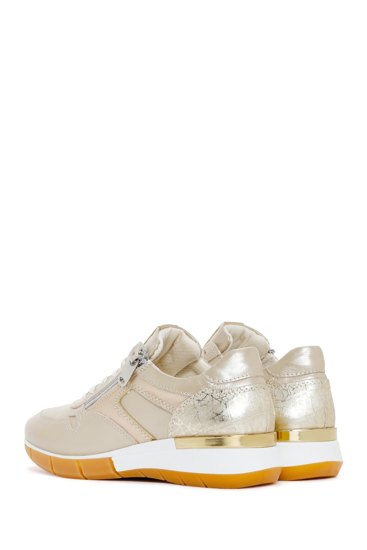Kadın Altın Bağcıklı Yandan Fermuarlı Deri Sneaker