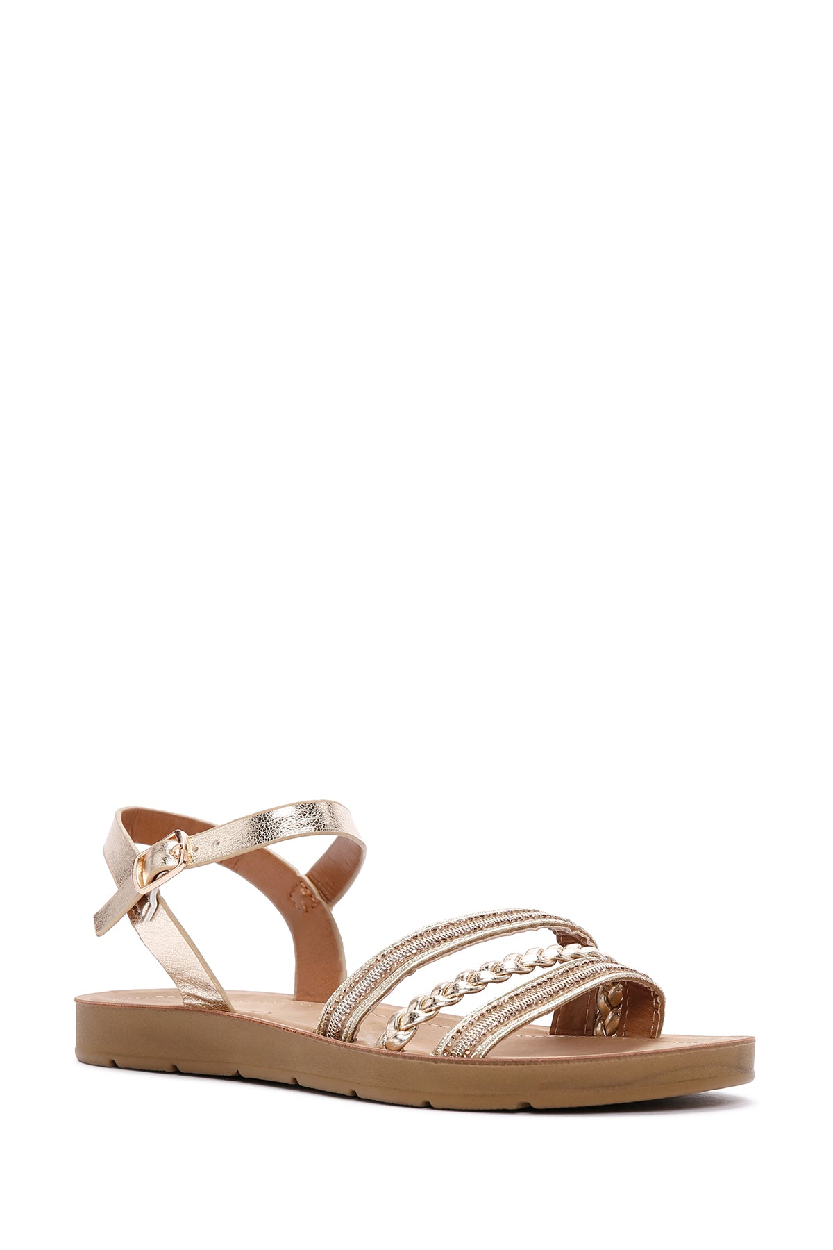 Kadın Altın Bilekten Bantlı Comfort Sandalet