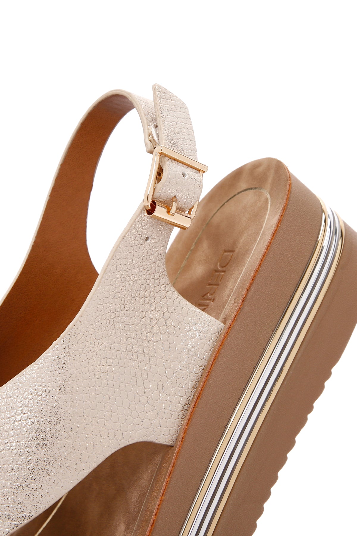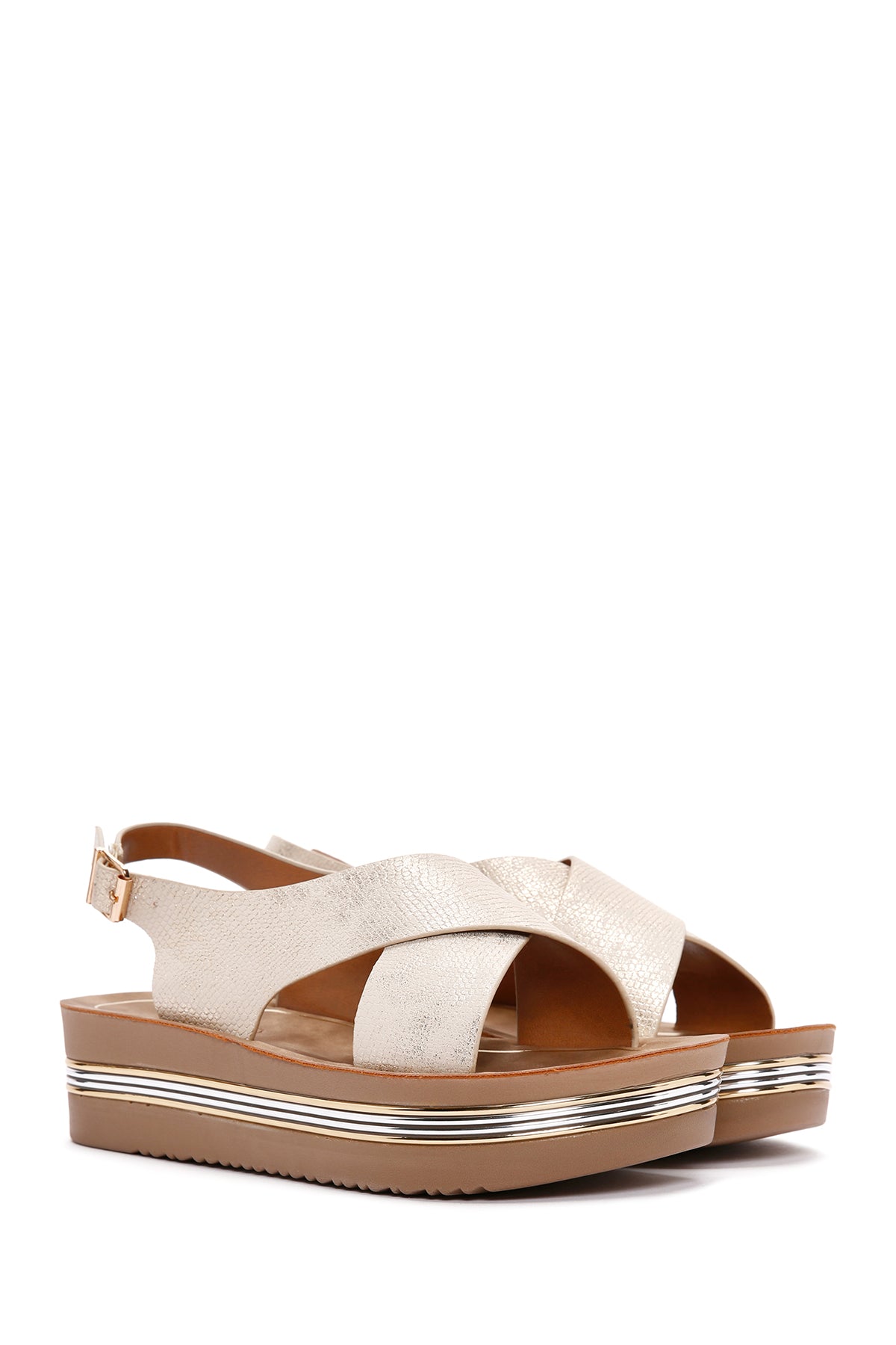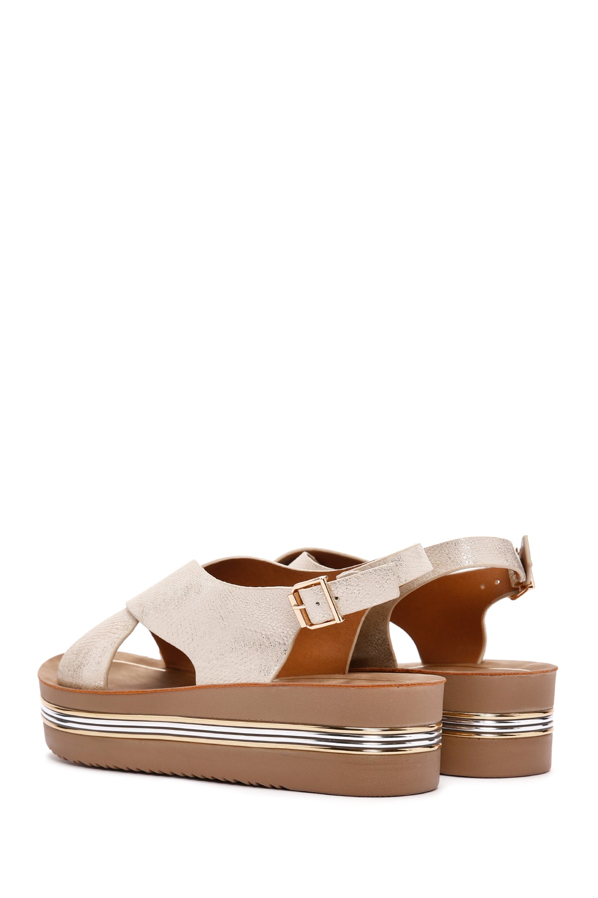 Kadın Altın Bilekten Bantlı Kalın Tabanlı Metalik Sandalet