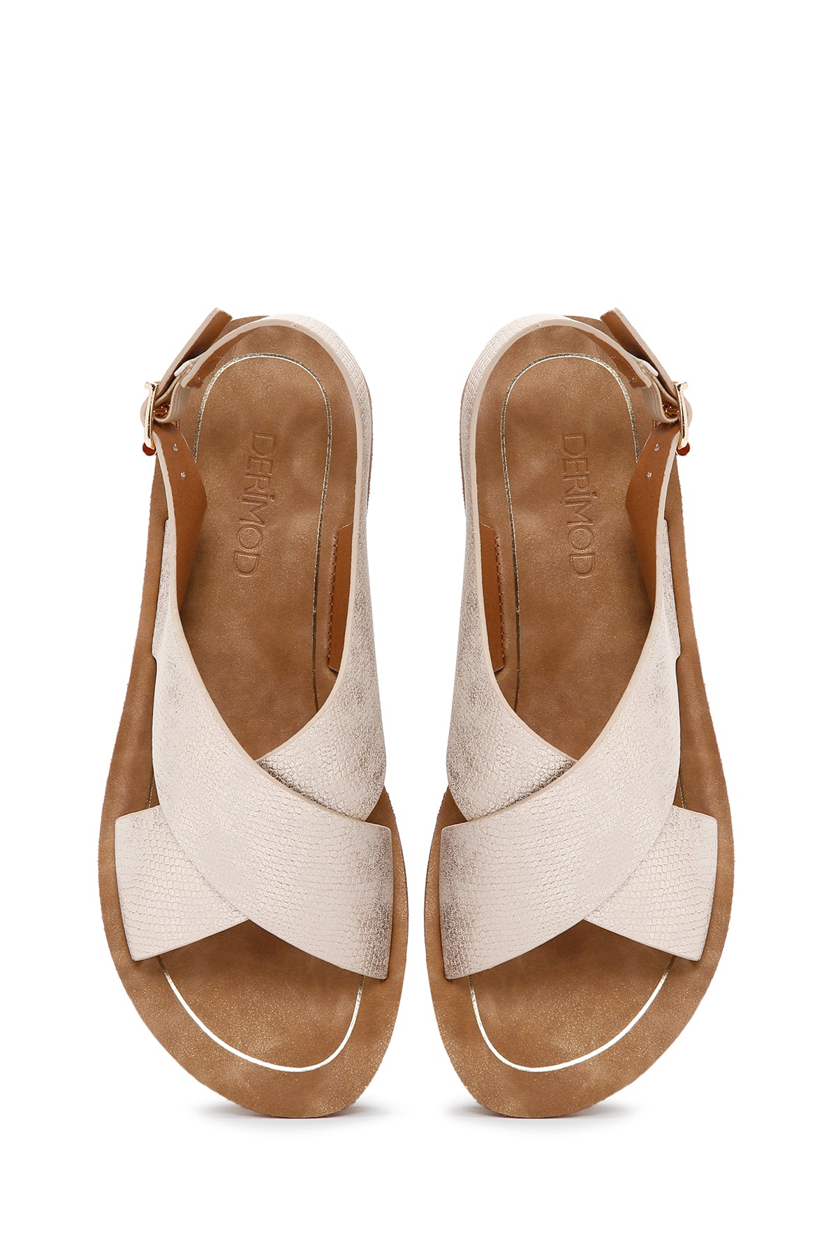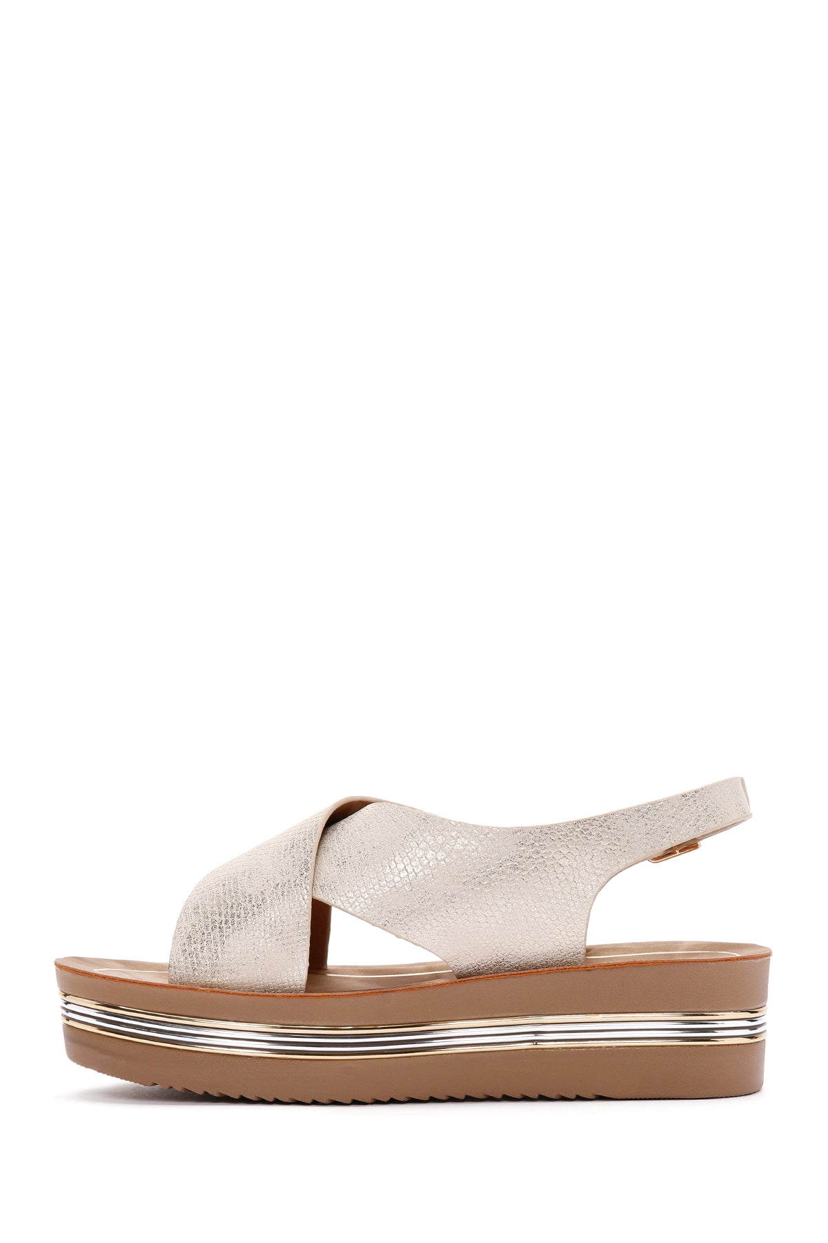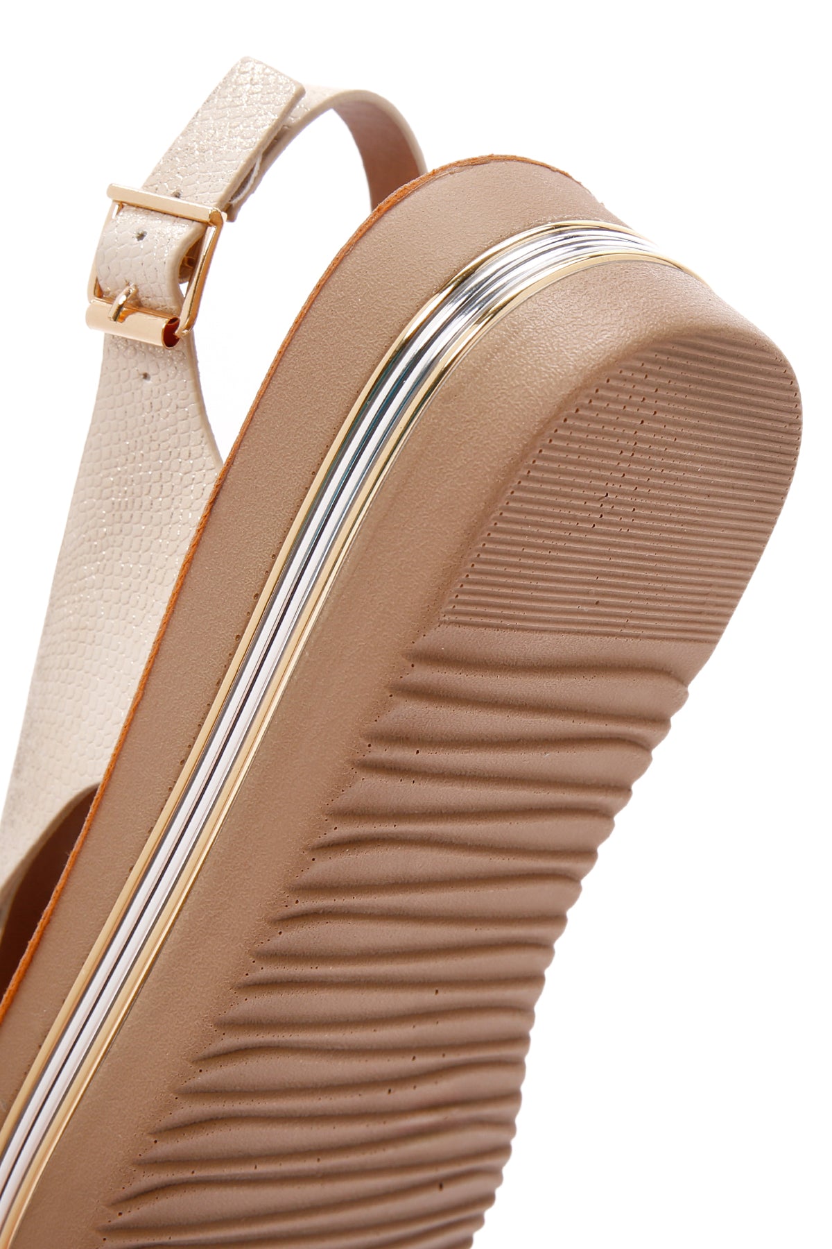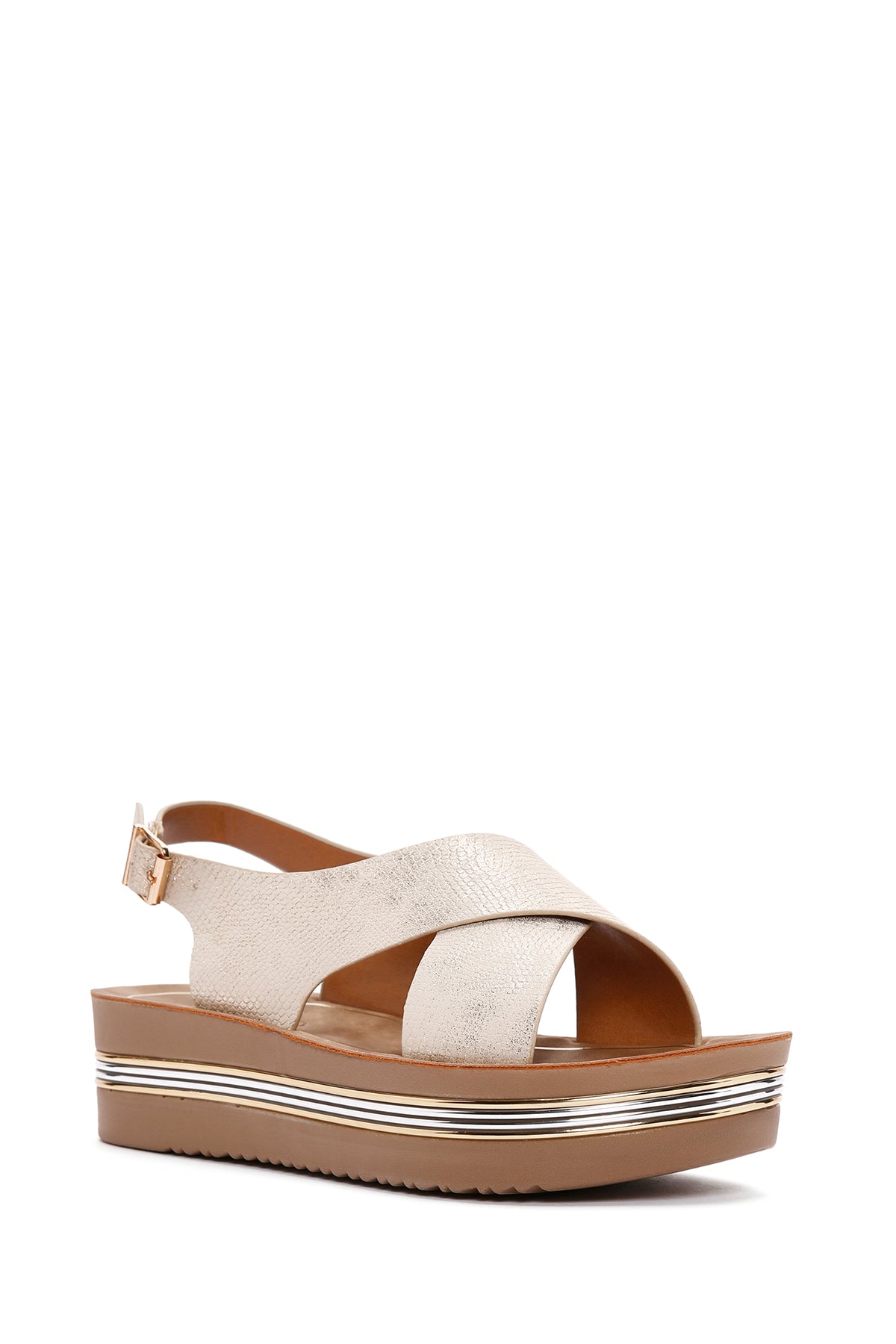 Kadın Altın Bilekten Bantlı Kalın Tabanlı Metalik Sandalet