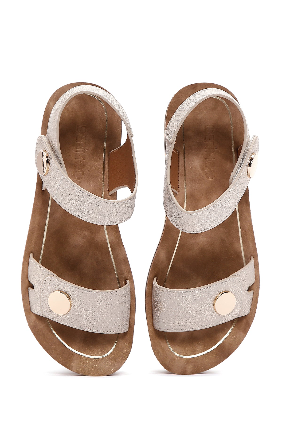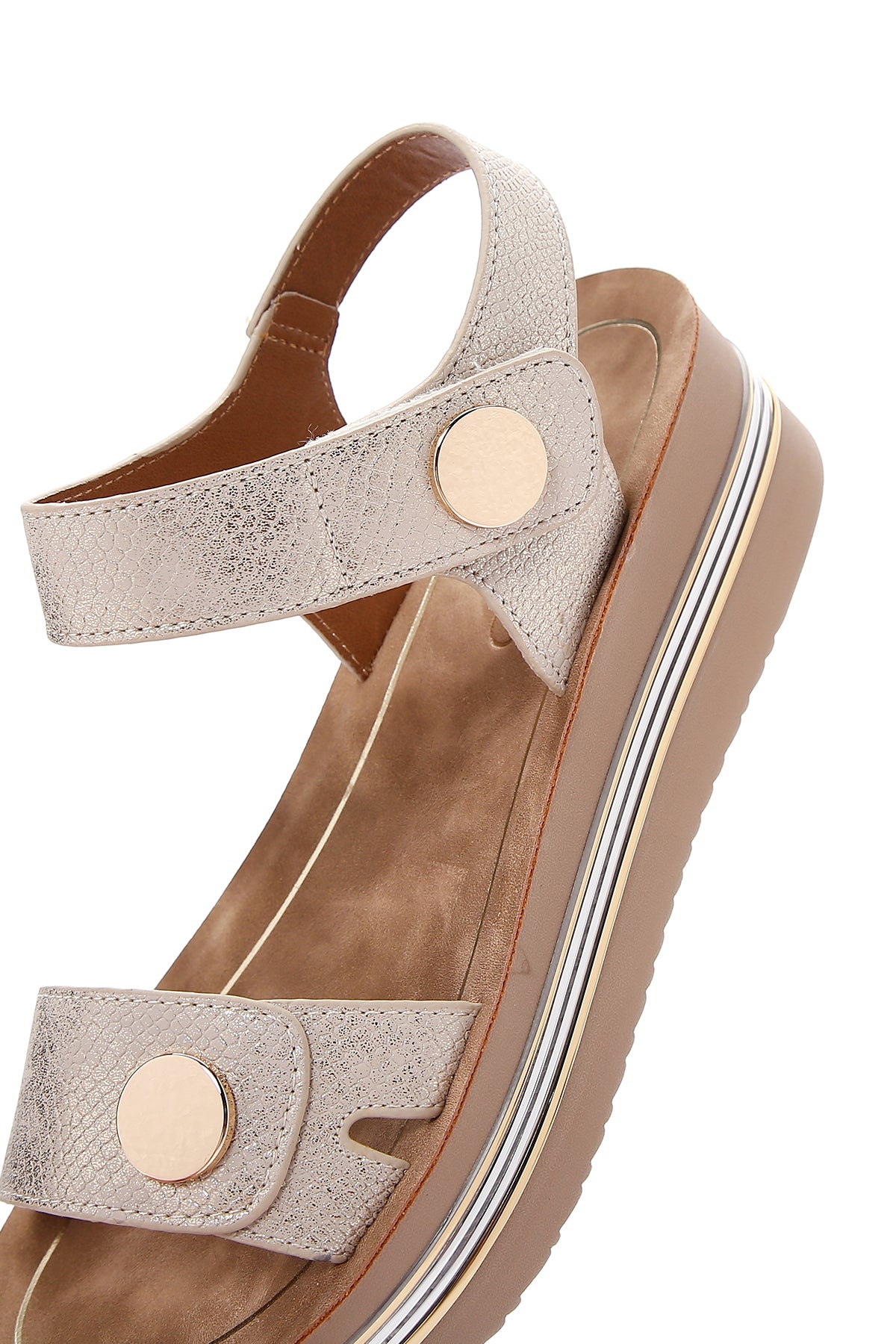 Kadın Altın Bilekten Bantlı Kalın Tabanlı Sandalet