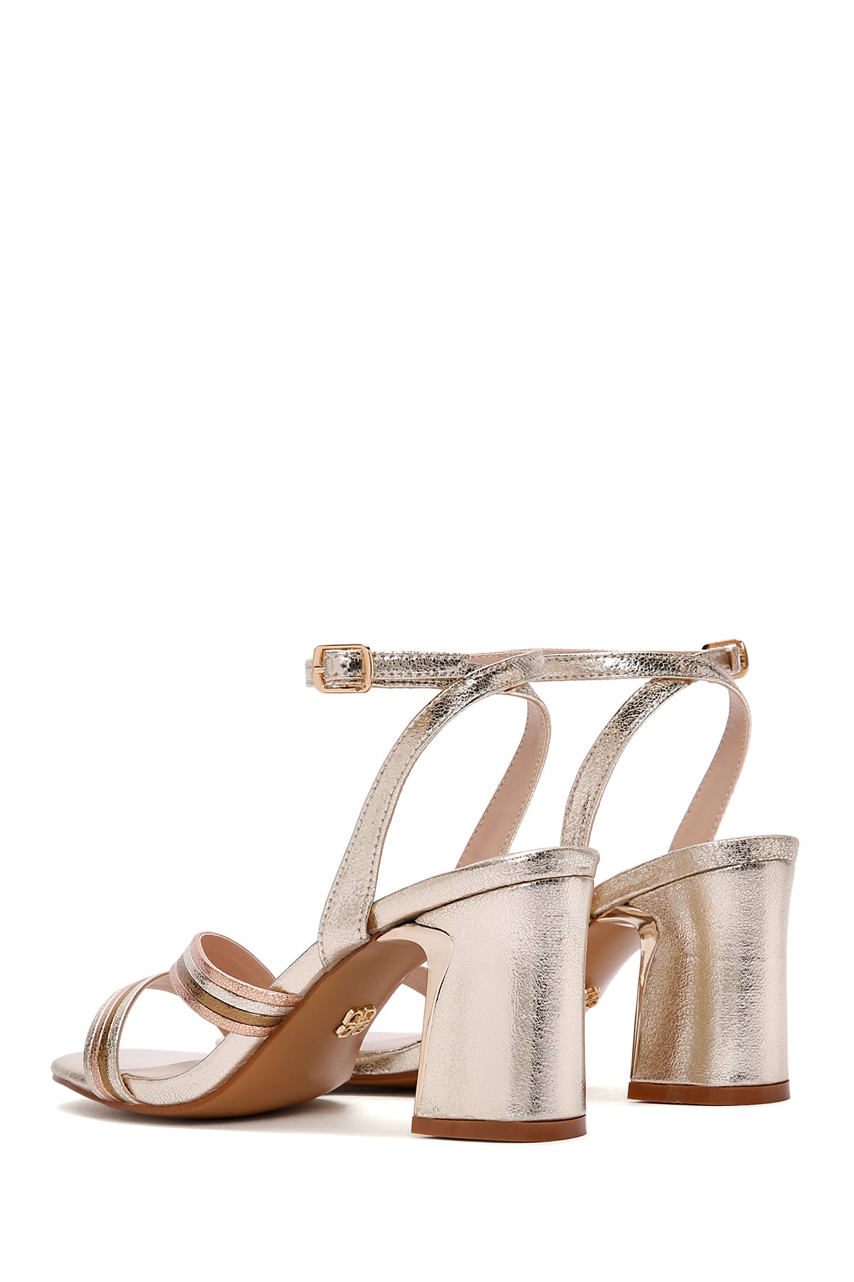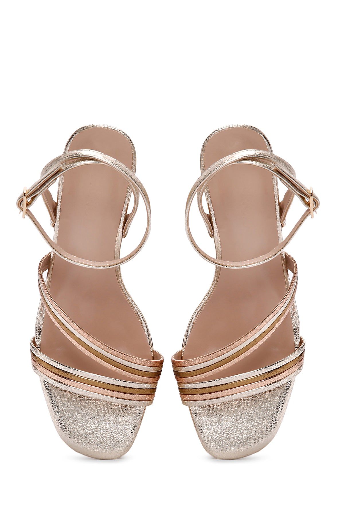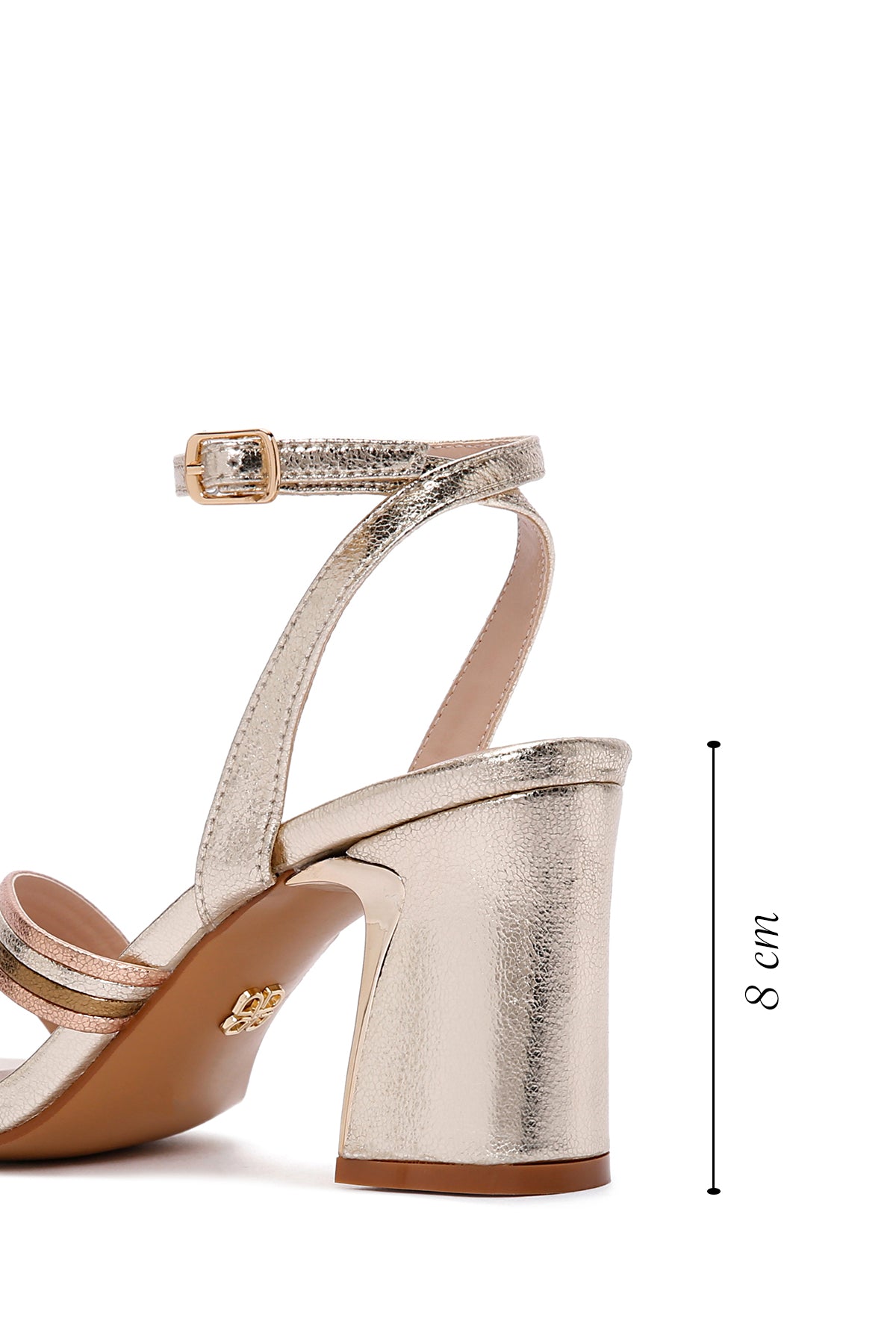 Kadın Altın Bilekten Bantlı Metalik Topuklu Sandalet