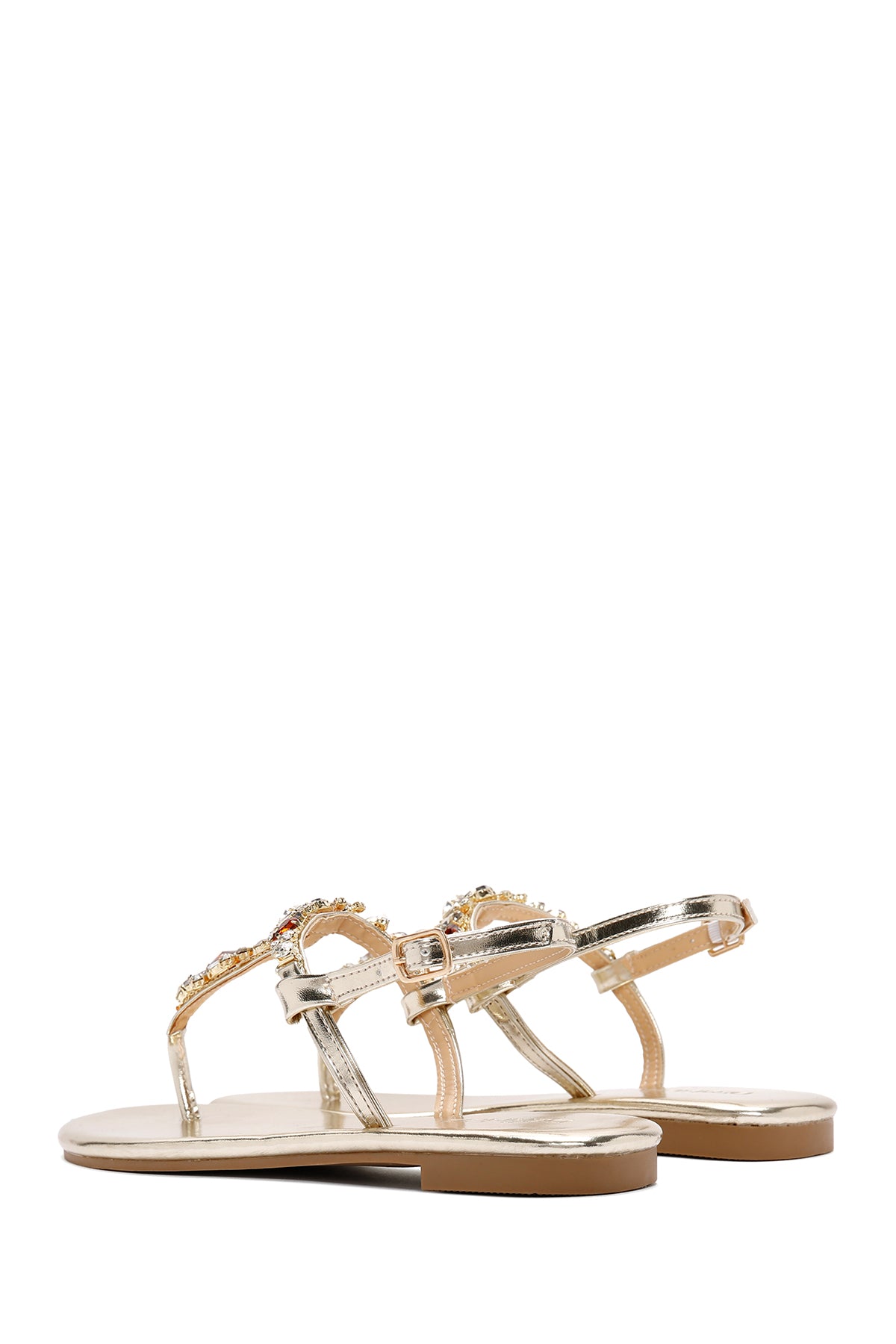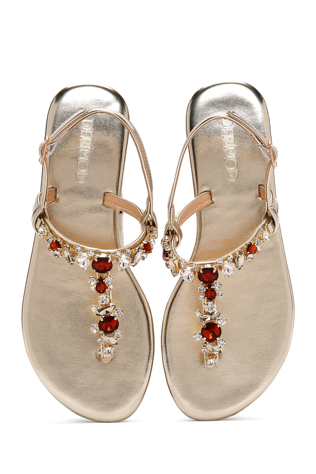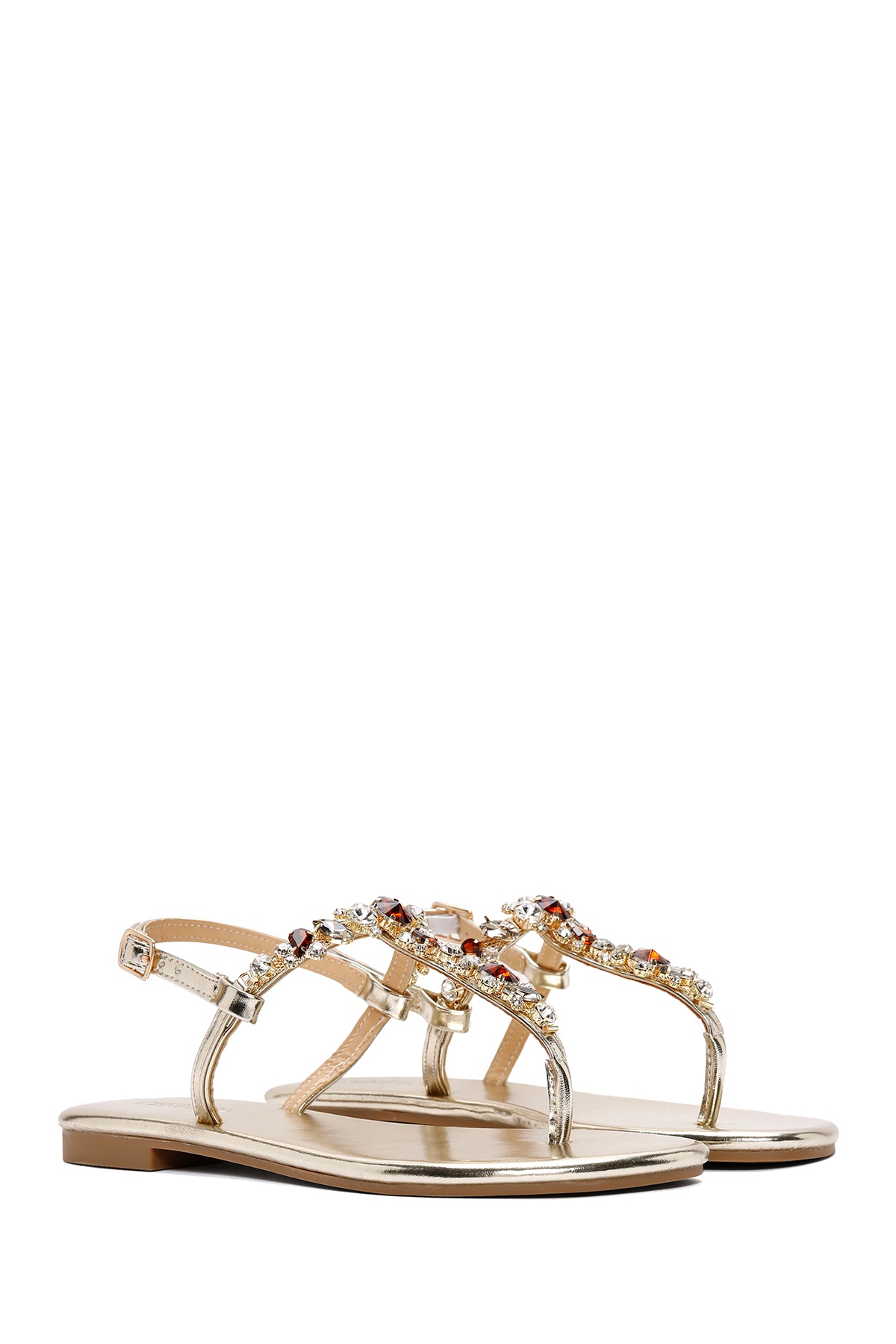 Kadın Altın Bilekten Bantlı Taşlı Sandalet