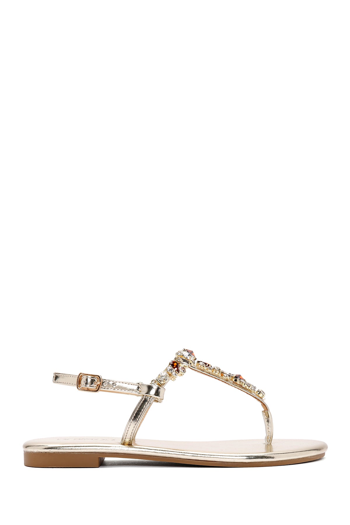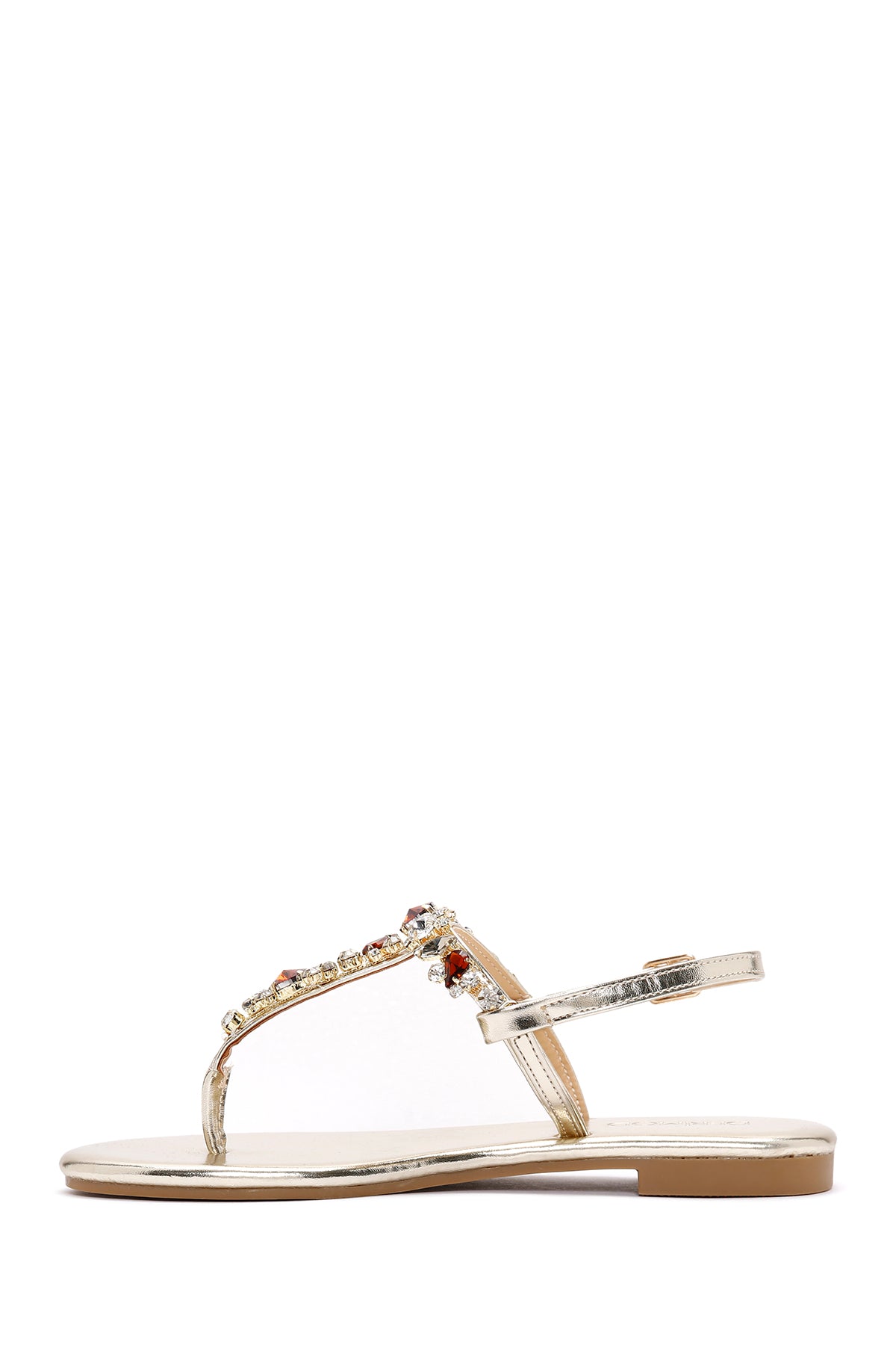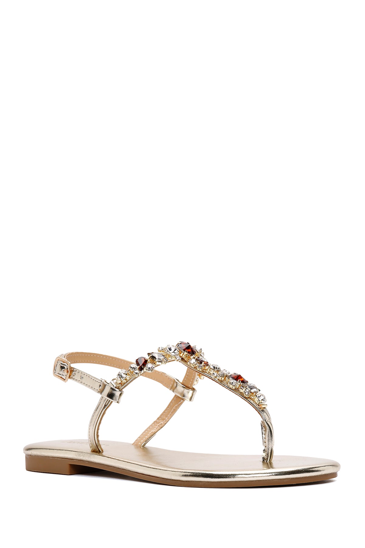 Kadın Altın Bilekten Bantlı Taşlı Sandalet