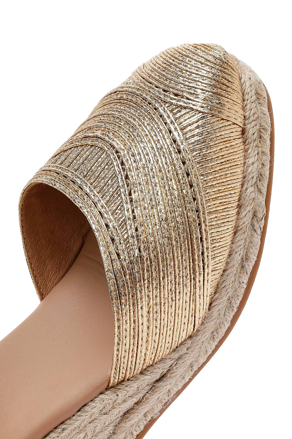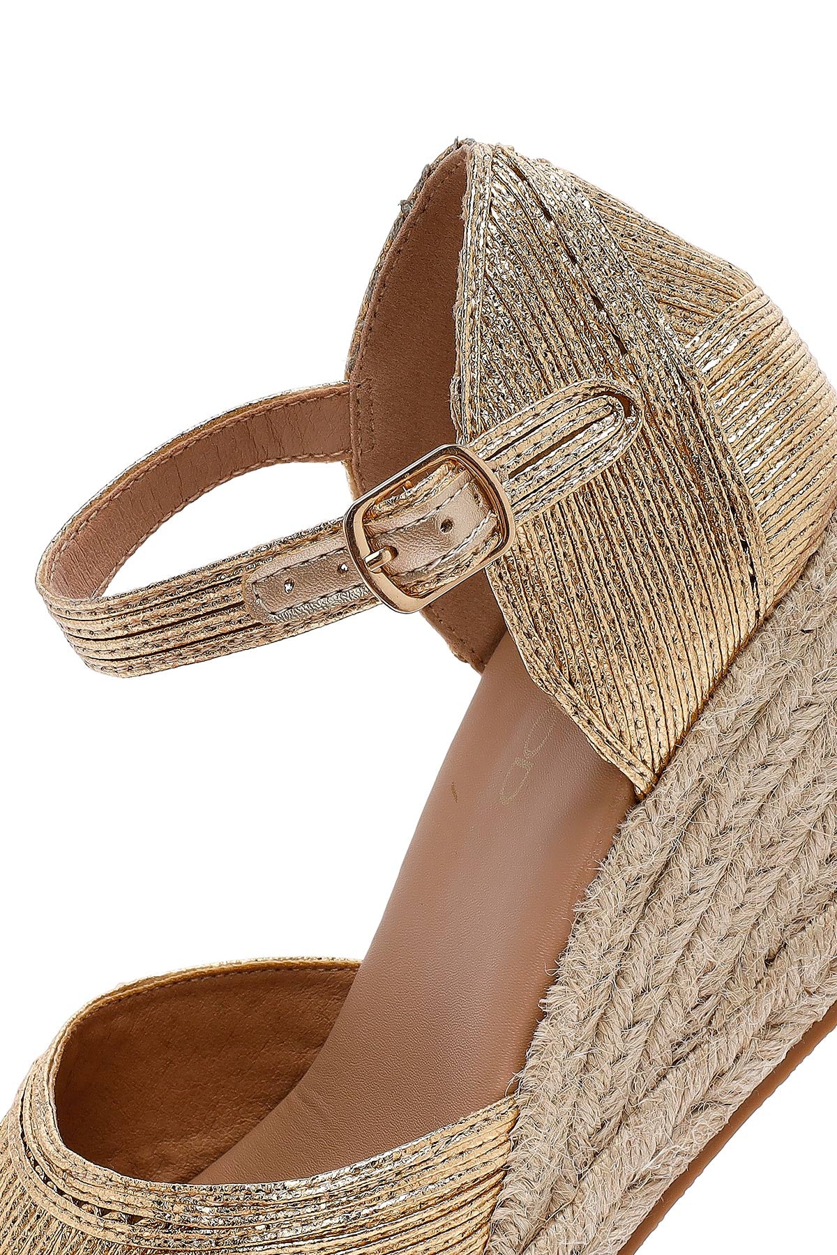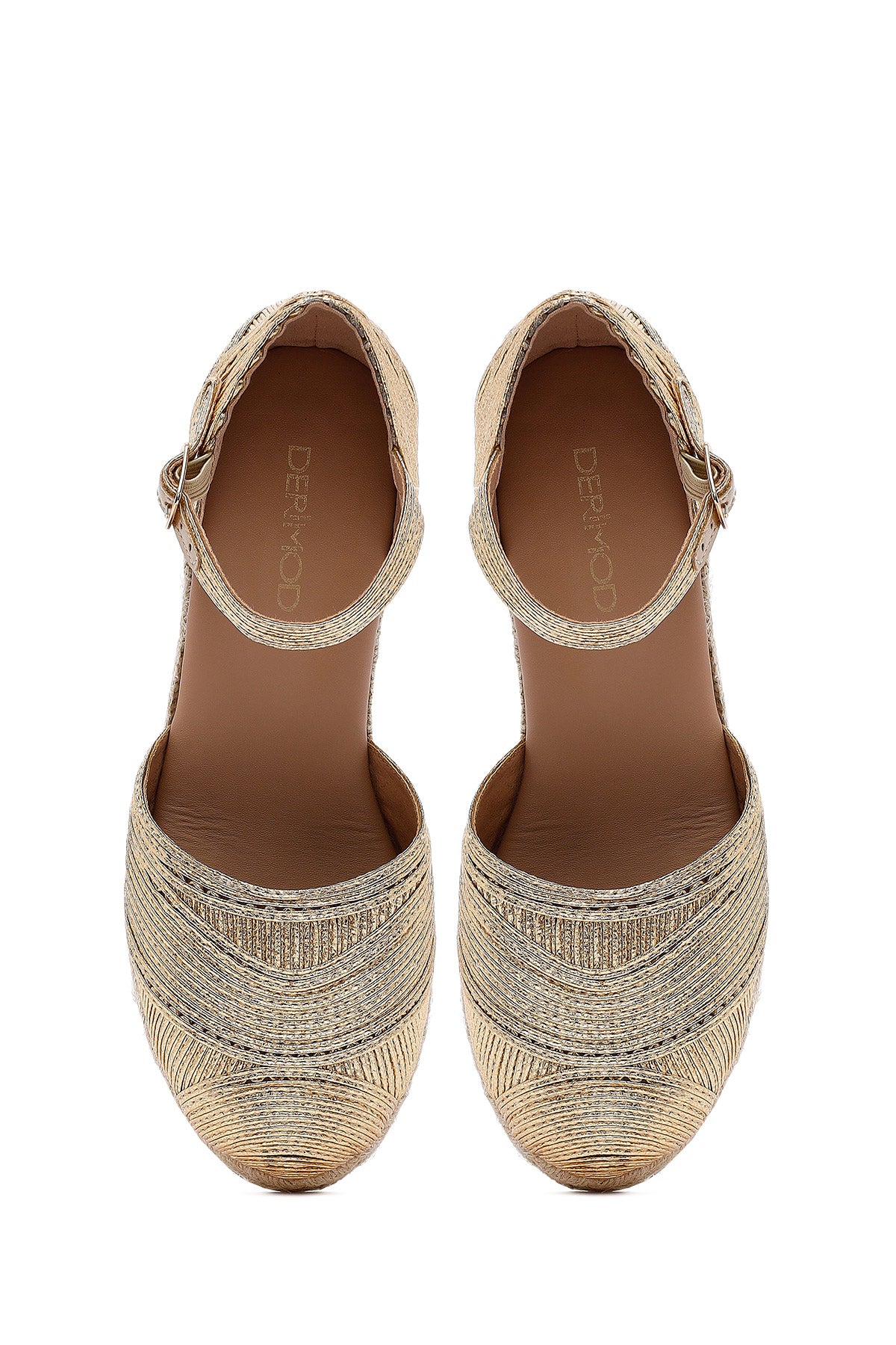 Derimod’un Zarifliği ve Şıklığı bir arada sunan Kadın Altın Bilekten Tokalı Metalik Dolgu Topuklu Espadril ile tarzınızı konuşturun. Ürünün kodu: 25SFE402032 LA