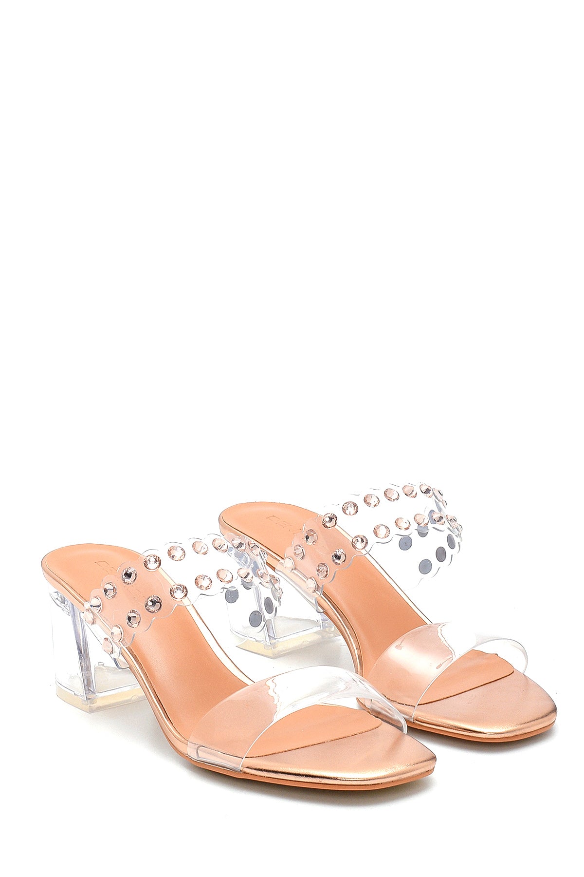 Derimod’un Zarif ve Şıklığı bir arada sunan Kadın Altın Şeffaf Topuklu Taş Detaylı Terlik ile tarzınızı konuşturun. Ürünün kodu: 21SFE4639PV ZD