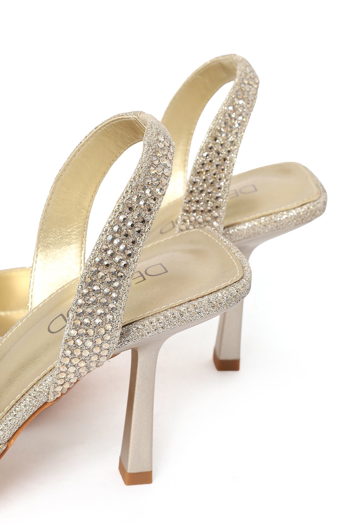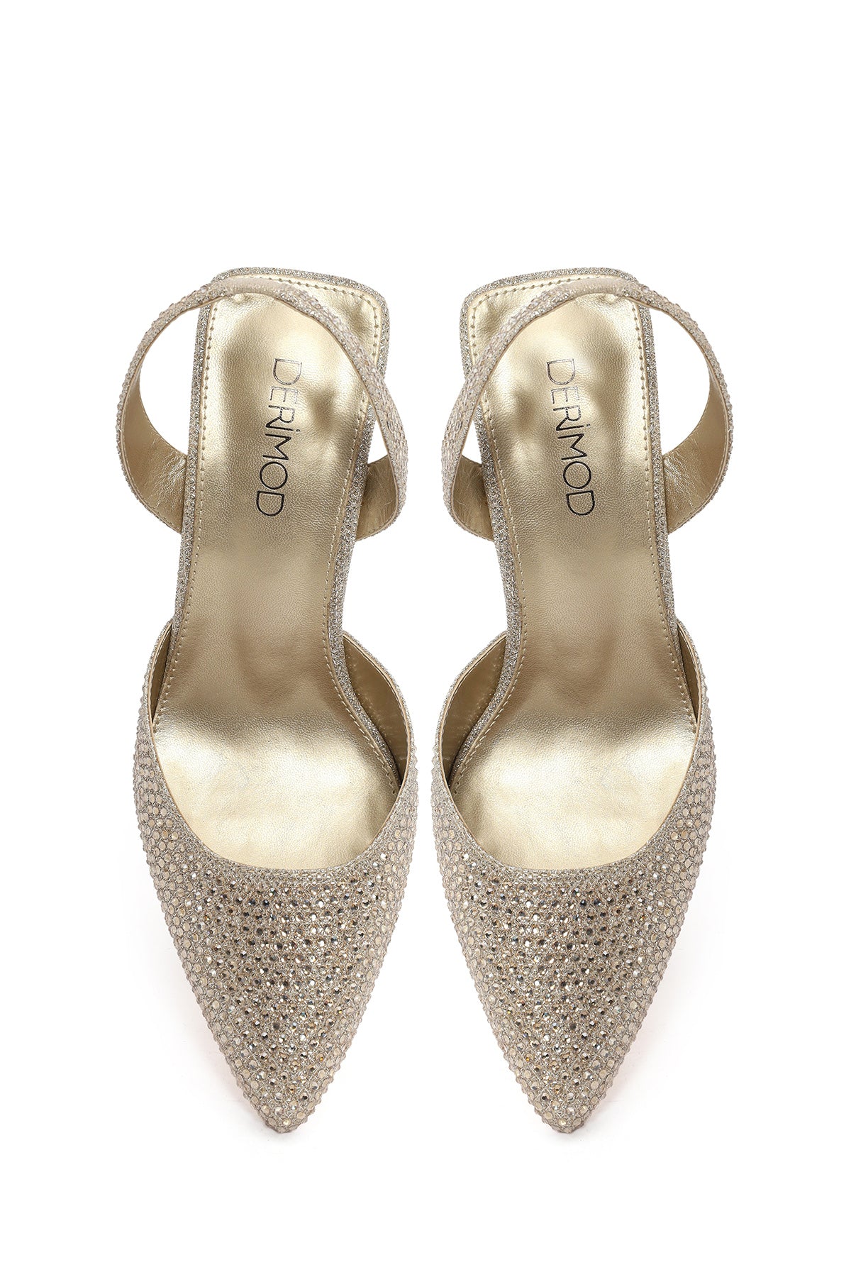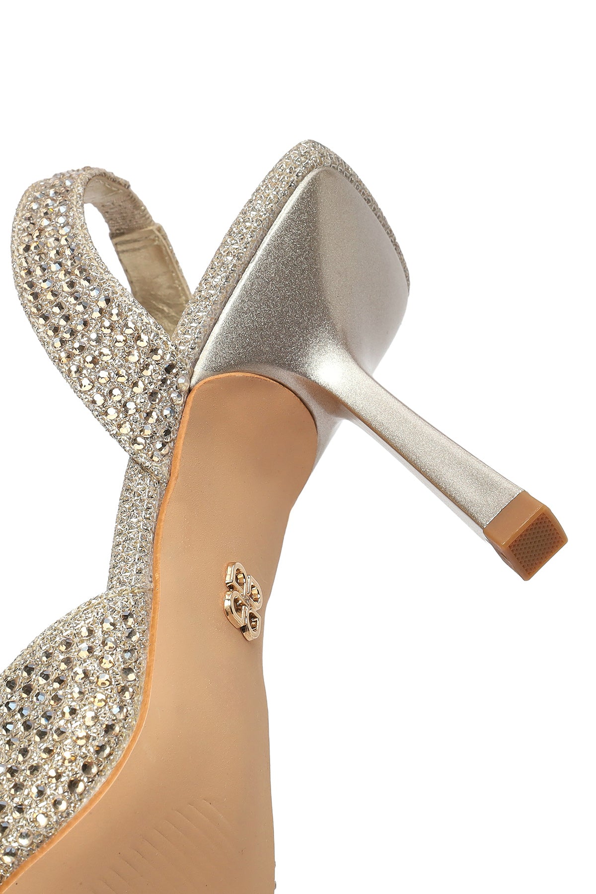Kadın Altın Taşlı Arkası Açık İnce Topuklu Ayakkabı
