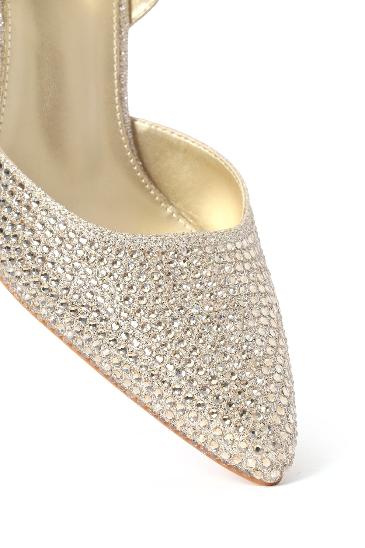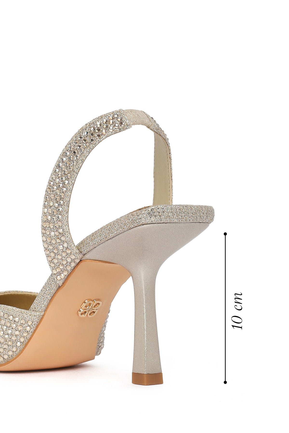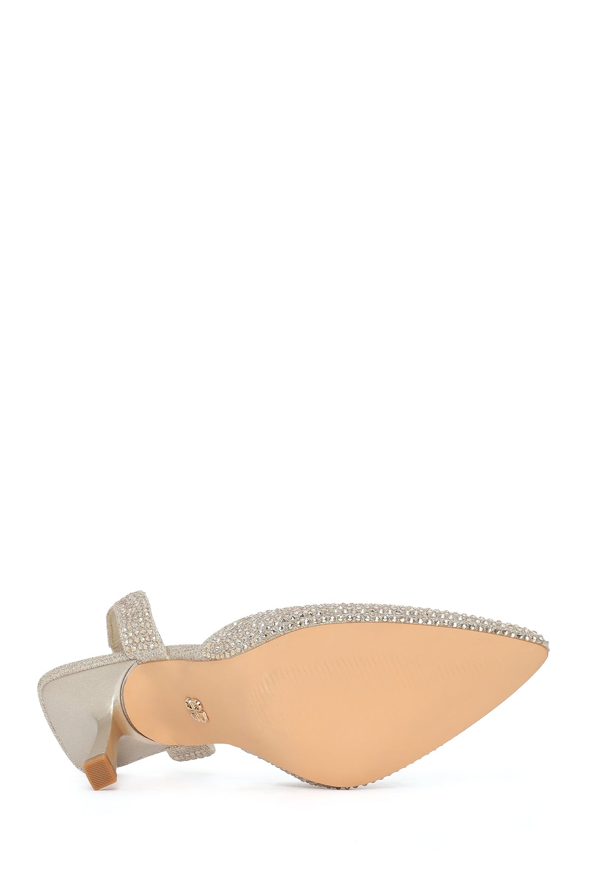 Kadın Altın Taşlı Arkası Açık İnce Topuklu Ayakkabı