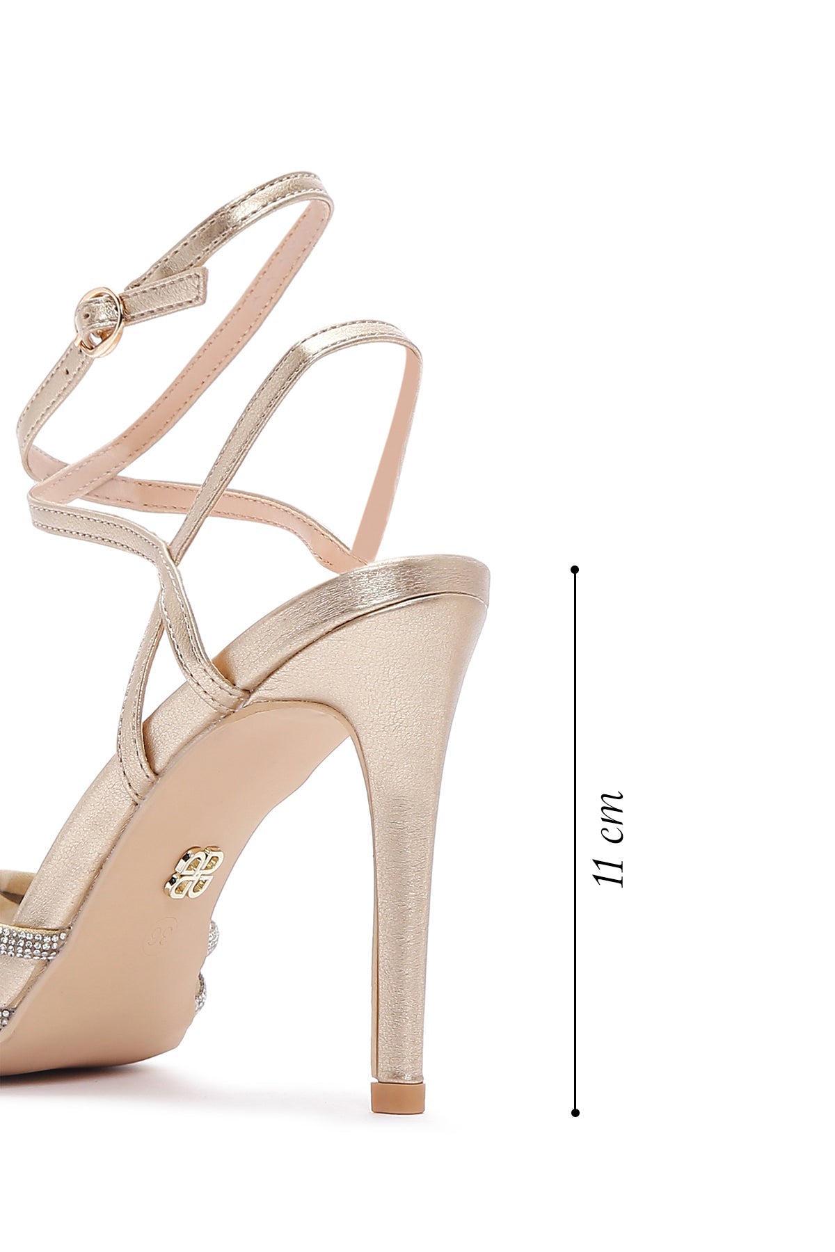 Derimod’un Zarif ve Şıklığı bir arada sunan Kadın Altın Taşlı İnce Topuklu Sandalet ile tarzınızı konuşturun. Ürünün kodu: 23SFE471214 LA