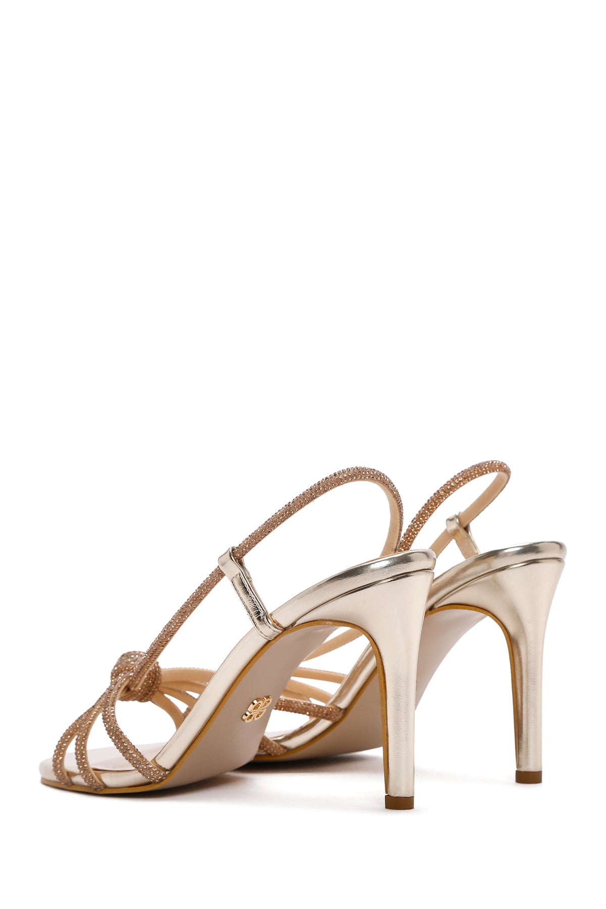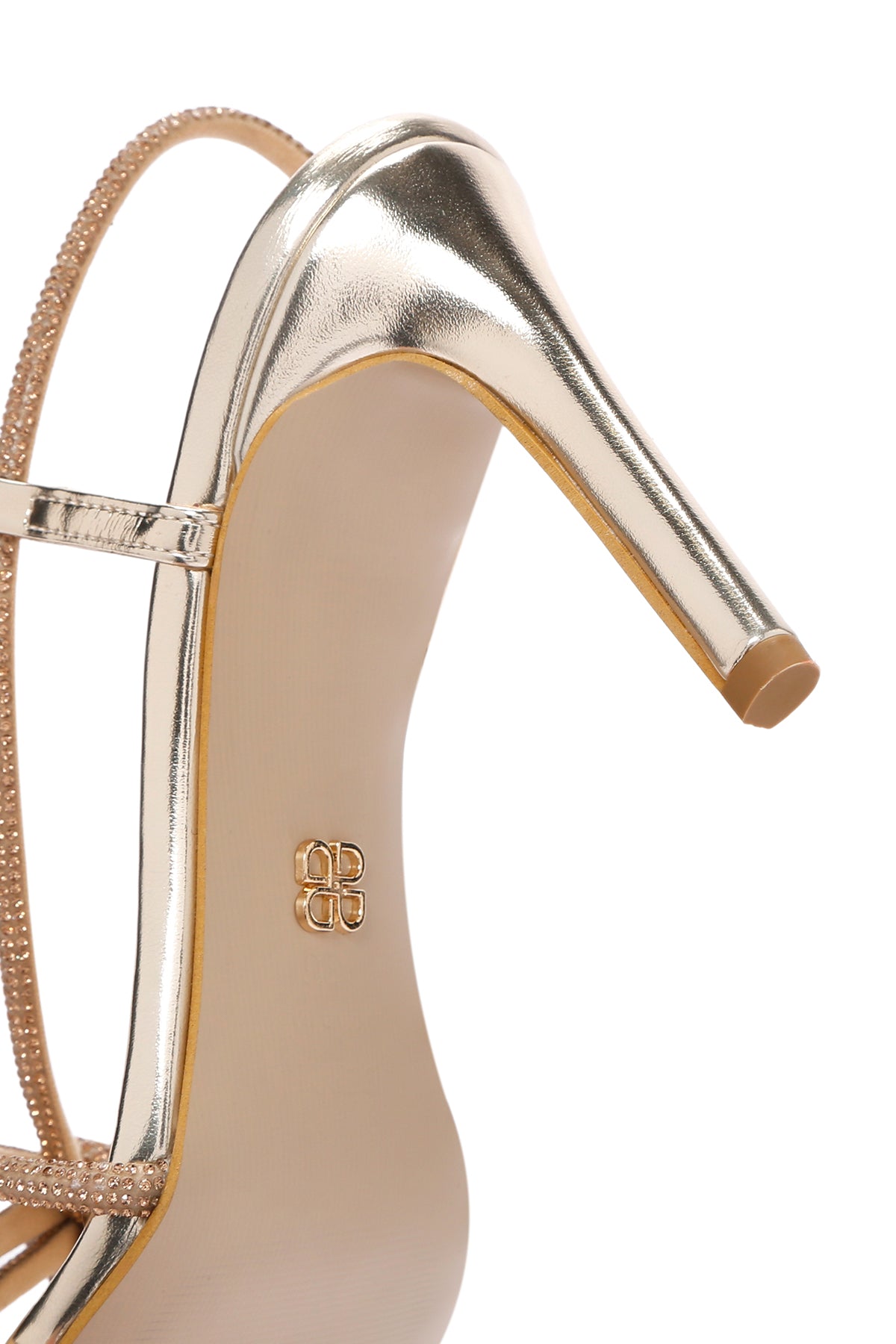 Derimod’un Zarif ve Şıklığı bir arada sunan Kadın Altın Taşlı İnce Topuklu Sandalet ile tarzınızı konuşturun. Ürünün kodu: 24SFE3913TS LA