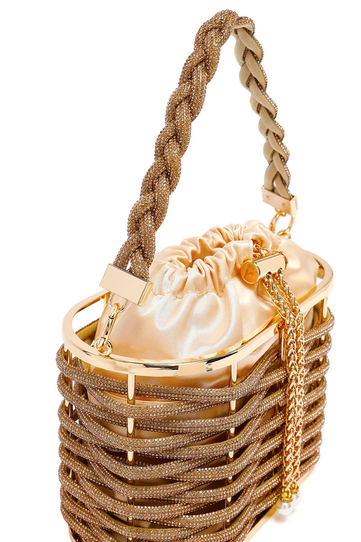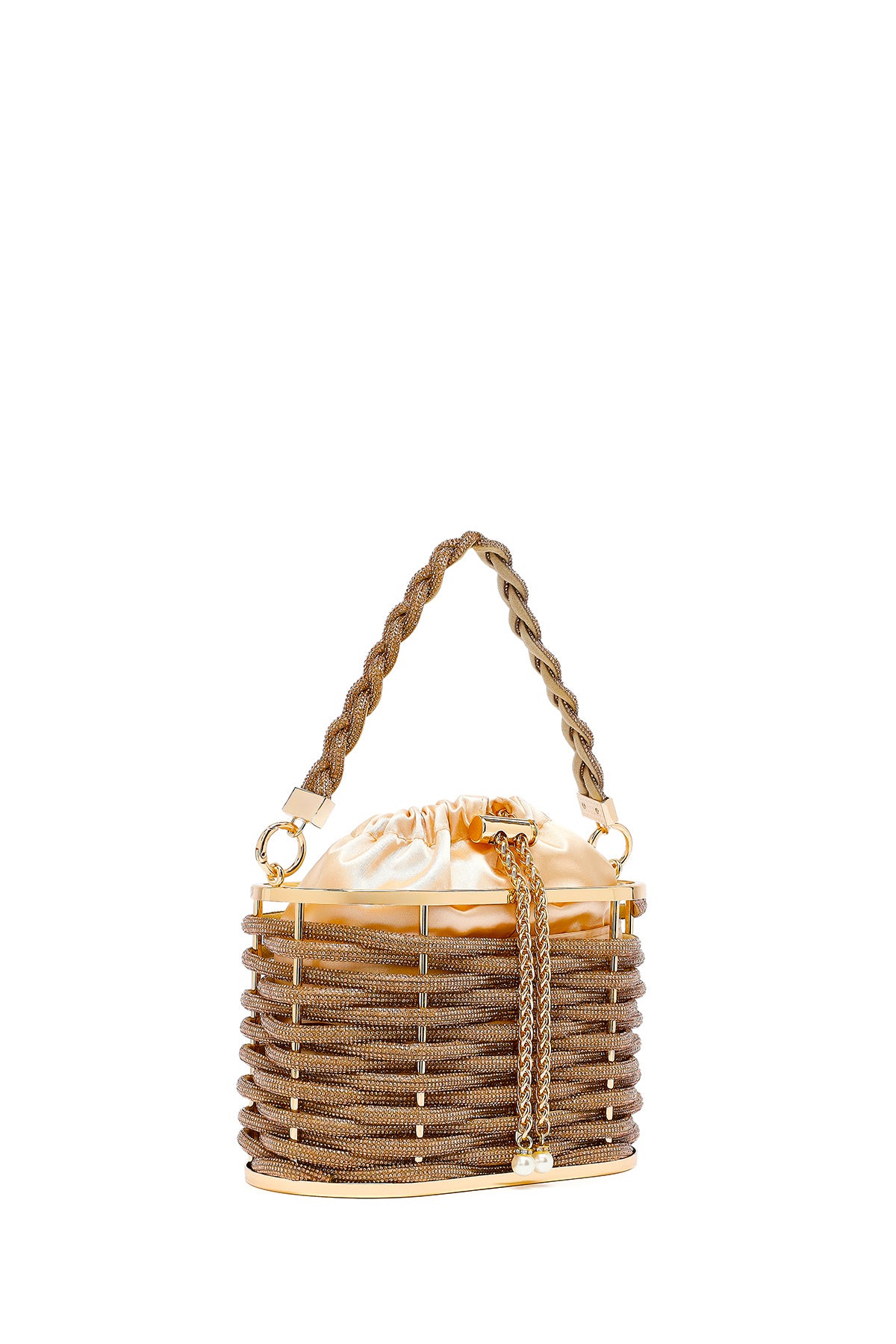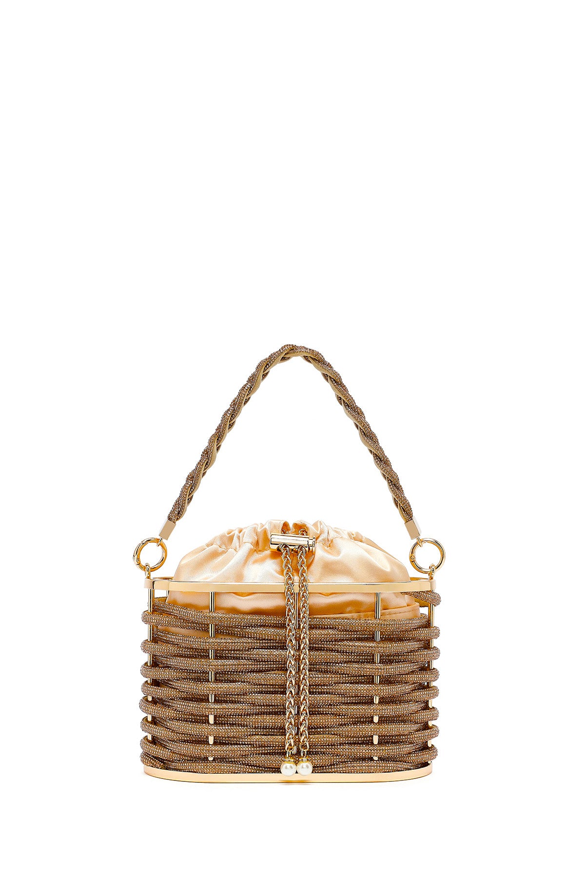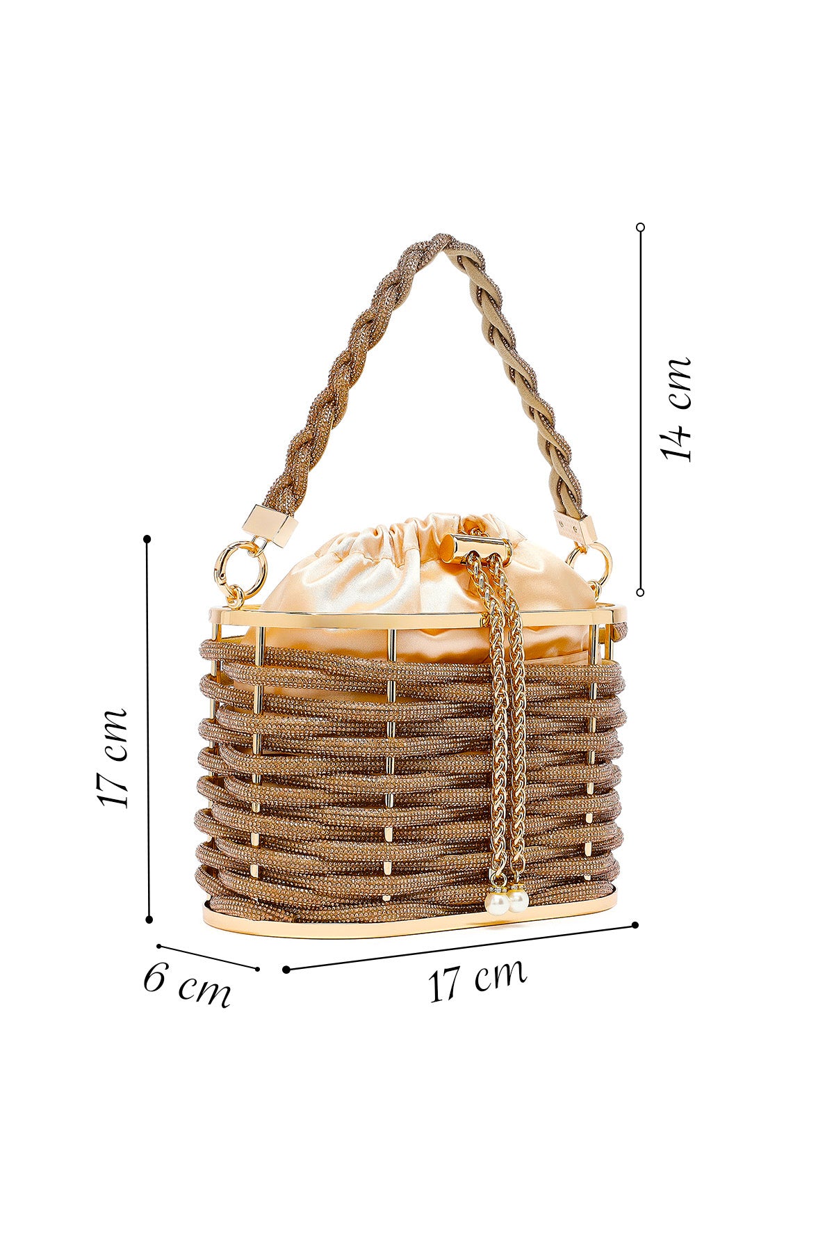 Kadın Altın Taşlı Kutu Abiye Çantası