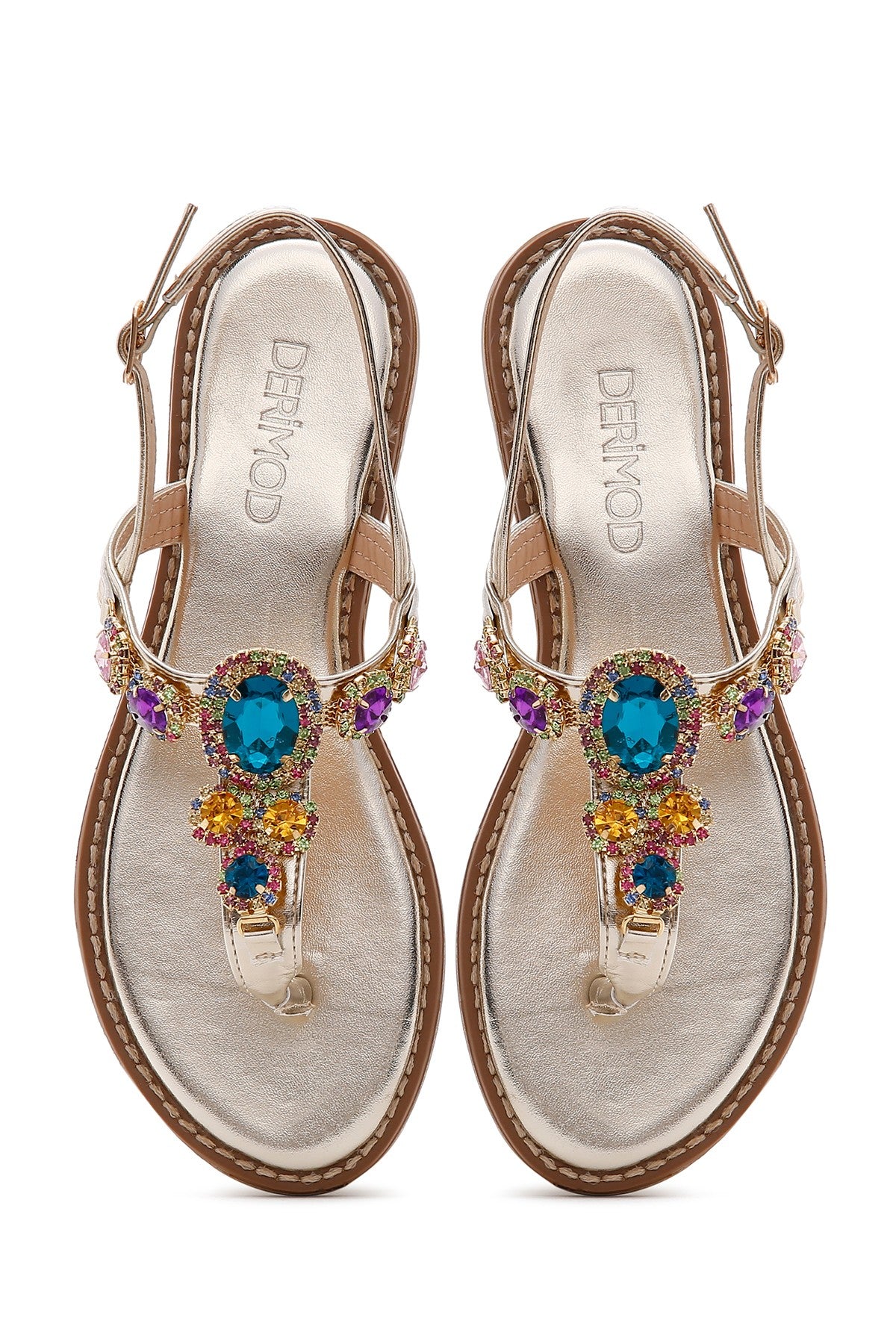 Derimod’un Zarif ve Şıklığı bir arada sunan Kadın Altın Taşlı Parmak Arası Sandalet ile tarzınızı konuşturun. Ürünün kodu: 23SFE493614 H6