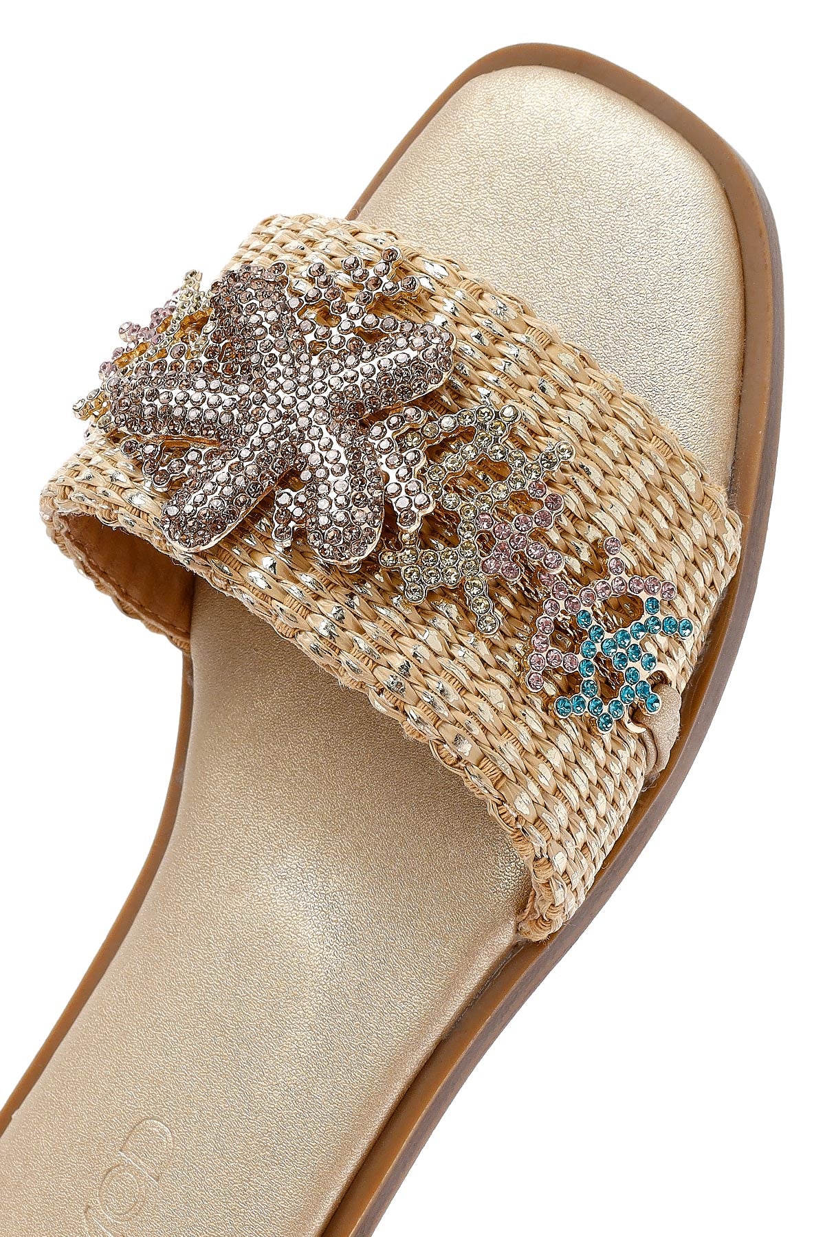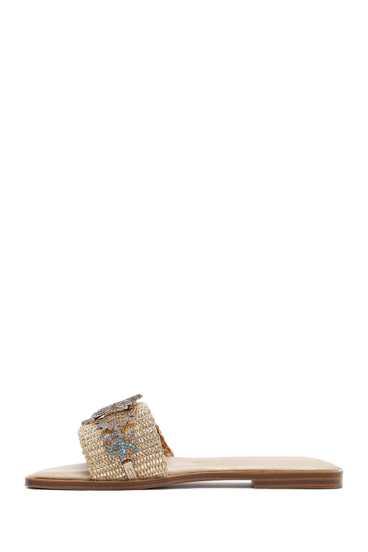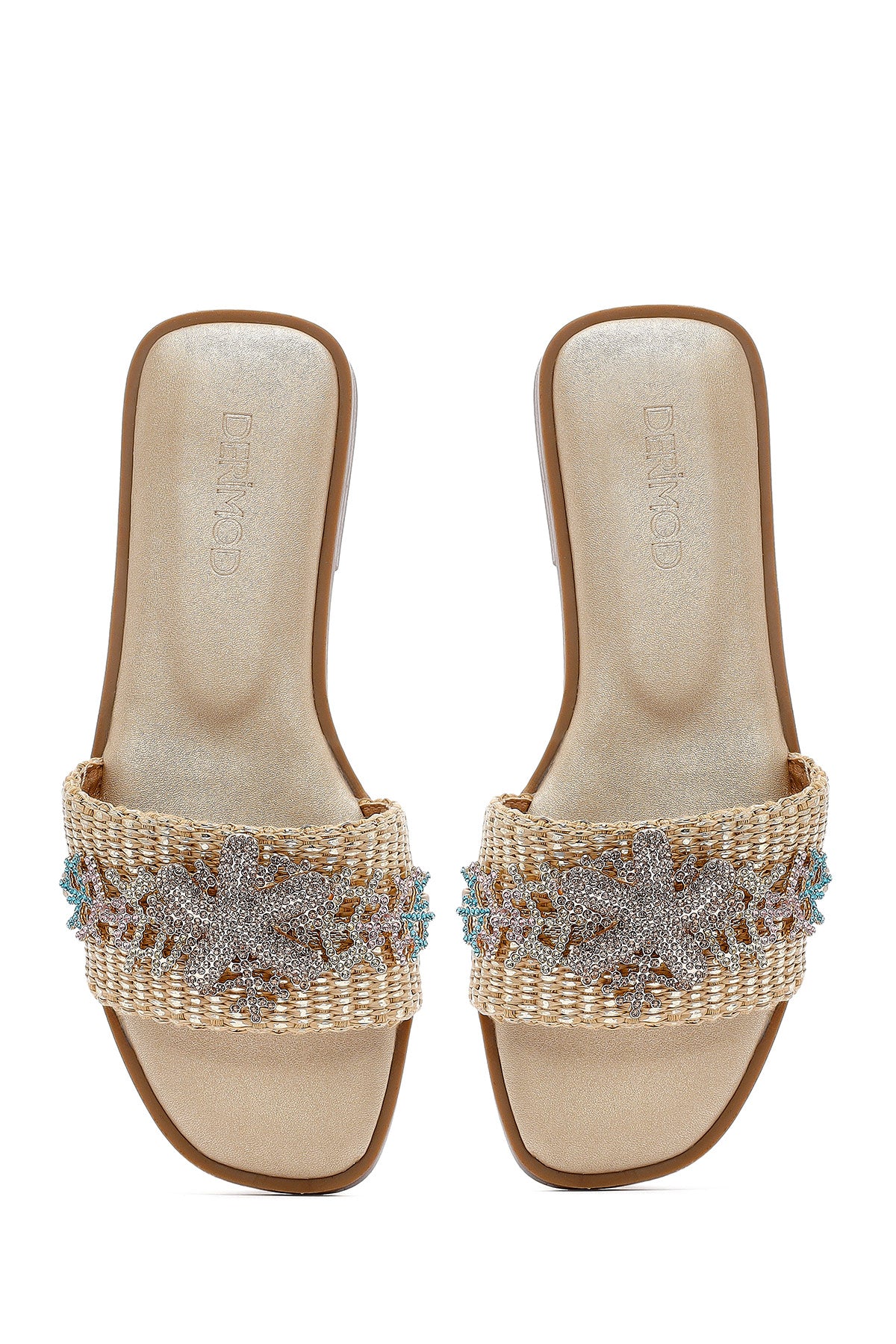 Derimod’un Zarifliği ve Şıklığı bir arada sunan Kadın Altın Taşlı Terlik ile tarzınızı konuşturun. Ürünün kodu: 25SFE450914 H6