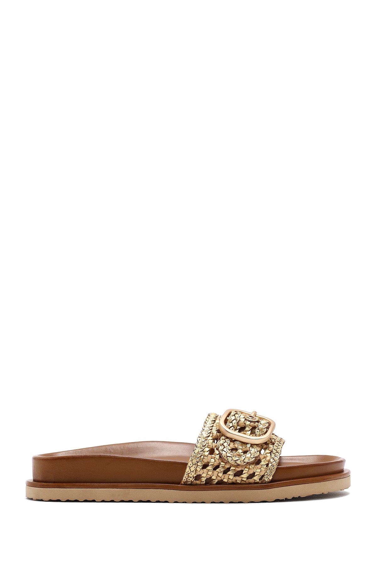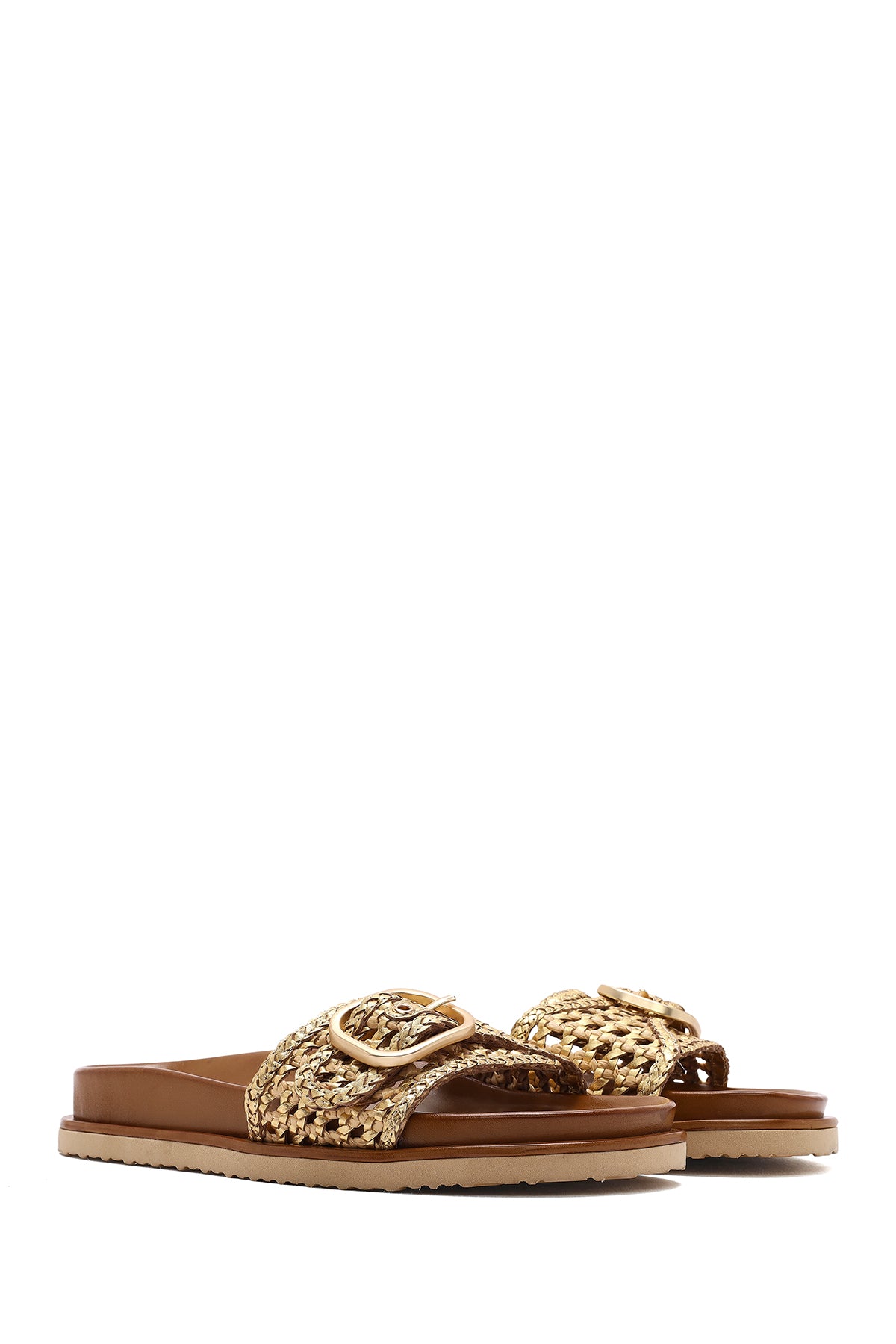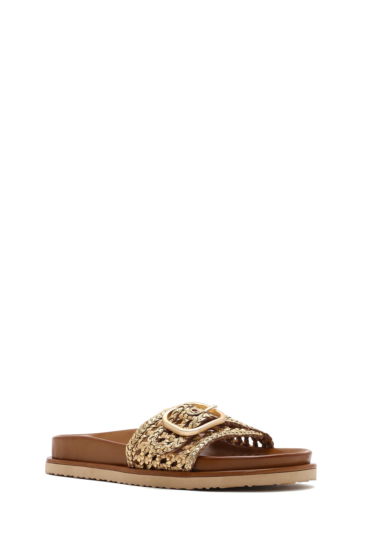 Derimod’un Zarifliği ve Şıklığı bir arada sunan Kadın Altın Tokalı Hasır Deri Terlik ile tarzınızı konuşturun. Ürünün kodu: 25SFD5505M7 H6
