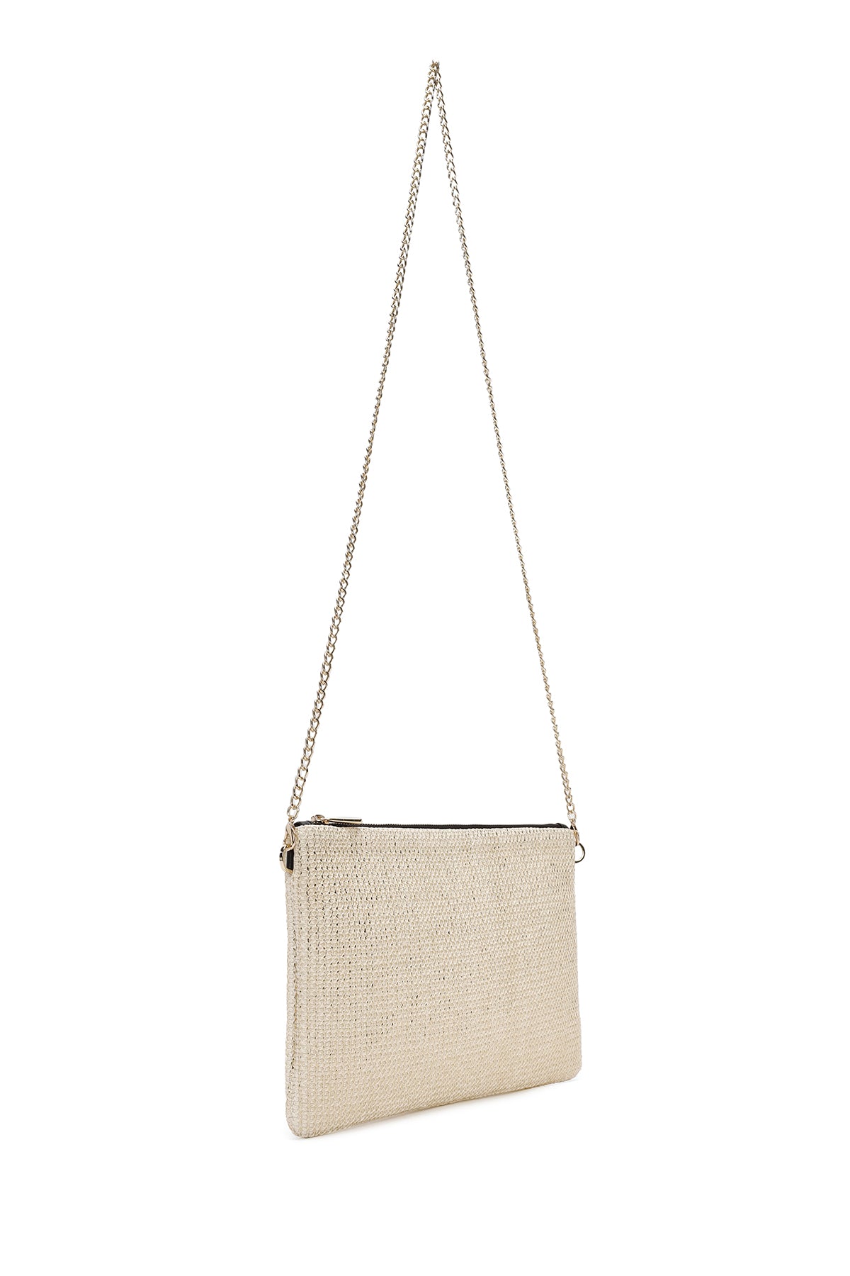 Kadın Altın Uzun Zincir Askılı Hasır Portföy Çanta