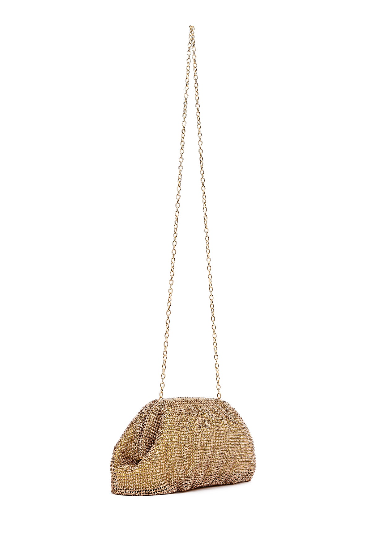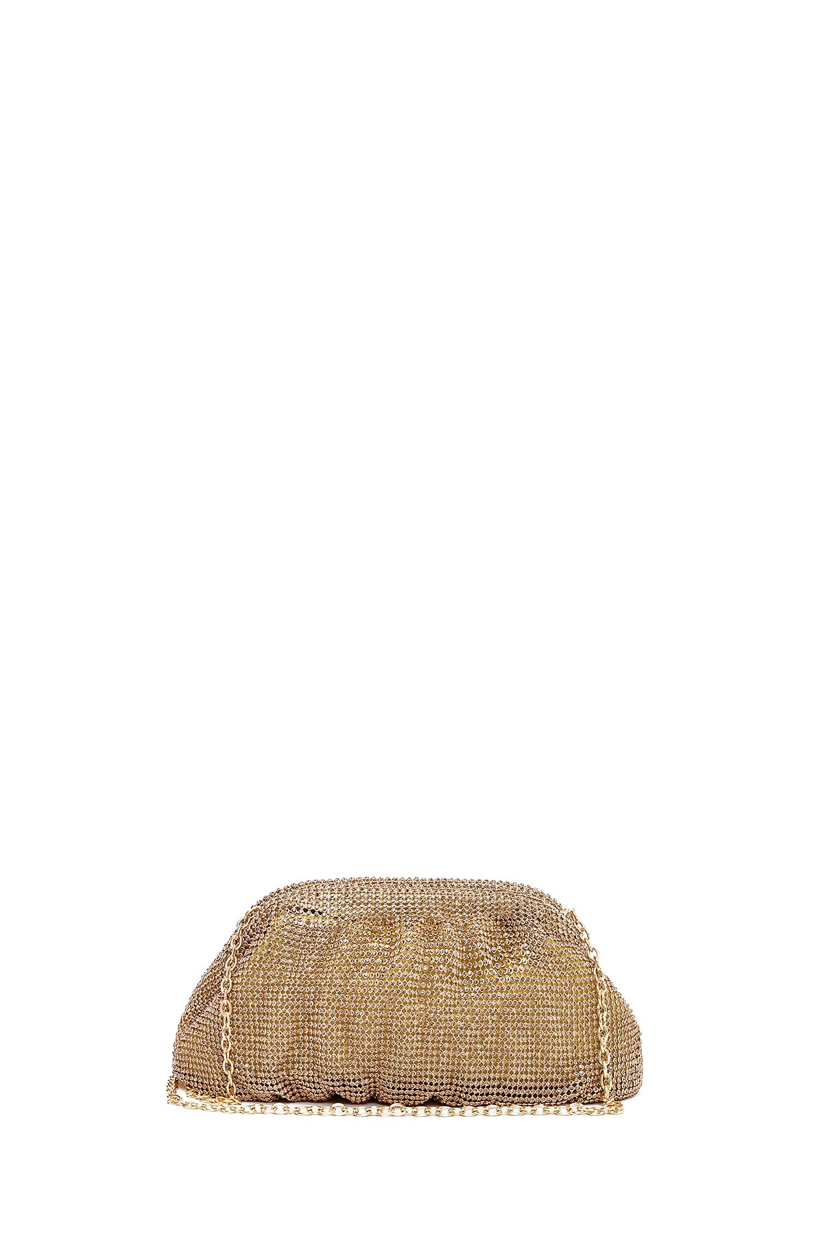 Kadın Altın Uzun Zincir Askılı Taşlı Abiye Portföy Çanta