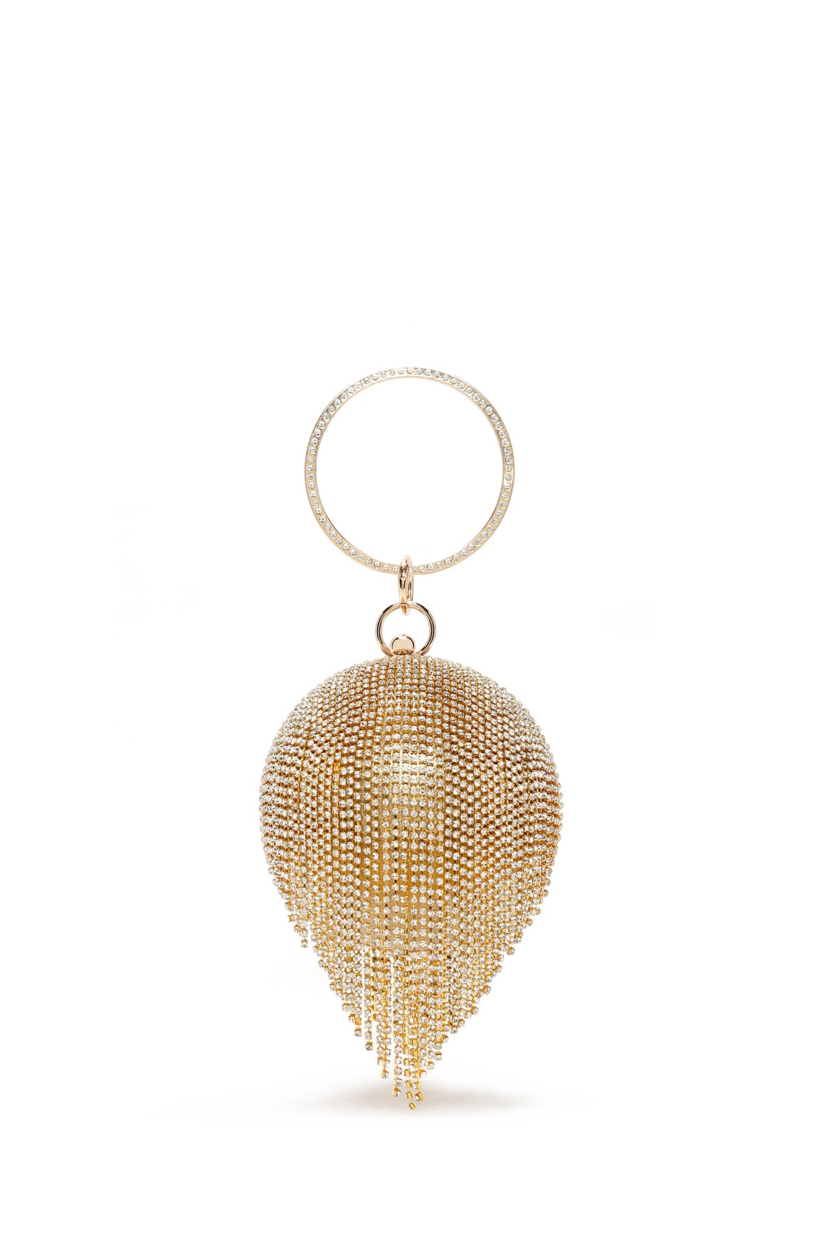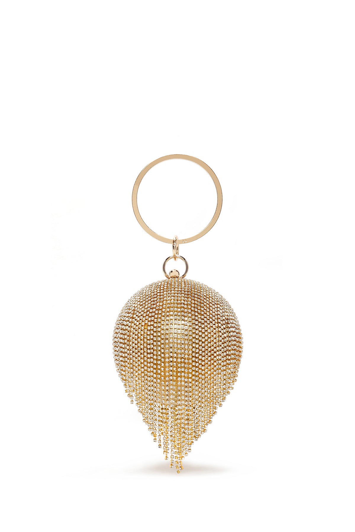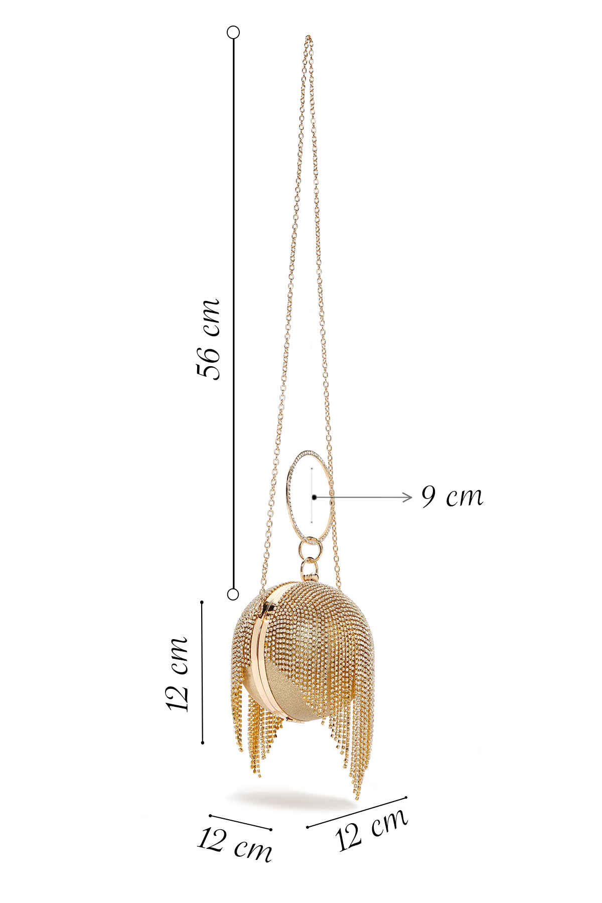 Kadın Altın Uzun Zincir Askılı Taşlı Çapraz Çanta