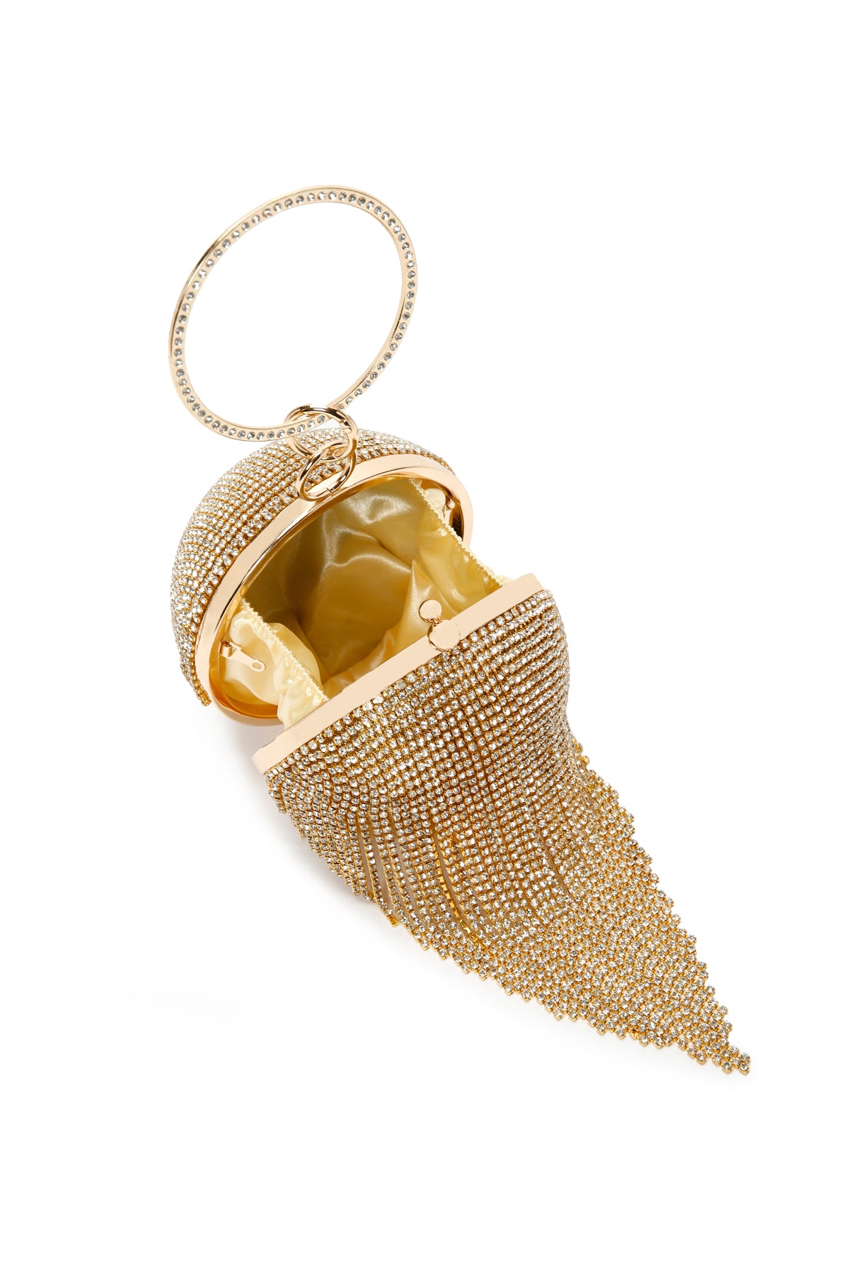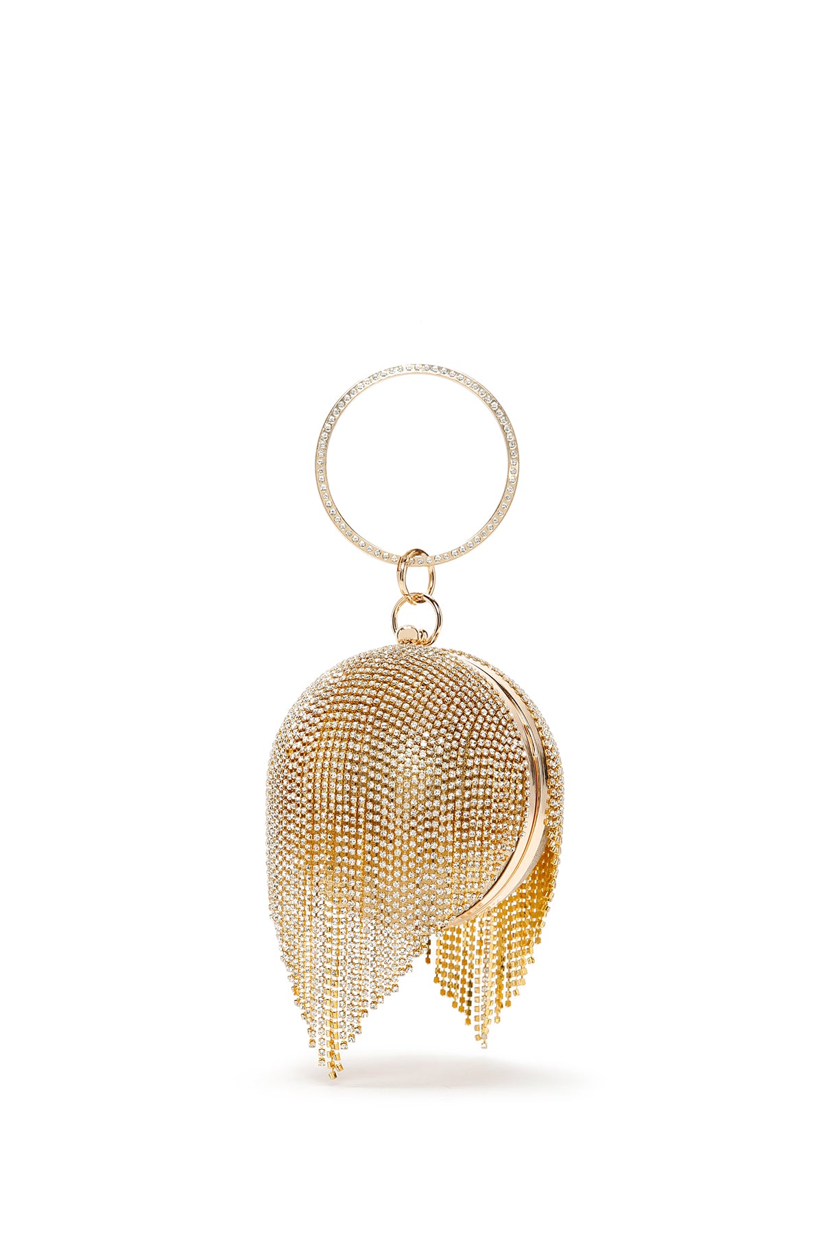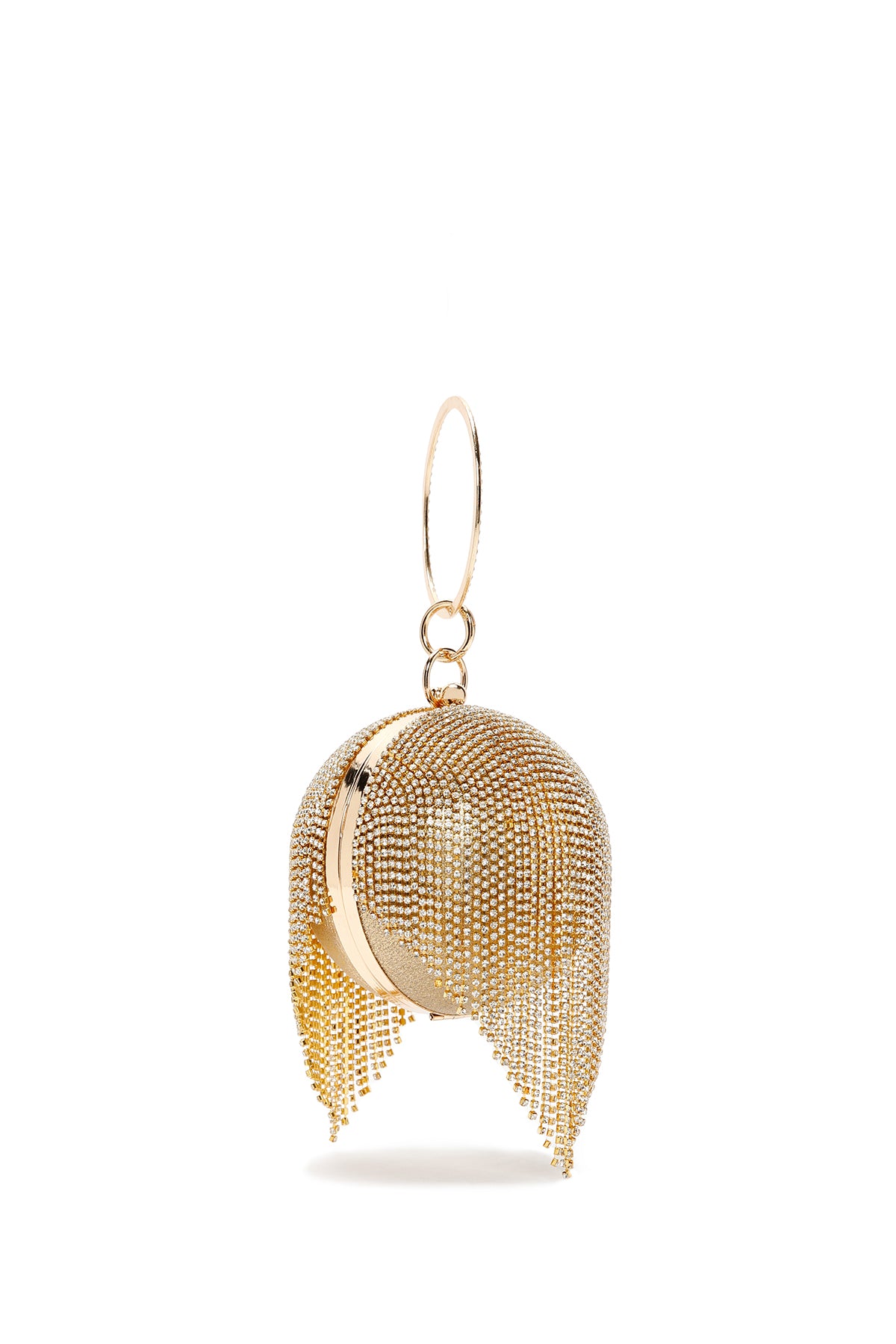 Kadın Altın Uzun Zincir Askılı Taşlı Çapraz Çanta